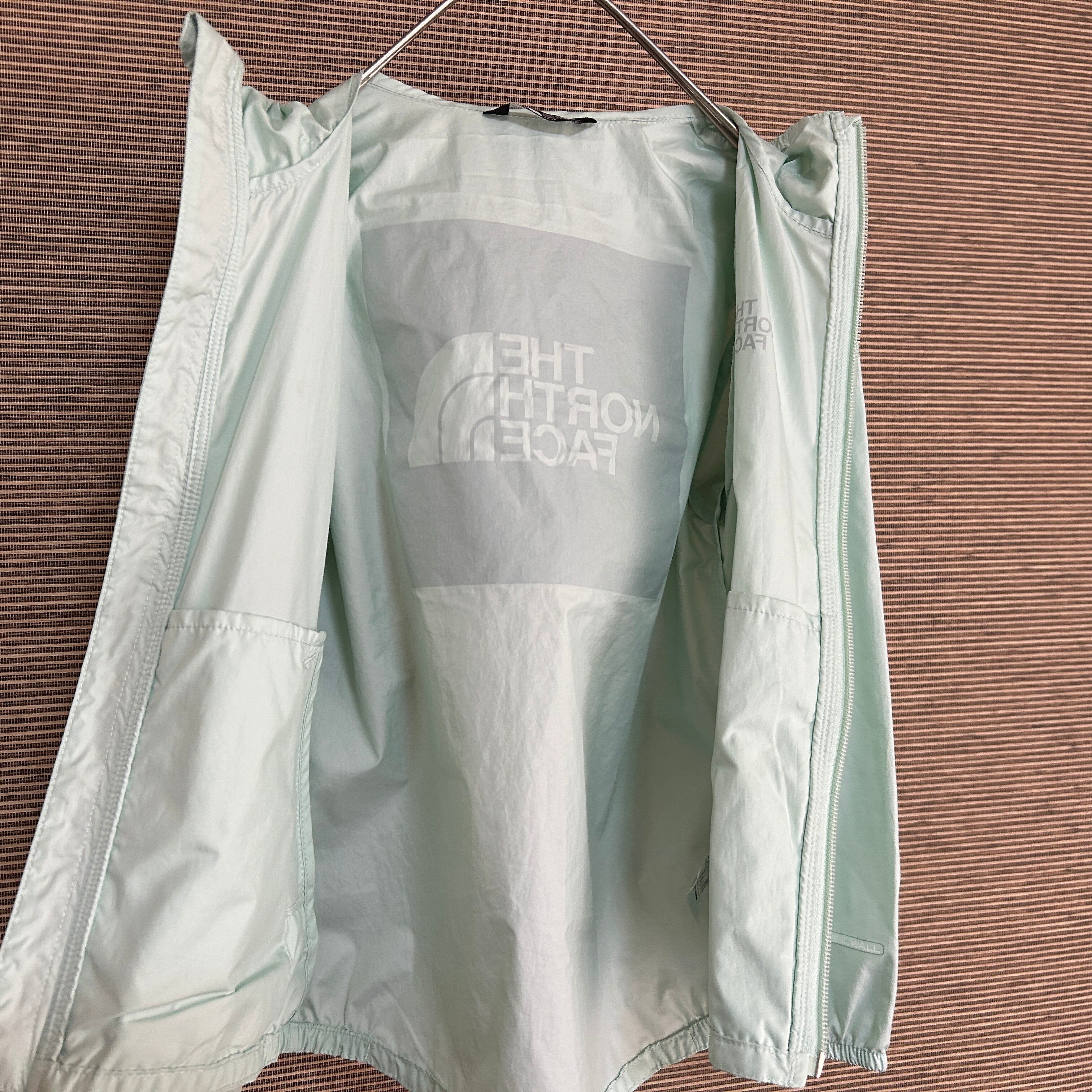 ノースフェイス US規格 ナイロンジャケットパーカー子供120 ミントグリーンC1 古着 キッズ windwall デカロゴ