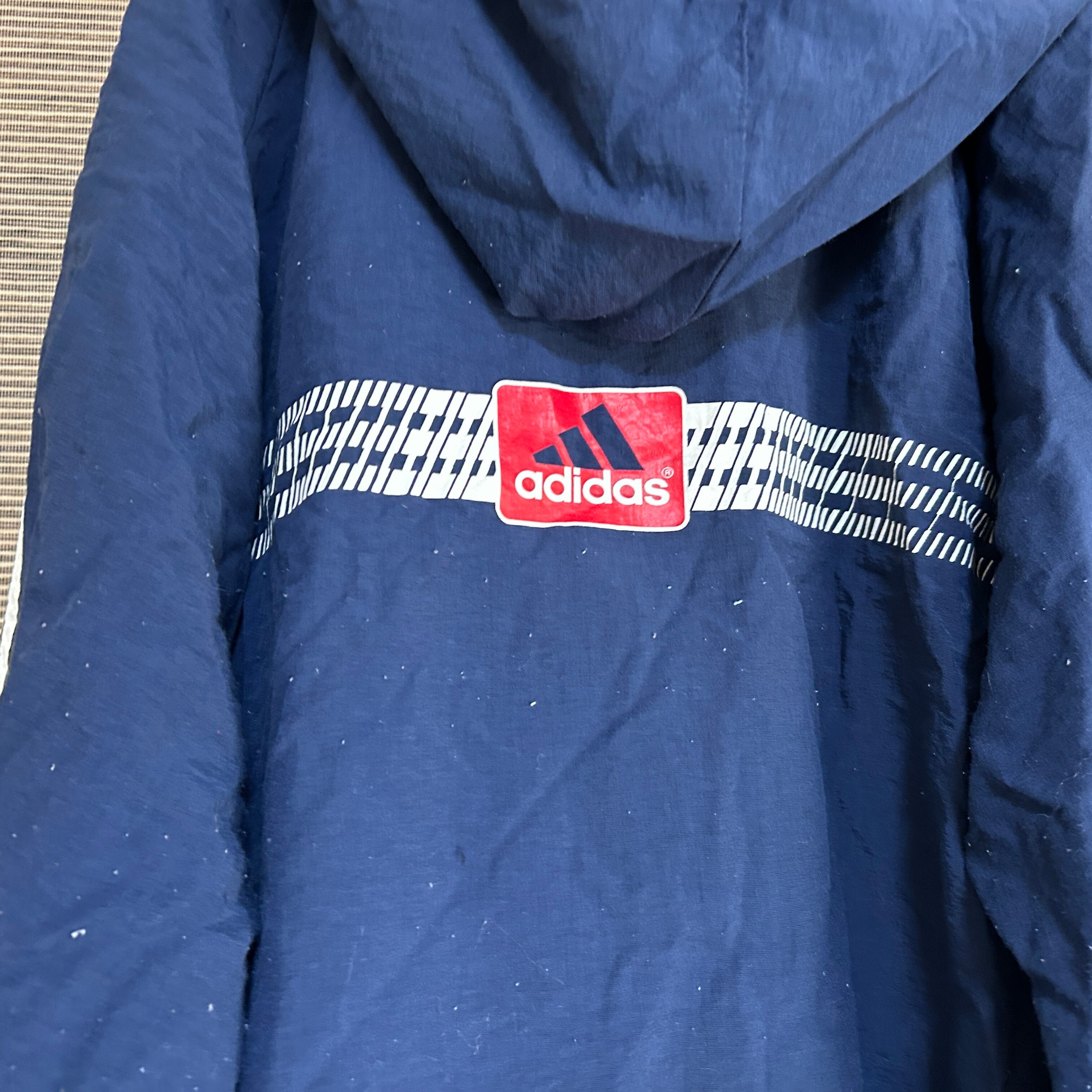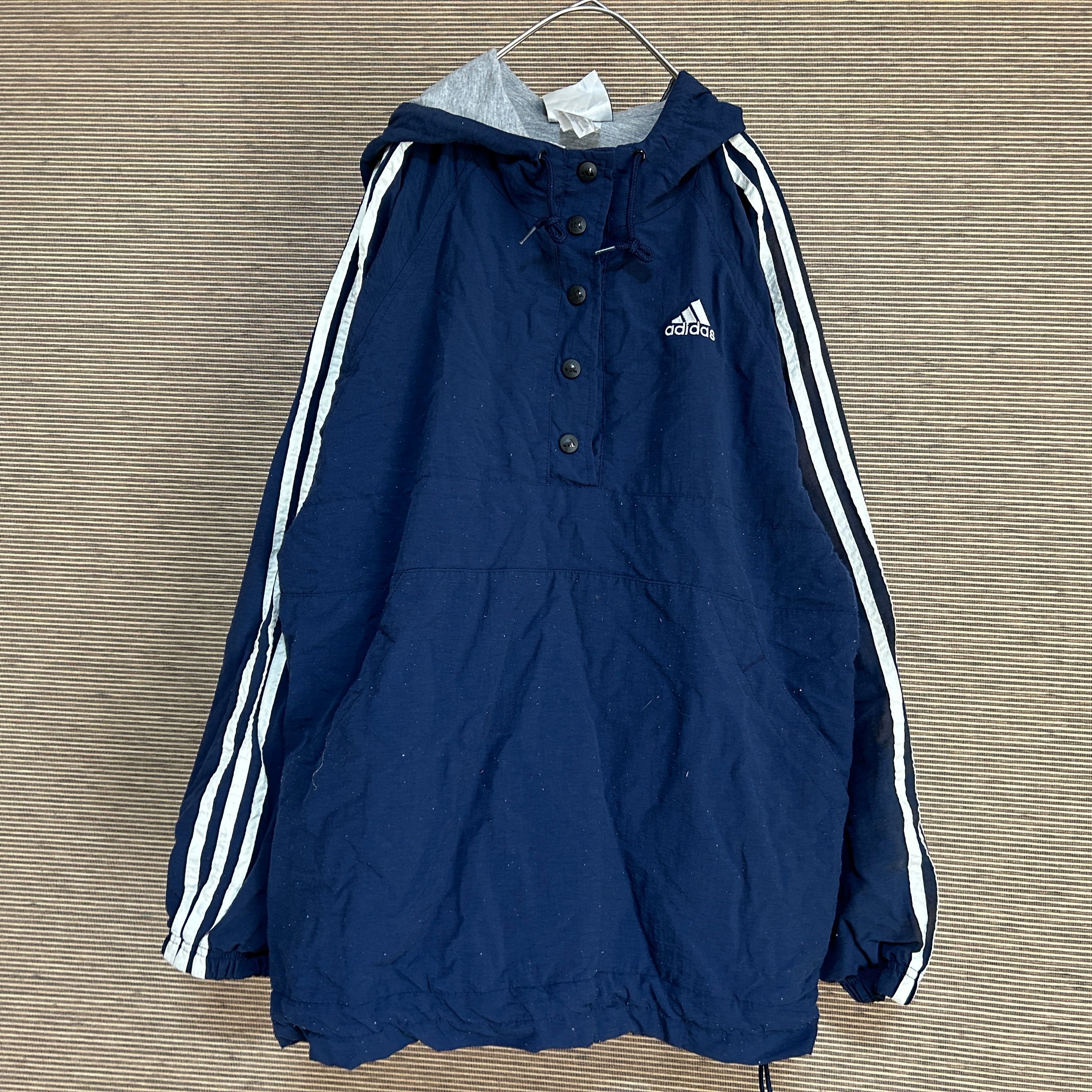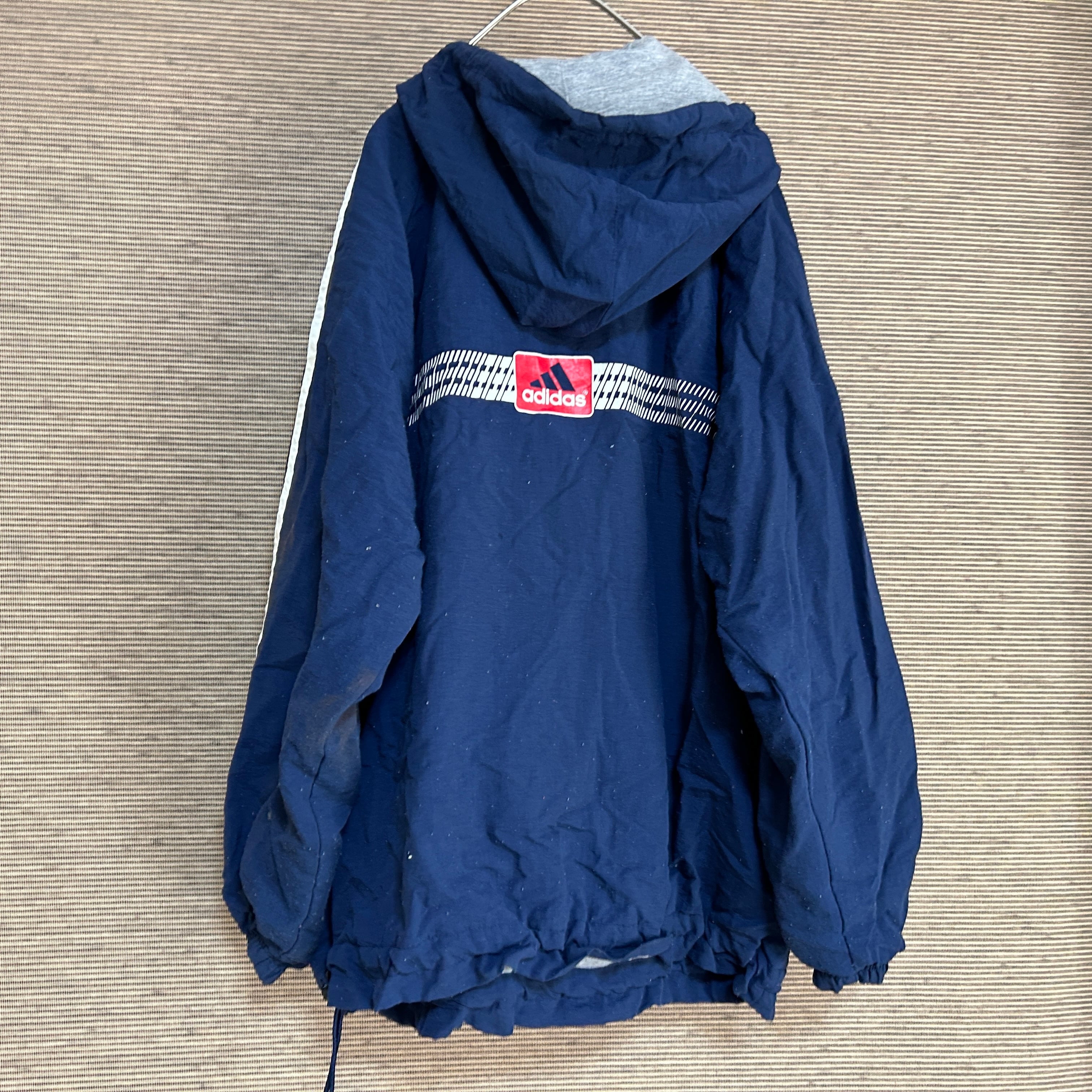 アディダス ナイロンパーカー アノラック ネイビー パフォーマンス 刺繍97 古着 ビンテージ 90年代 三本線