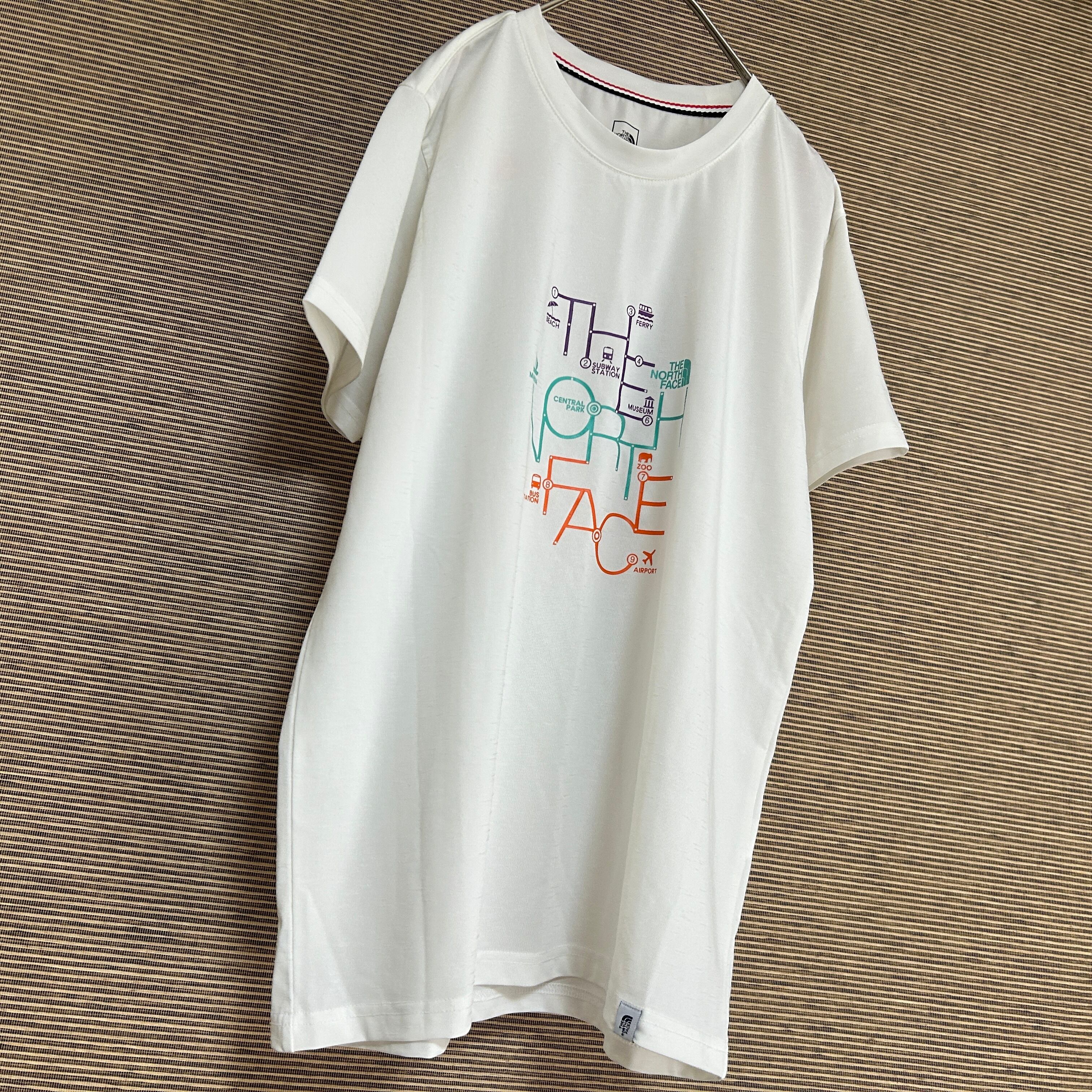ノースフェイス 半袖ドライTシャツ 速乾 白 ワンポイント 路線図F1 古着 ワンポイントロゴ ストレッチ デカロゴ ビッグロゴ