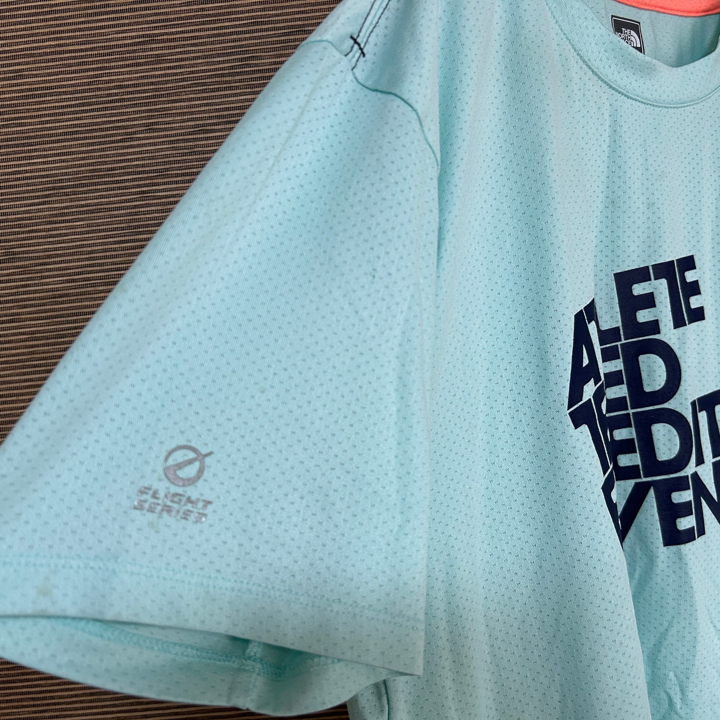 ノースフェイス 半袖ドライTシャツ ミントグリーン 速乾 フライトシリーズF1 古着 デカロゴ スポーツ