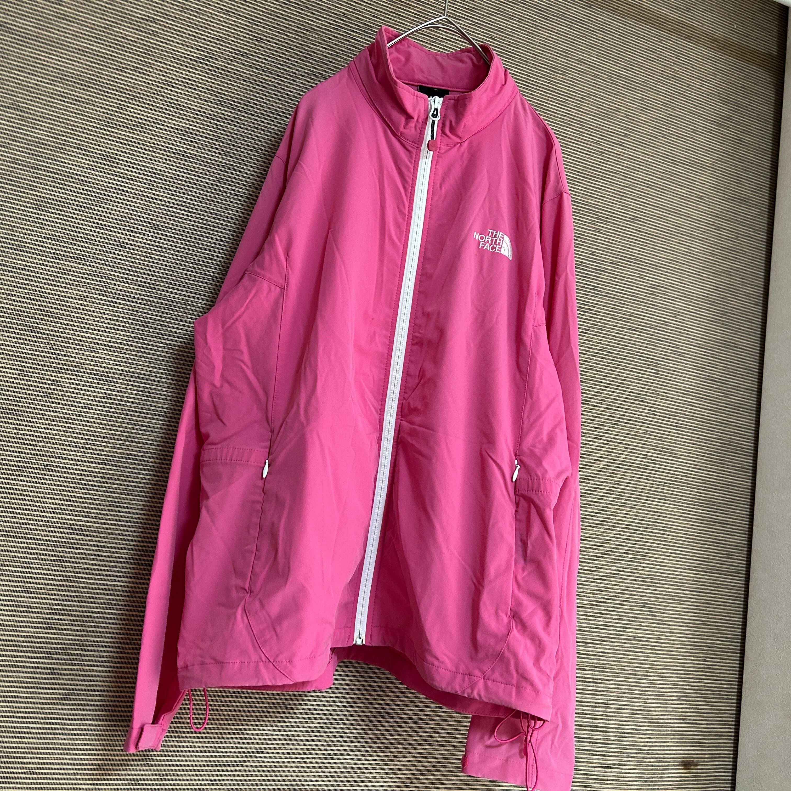 ノースフェイス ナイロンジャケット ピンク 刺繍 ワンポイント ストレッチF1 古着 レディース