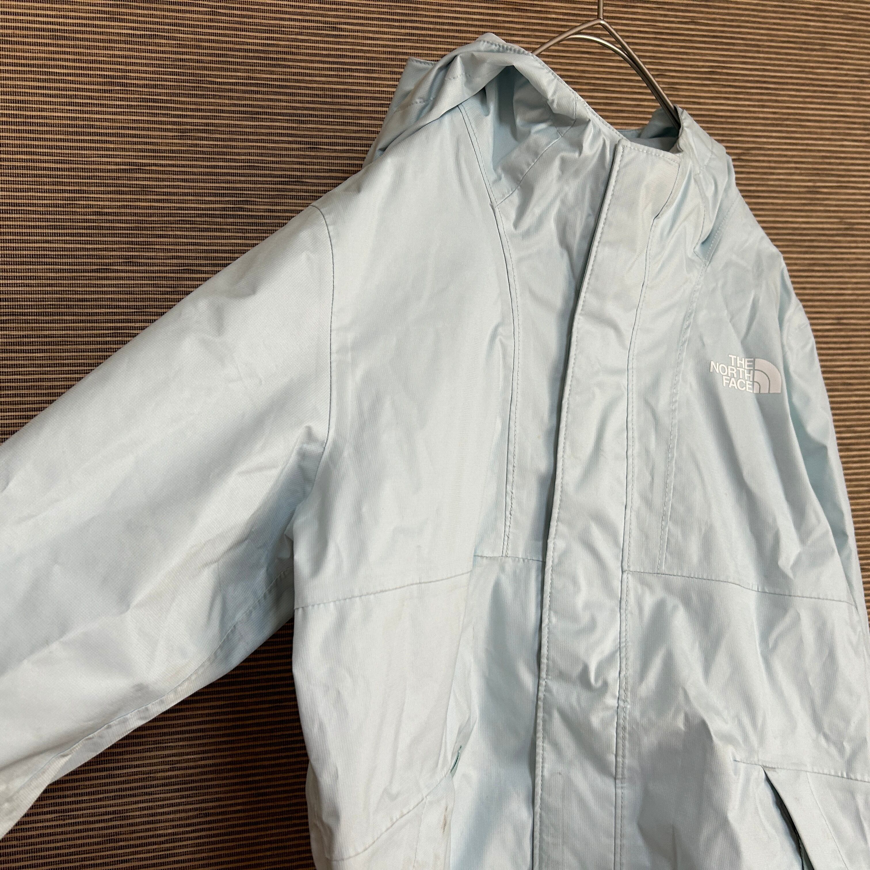 ノースフェイス US規格マウンテンパーカー キッズ 水色 ワンポイント F1 古着 子供150