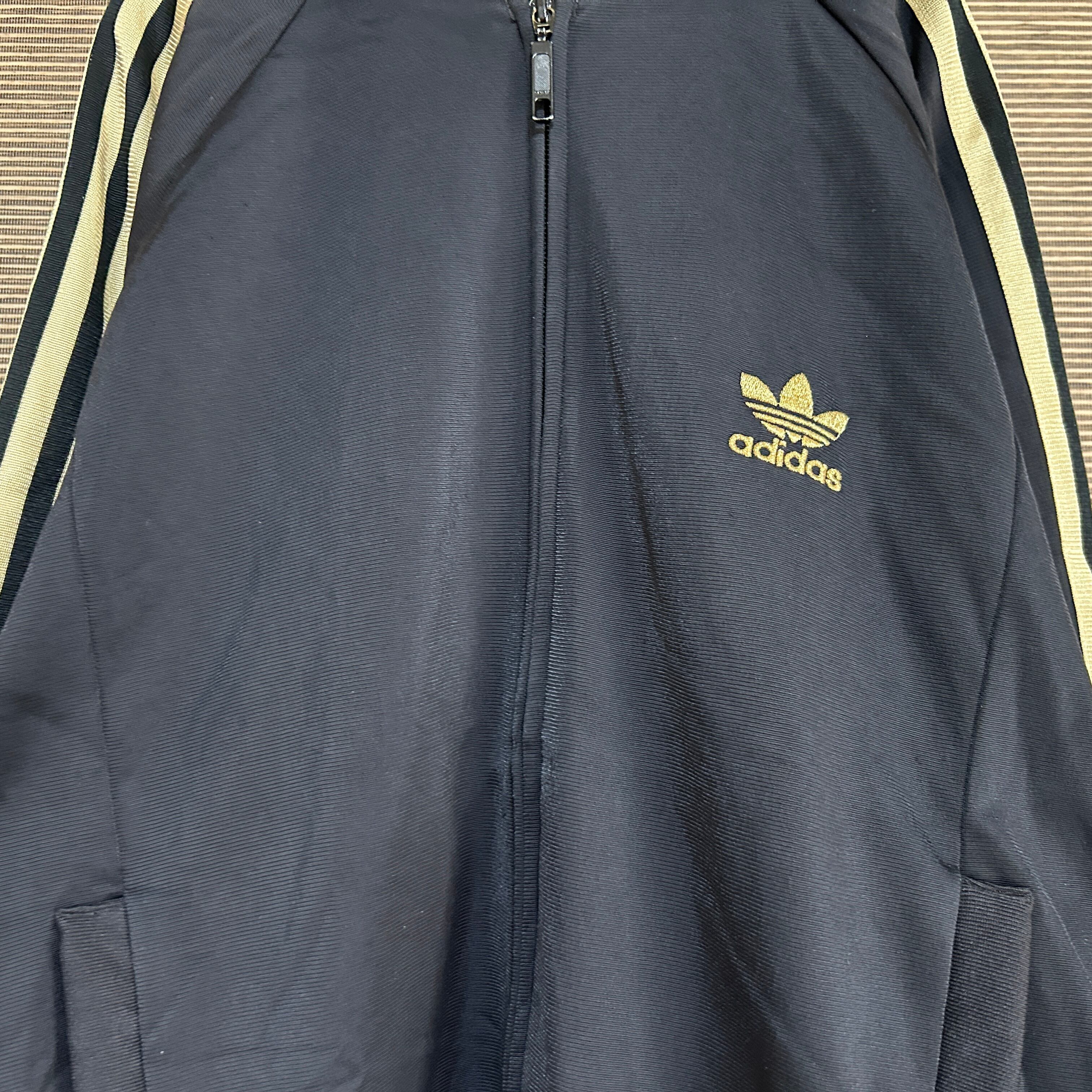 アディダス ジャージトラックジャケット SST 黒金色 刺繍 トレフォイル F2 古着 ゴールド スーパースター