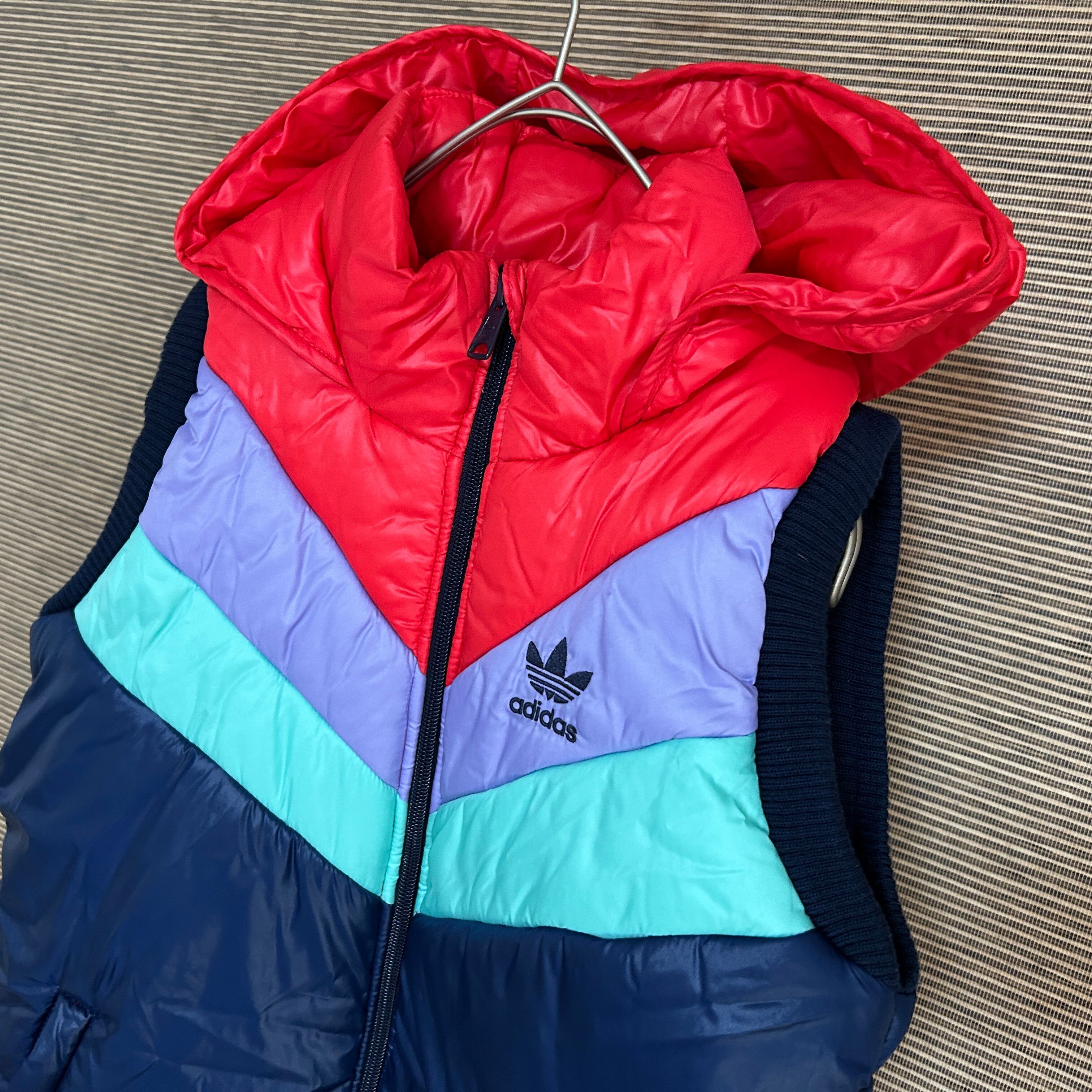 アディダス 中綿ベスト トレフォイル ネイビーレッド ワンポイントロゴF2 古着 男女兼用 レディース メンズ