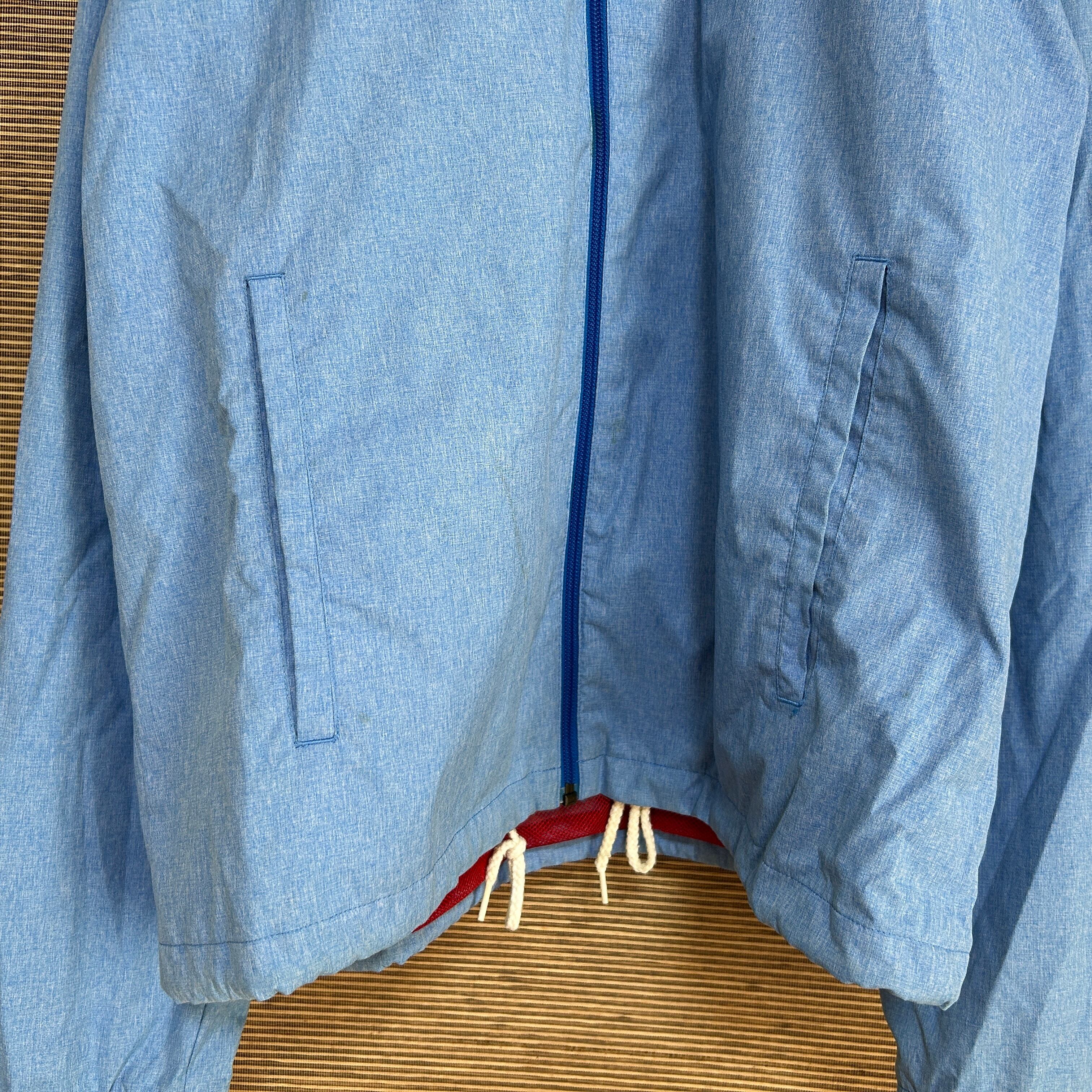 アディダス ナイロンジャケット トレフォイルロゴ くすみ水色 刺繍F1 古着 ワンポイントロゴ バイカラー 魚 サーモン