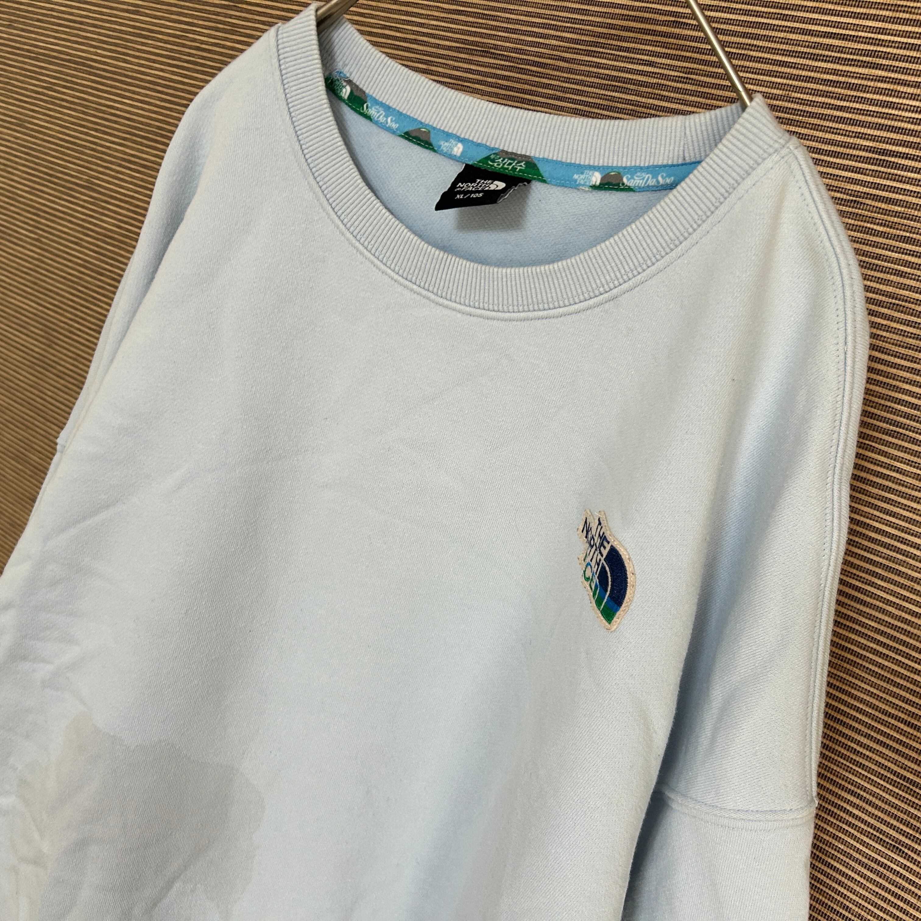 ノースフェイス スウェット トレーナー 水色 刺繍 ワンポイント裏毛F1 古着 ペットボトル ビッグサイズ ゆるだぼ