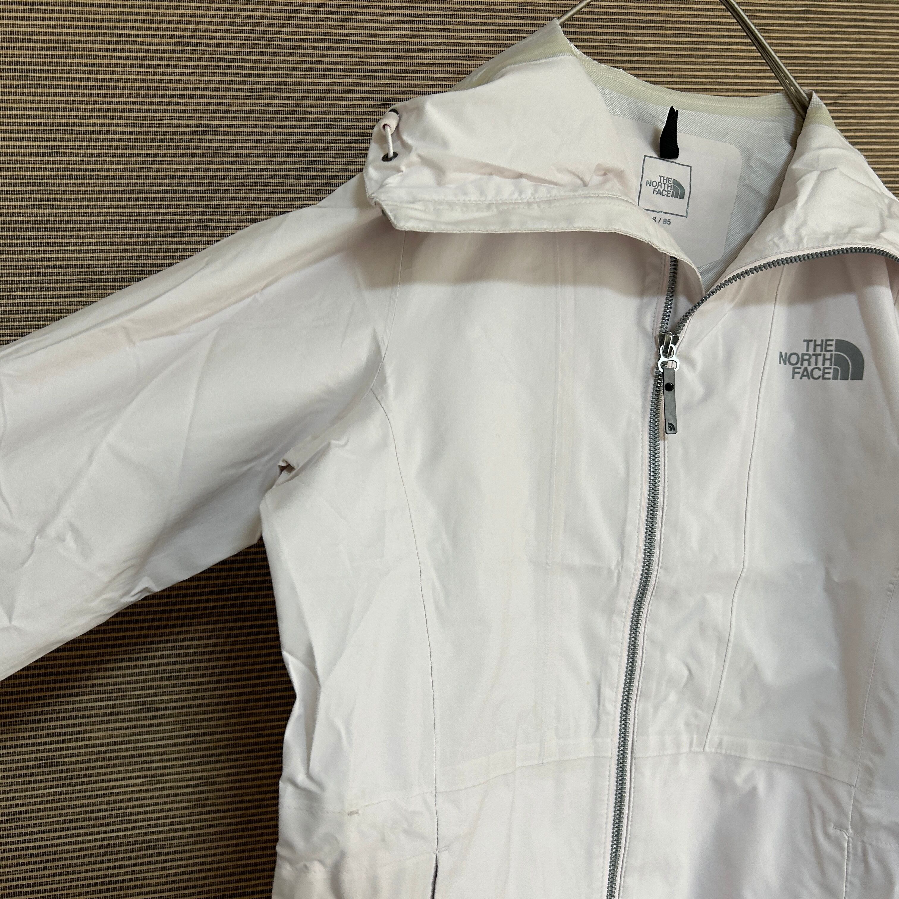 ノースフェイス ロングナイロンジャンパー 薄いピンク 肩ロゴ プリントロゴF1 古着 レディース ワンポイントロゴ