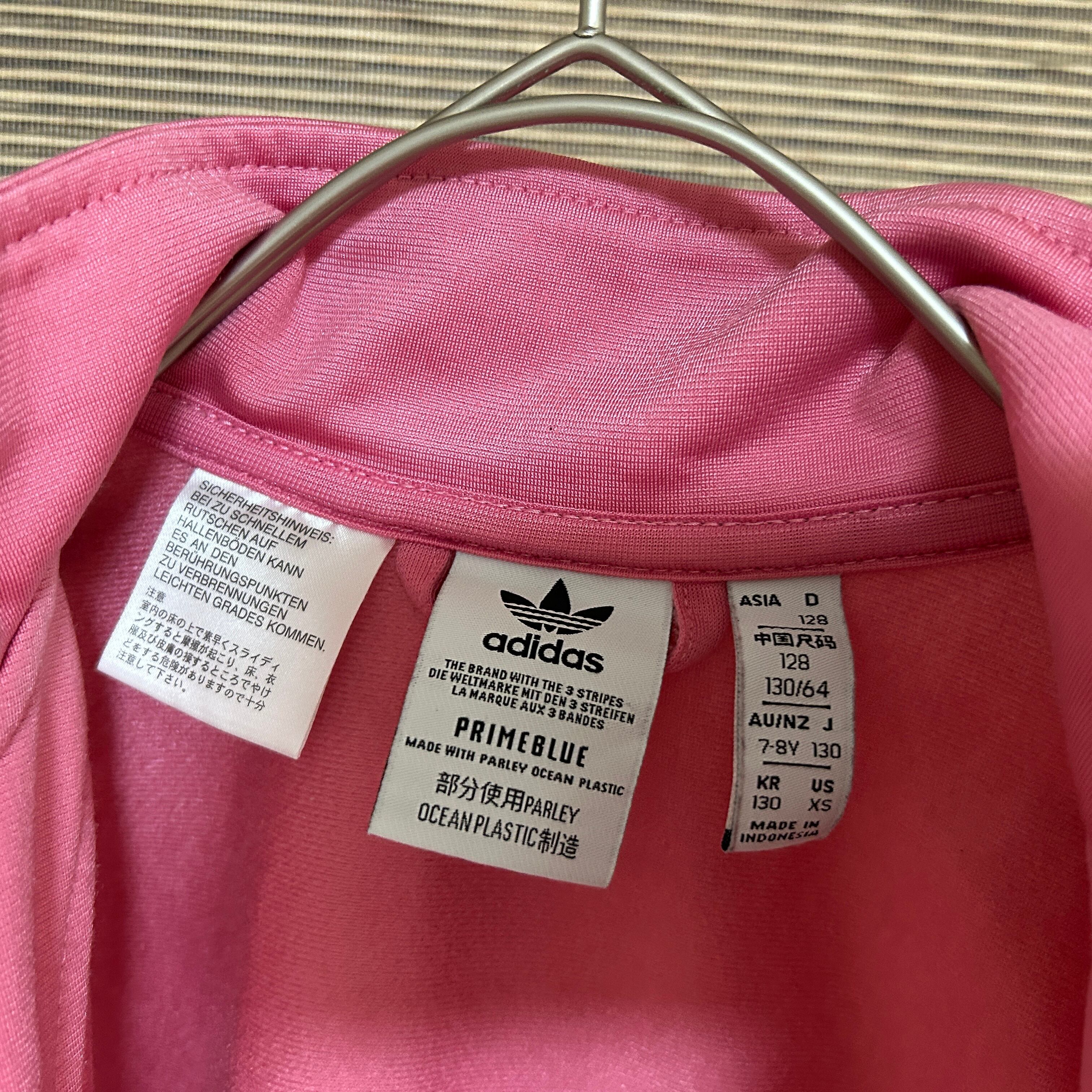 アディダス ジャージトラックジャケット 子供130トレフォイルピンク キッズH1古着 ワンポイントロゴ 袖ロゴ スリーブロゴ プリントロゴ