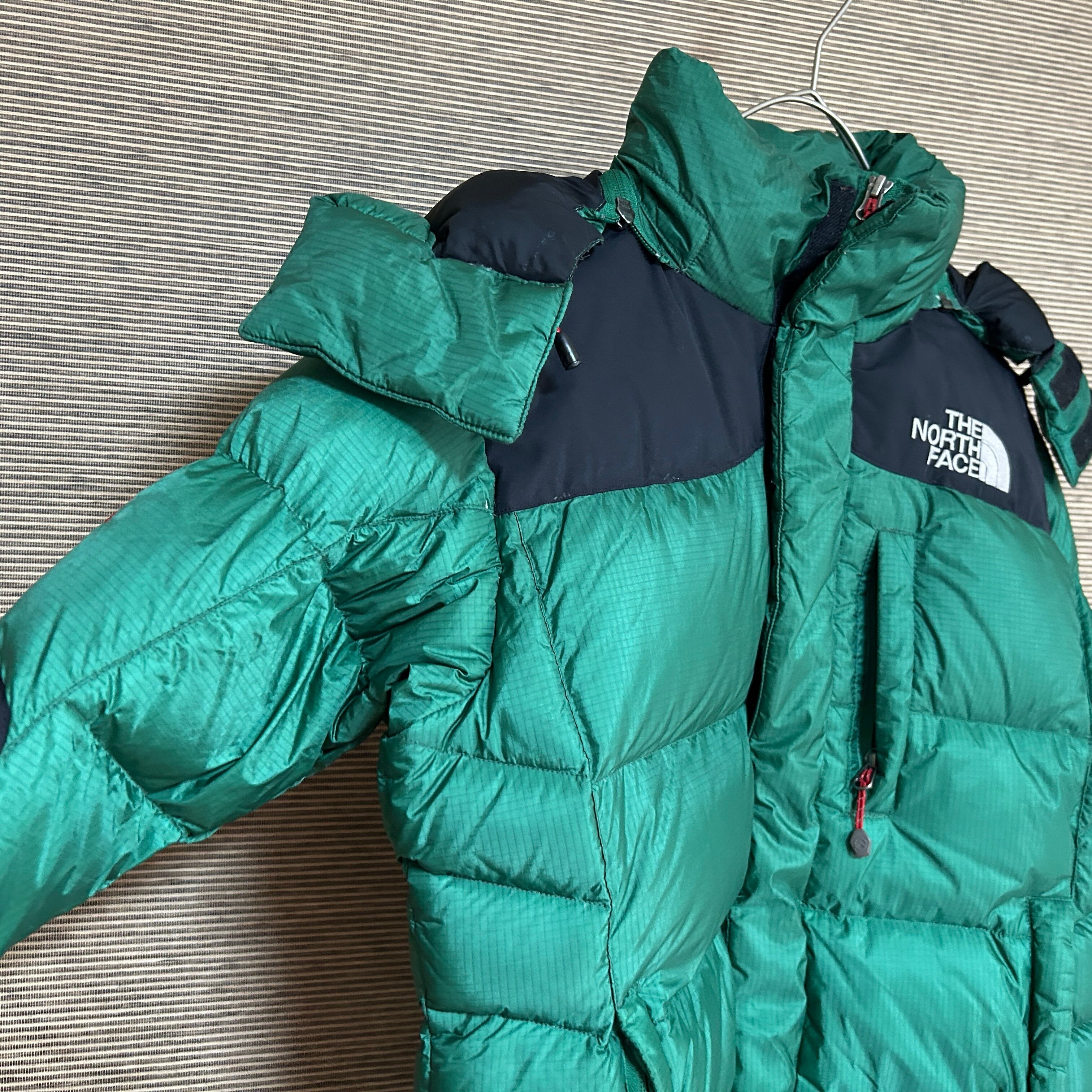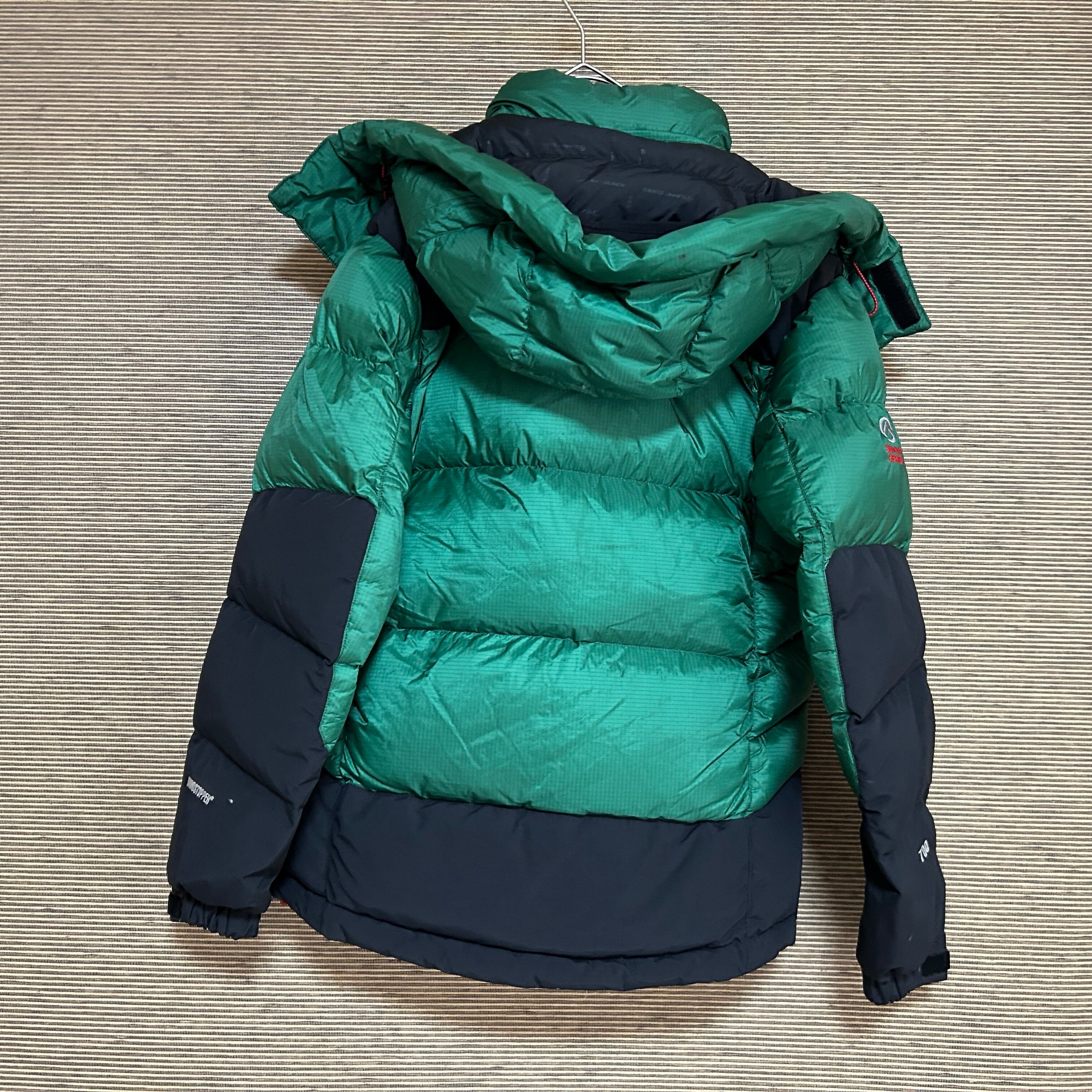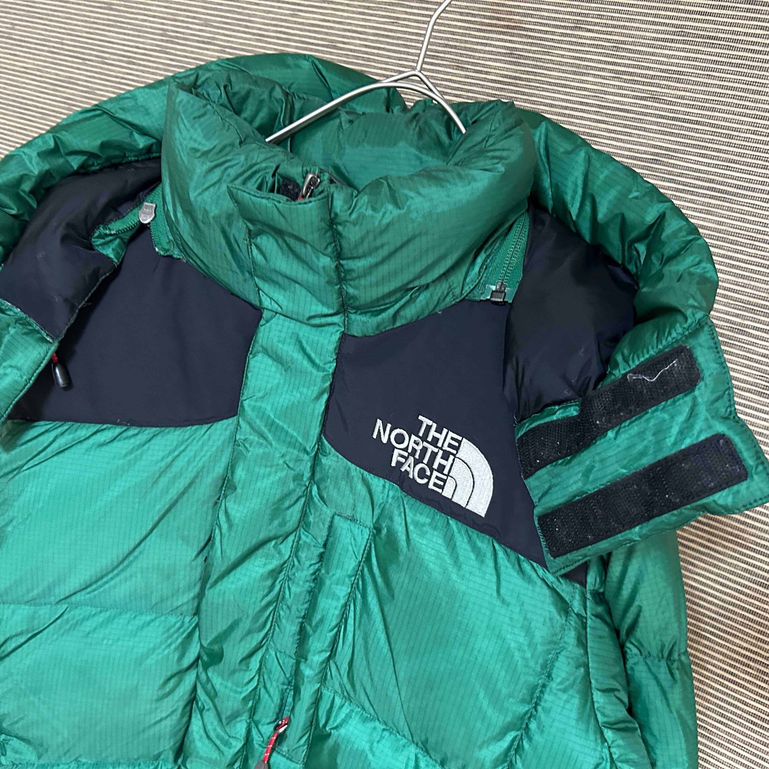 ノースフェイス ダウンジャケット サミットシリーズ グリーン黒 刺繍 H6 古着 ウインドストッパー 肩ロゴ 袖ロゴ