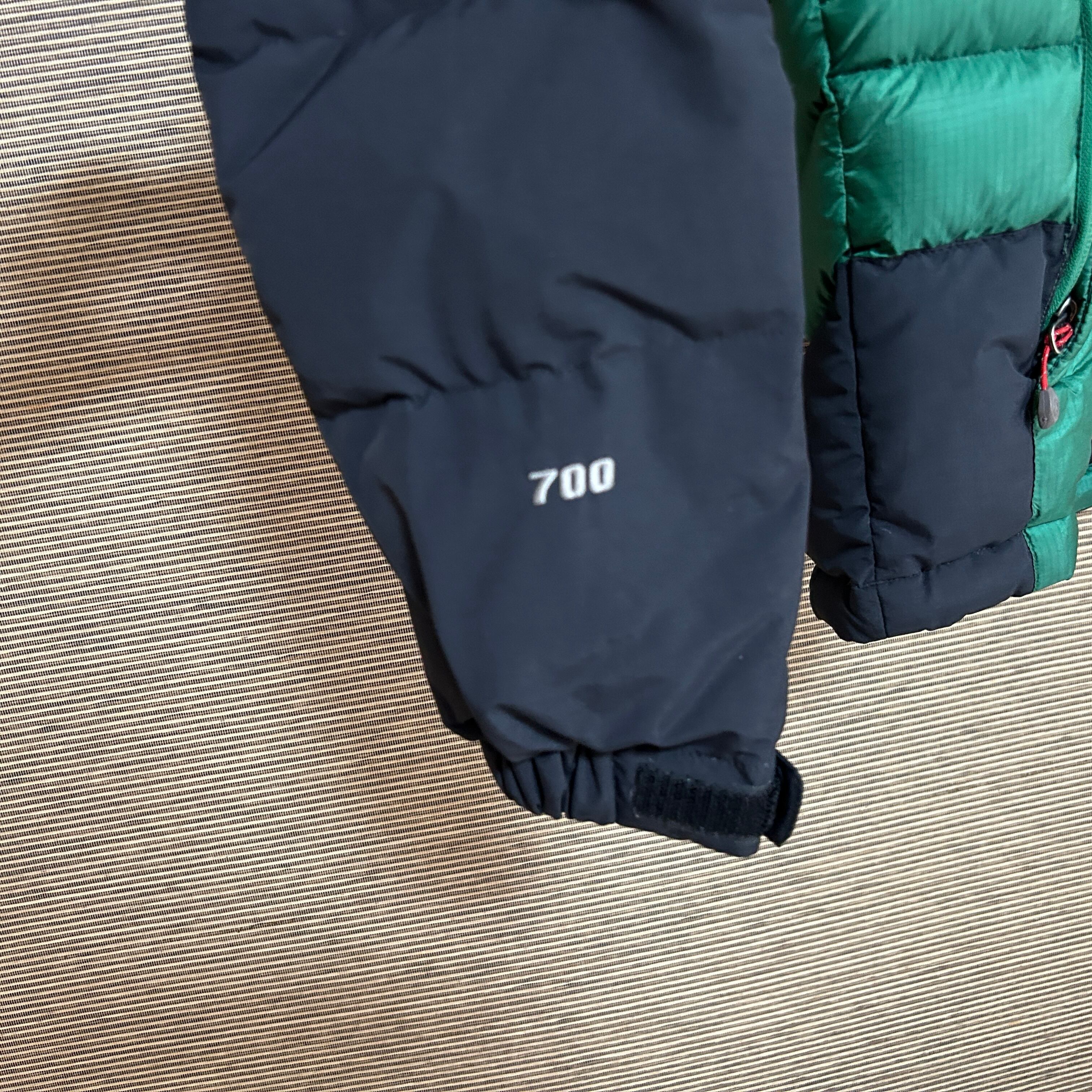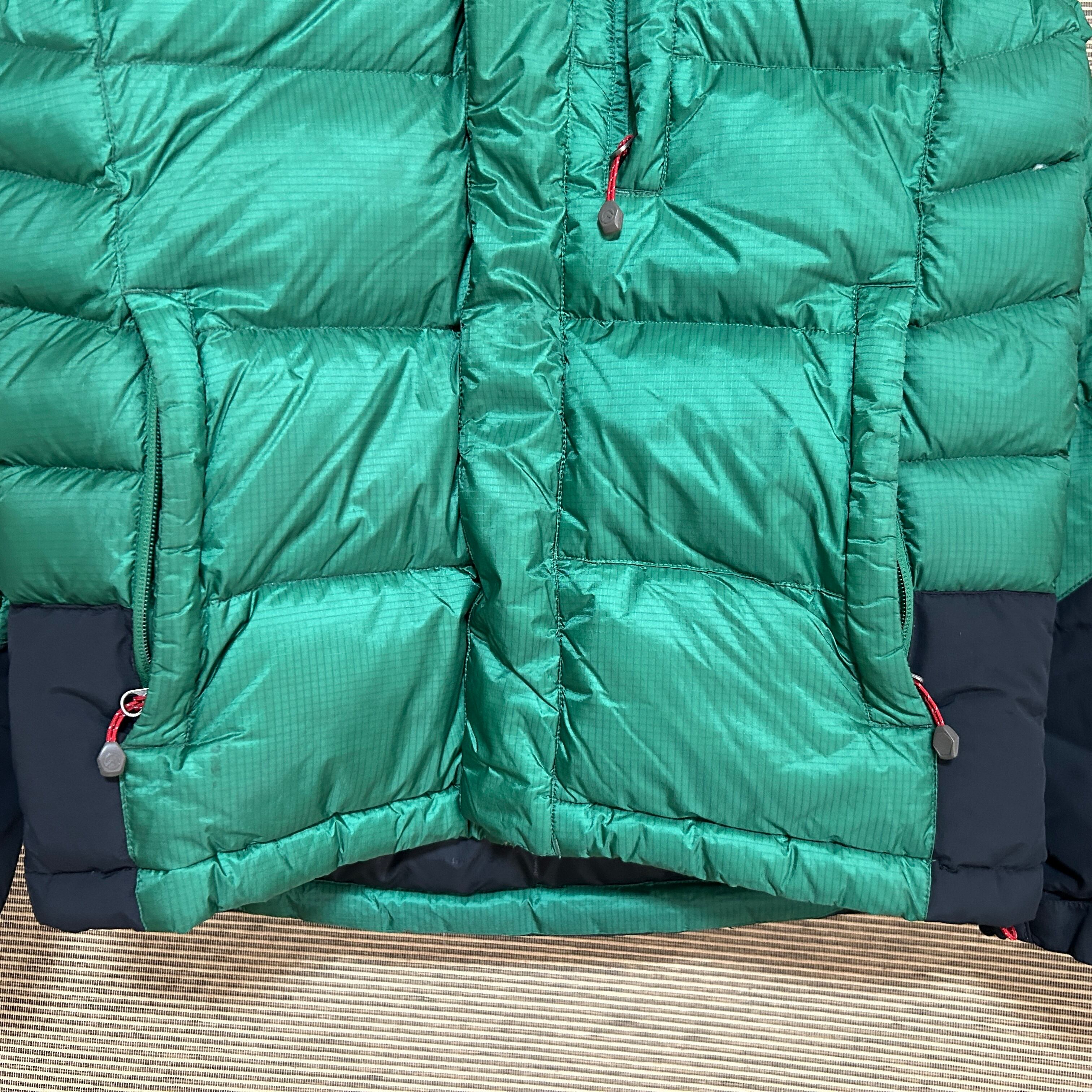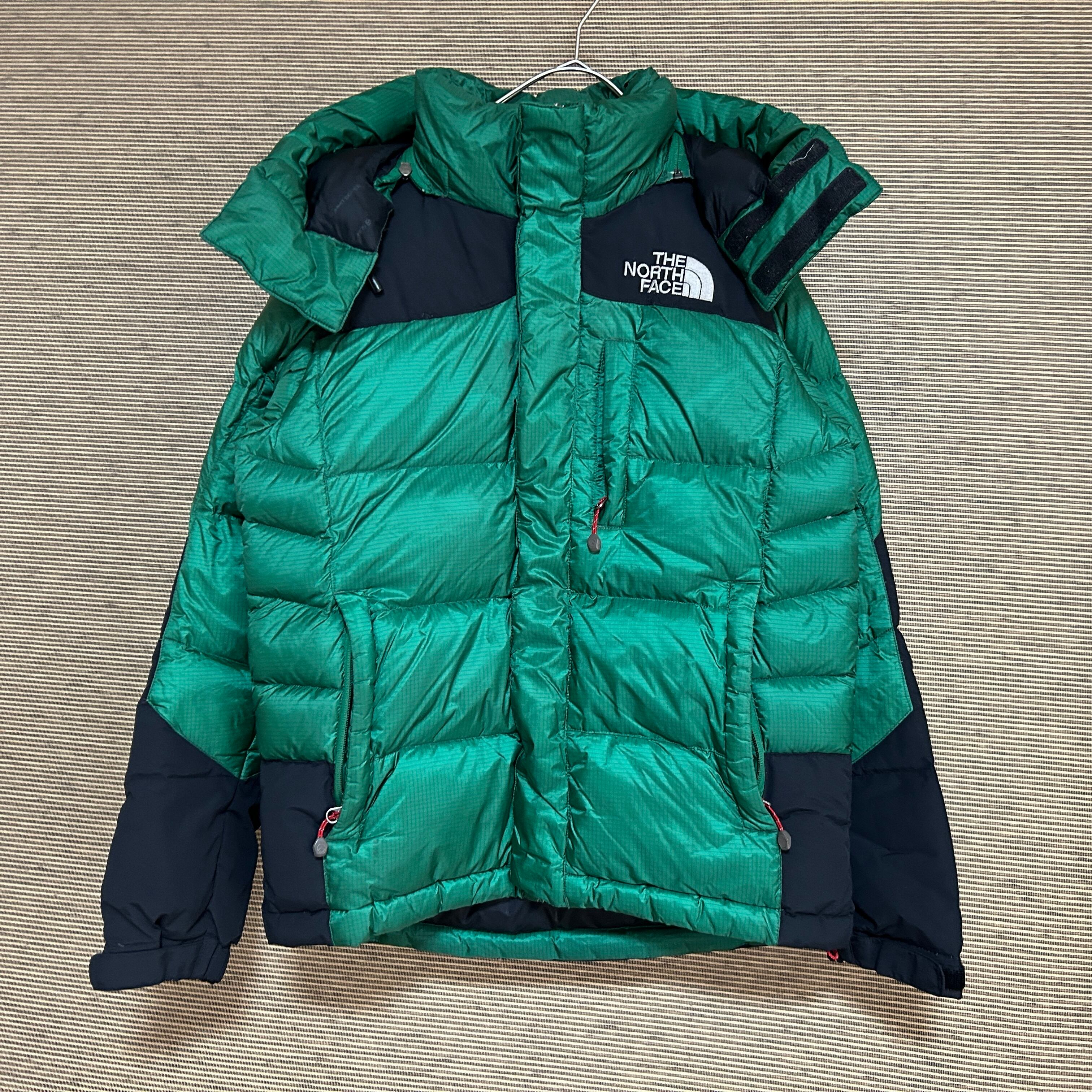 ノースフェイス ダウンジャケット サミットシリーズ グリーン黒 刺繍 H6 古着 ウインドストッパー 肩ロゴ 袖ロゴ