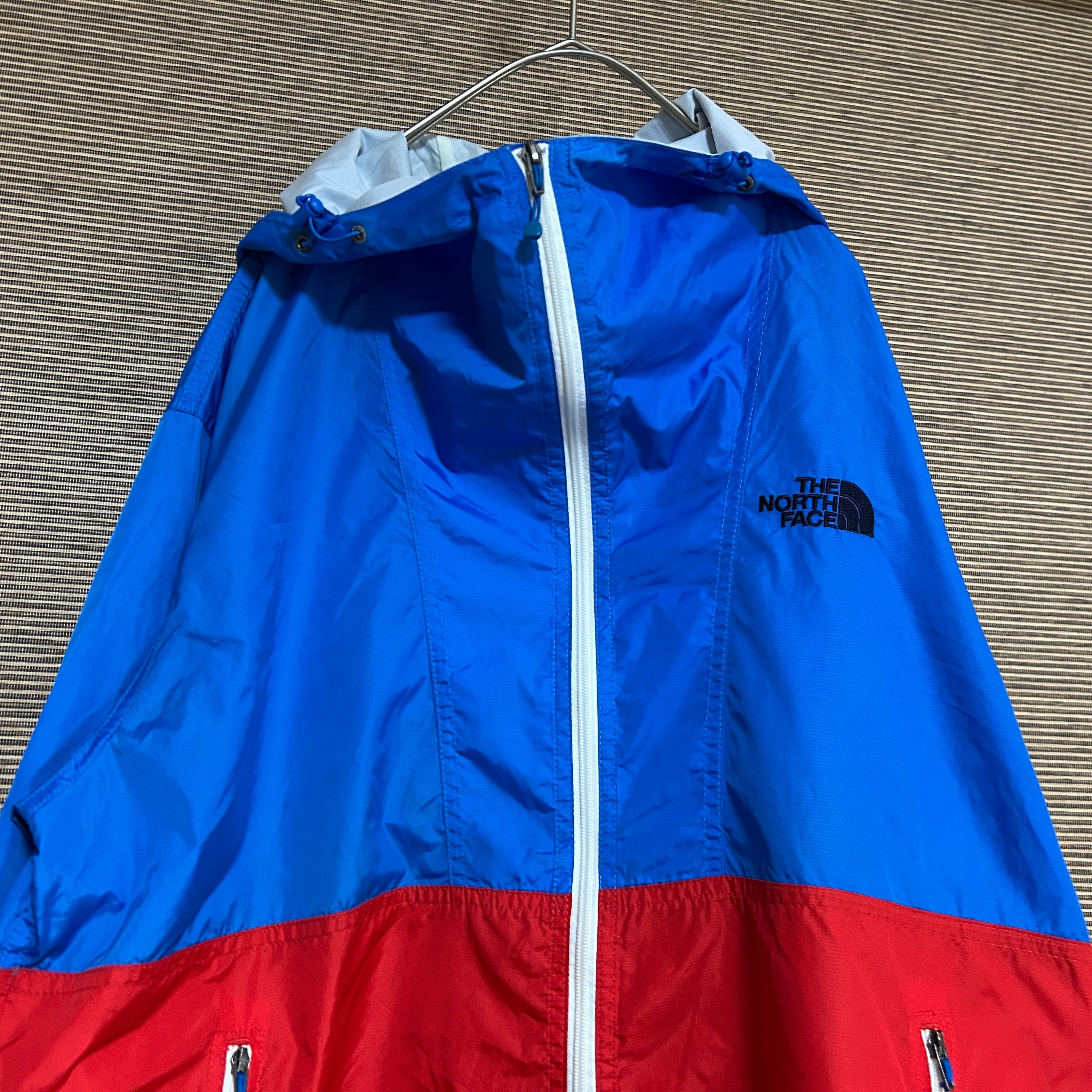 ノースフェイス ナイロンジャケット ブルーレッド 刺繍 薄手バイカラーG1 古着 ワンポイントロゴ 軽量