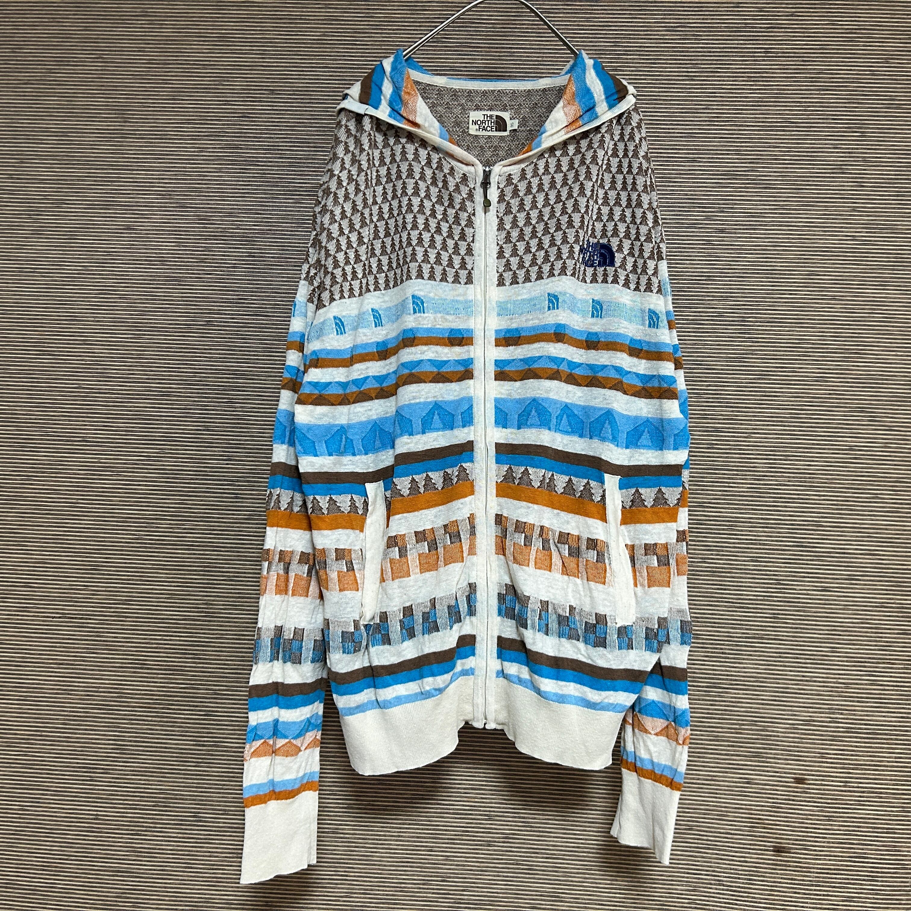 ノースフェイス パーカー 幾何学 総柄 薄手 刺繍 韓国限定G1 古着 ホワイトレーベル アウトドア ボタニカル