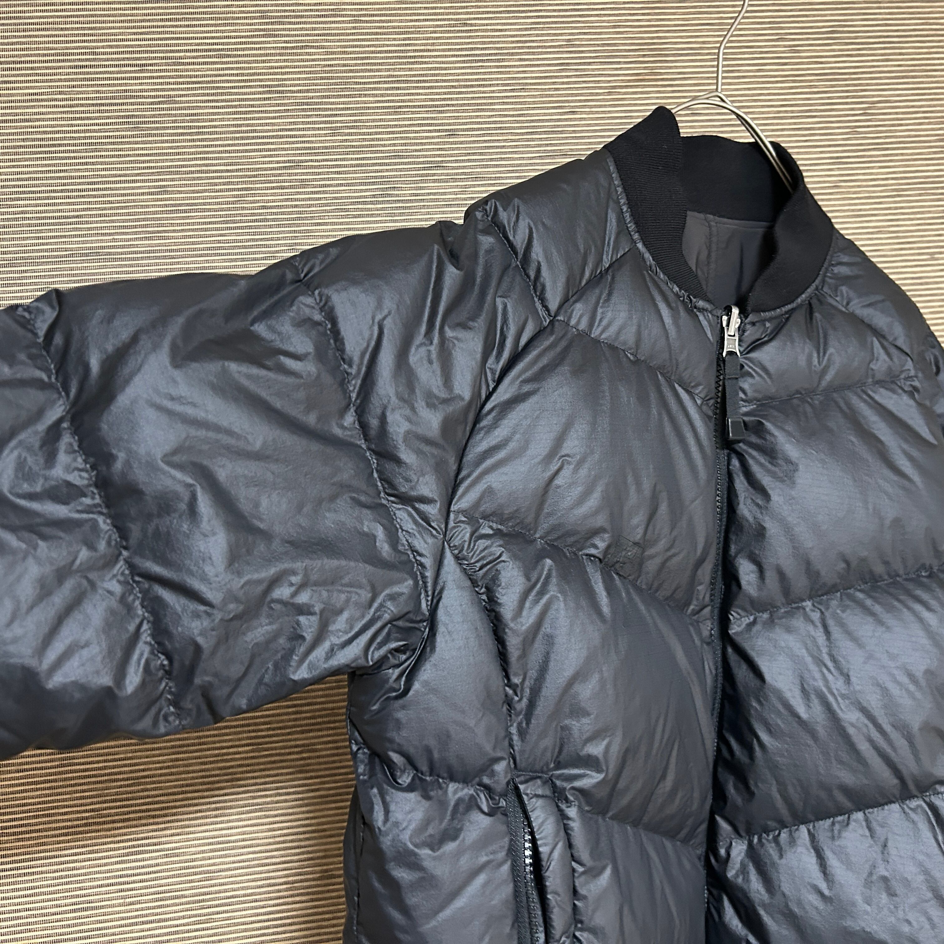 ノースフェイス リバーシブルダウンジャケット 黒ブラックダークグレー肩ロゴH3 古着 ワンポイントロゴ 袖ロゴ 訳あり激安