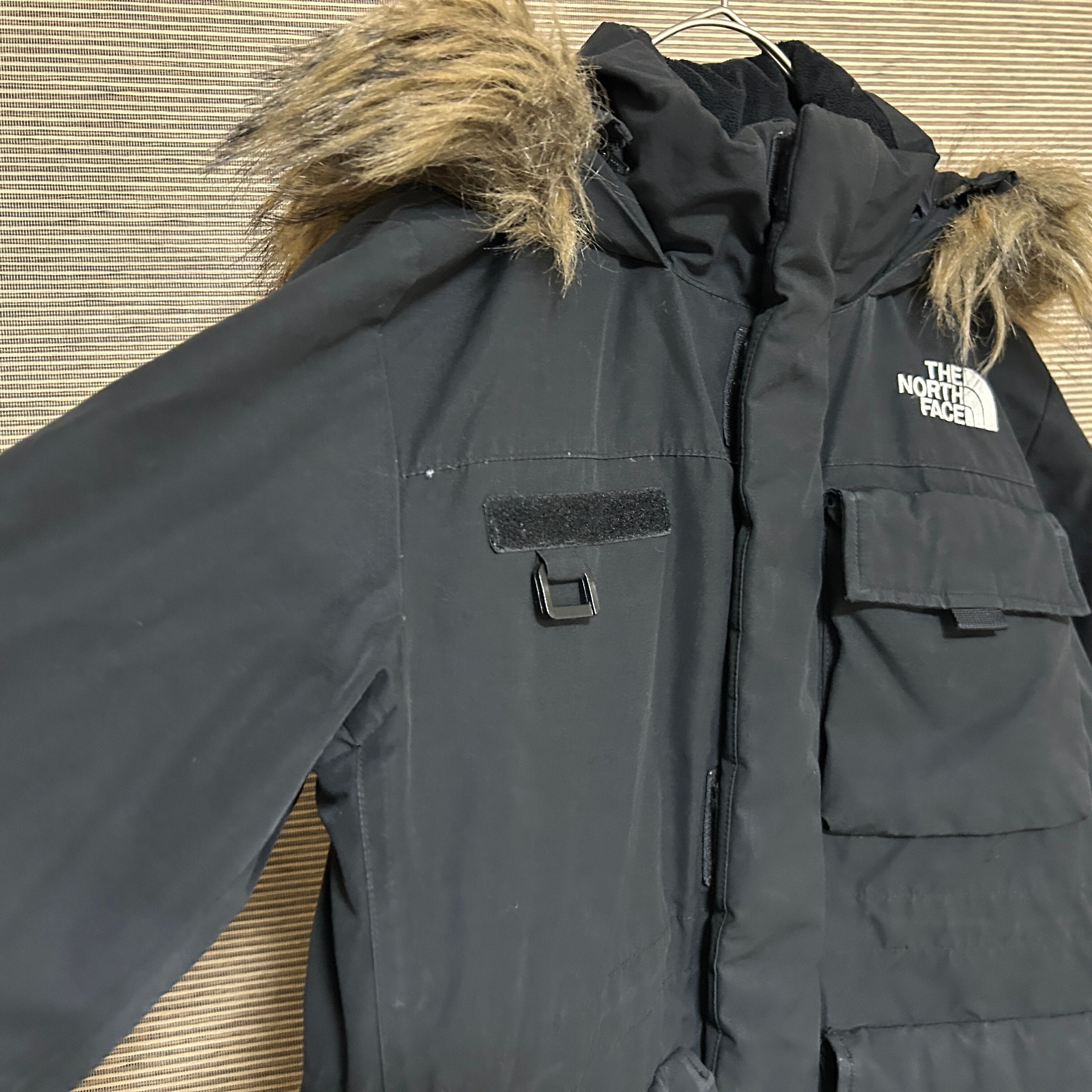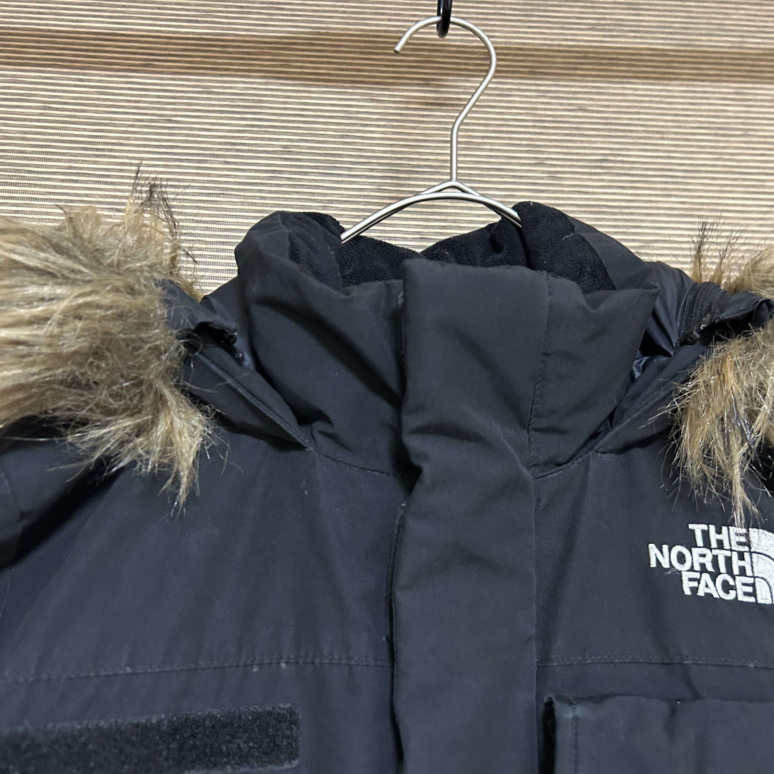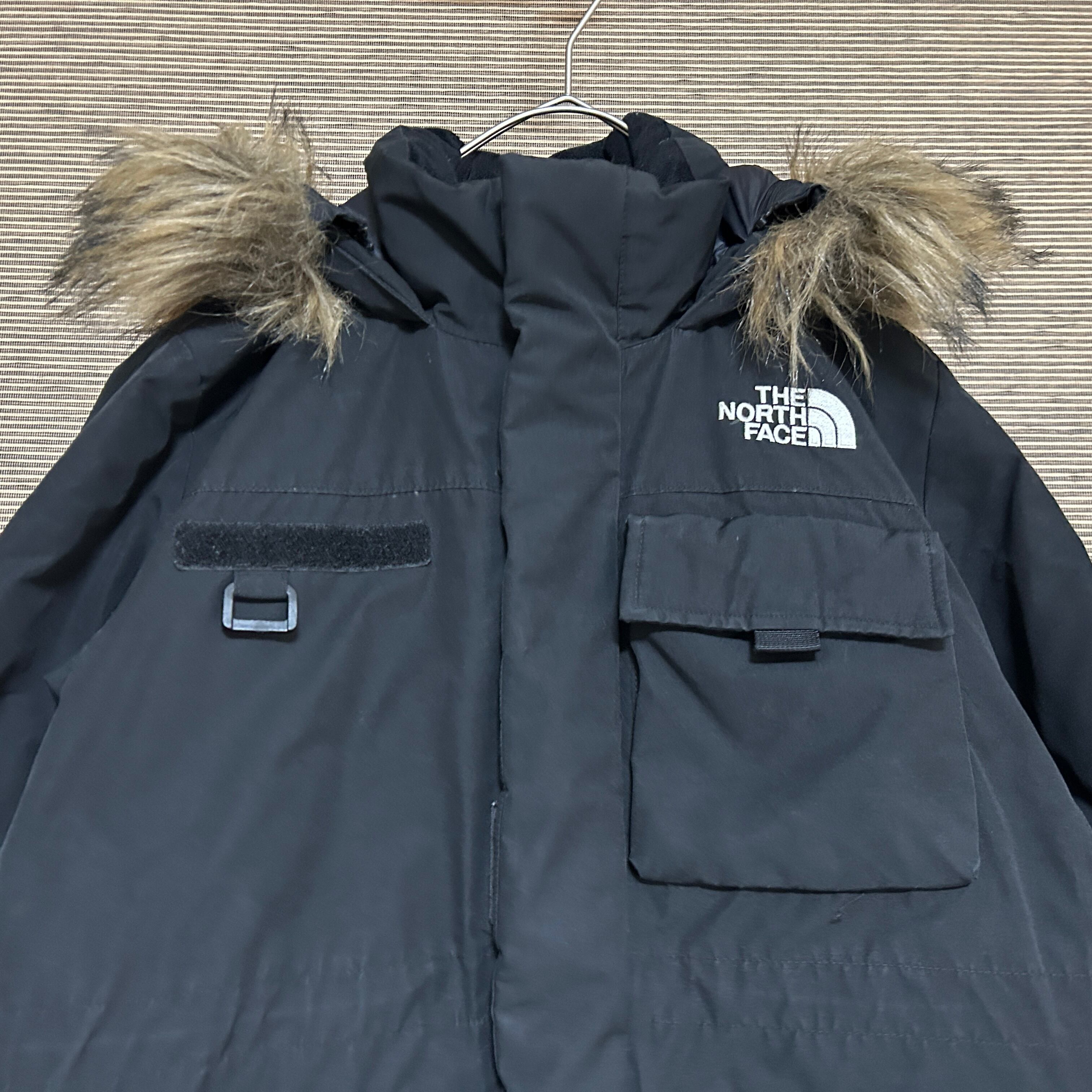 ノースフェイス ダウンジャケット モッズコート 黒 子供140フェイクファーH2 キッズ ブラック 刺繍 ワンポイントロゴ