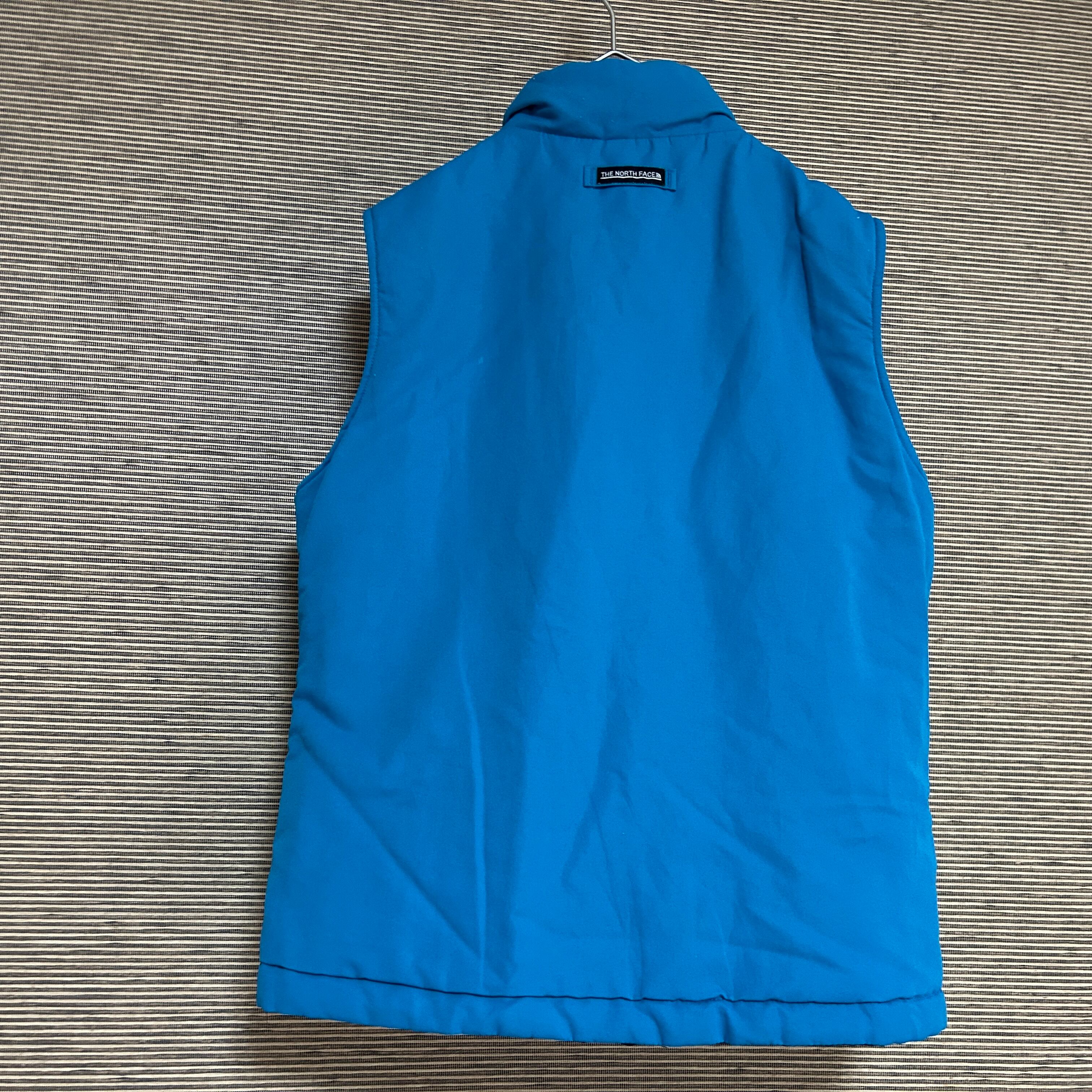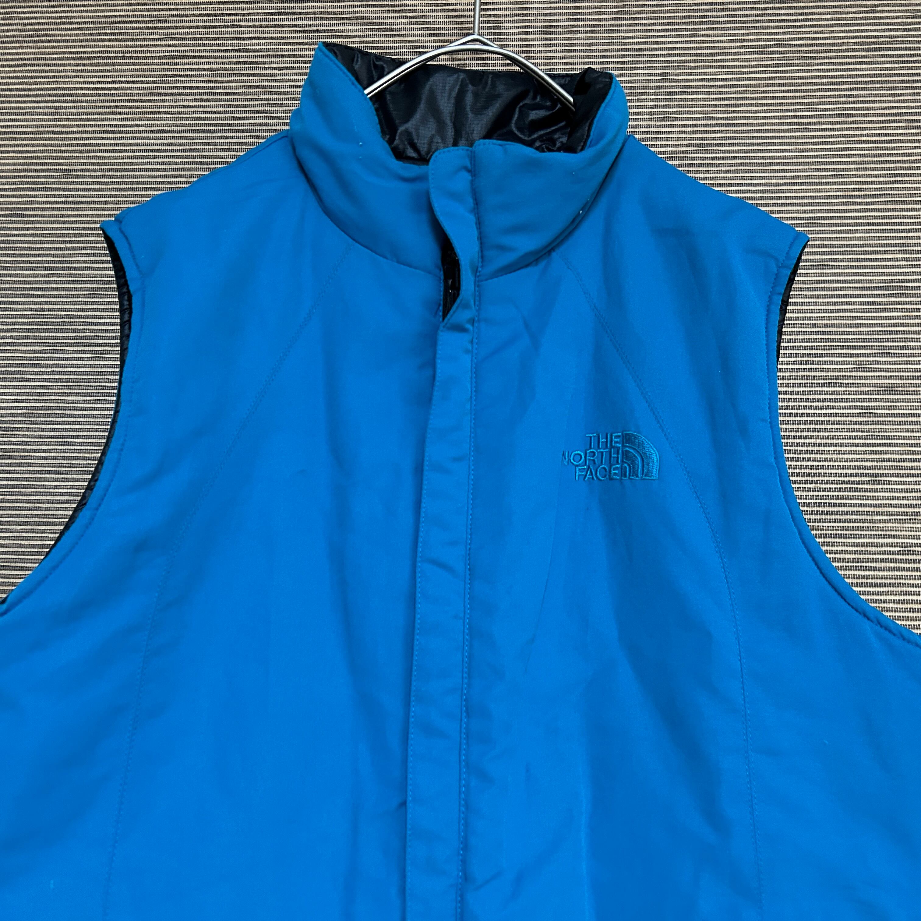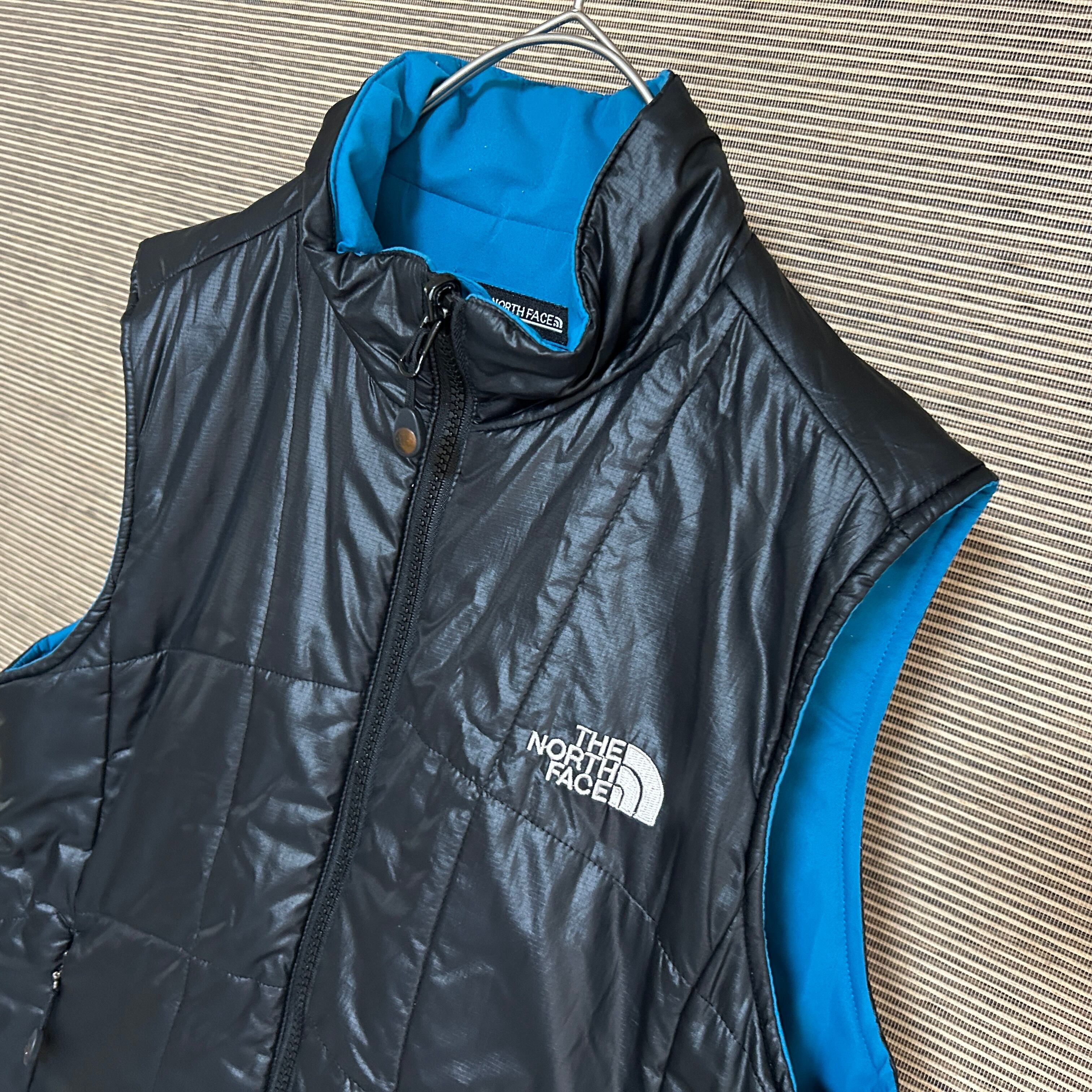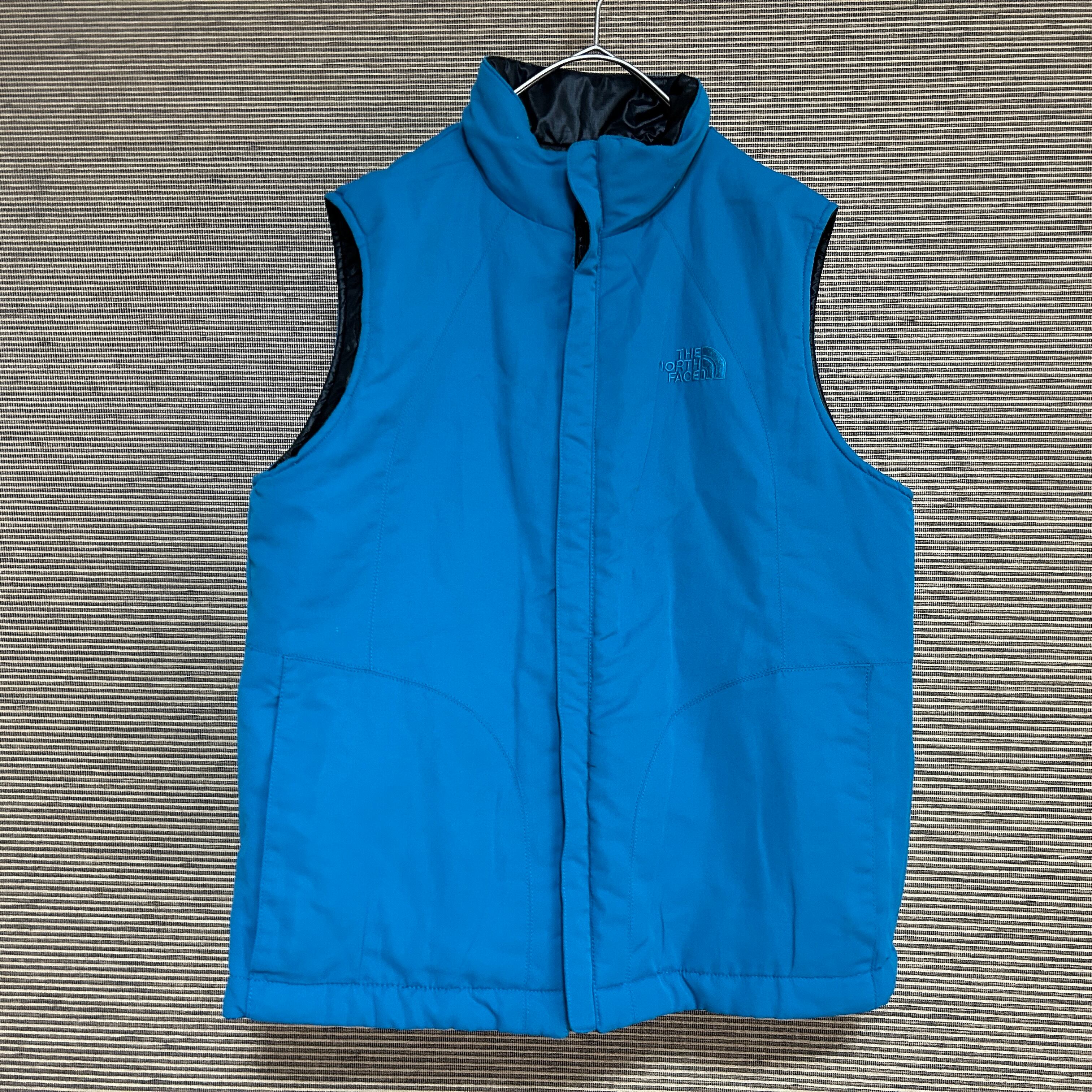 ノースフェイス リバーシブル中綿ベスト 黒 刺繍 ワンポイントロゴG0 古着 レディース エンブレムタグ ブルー系