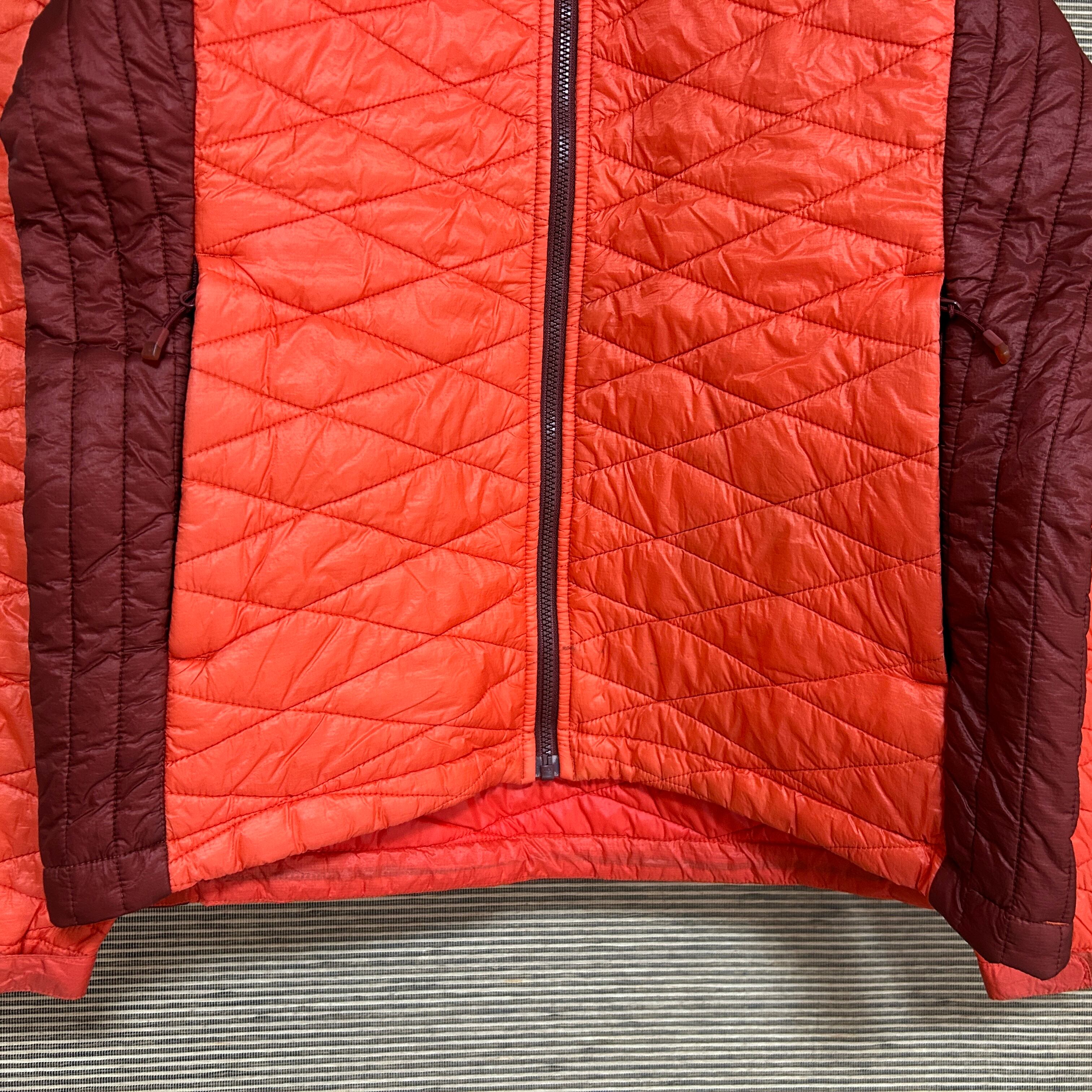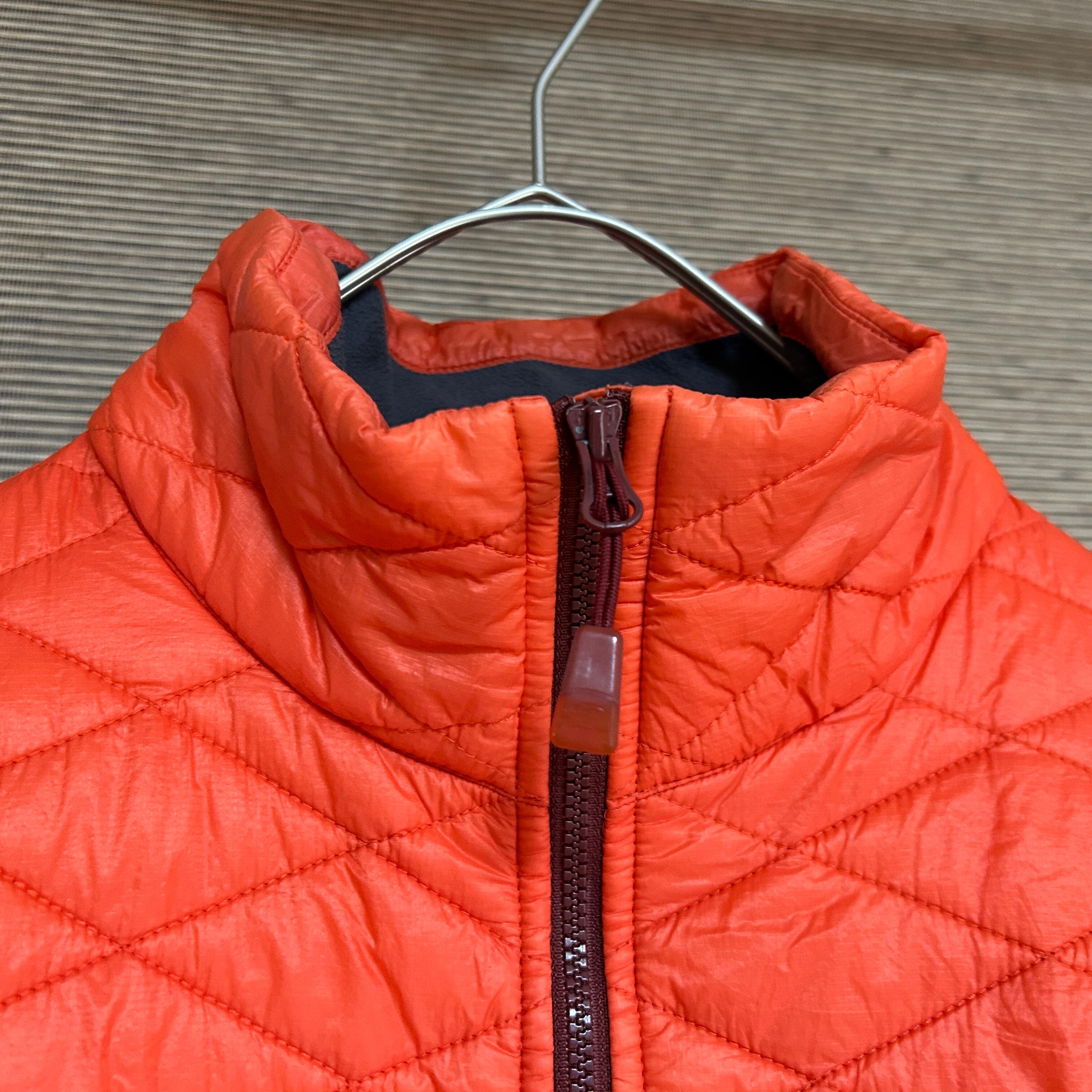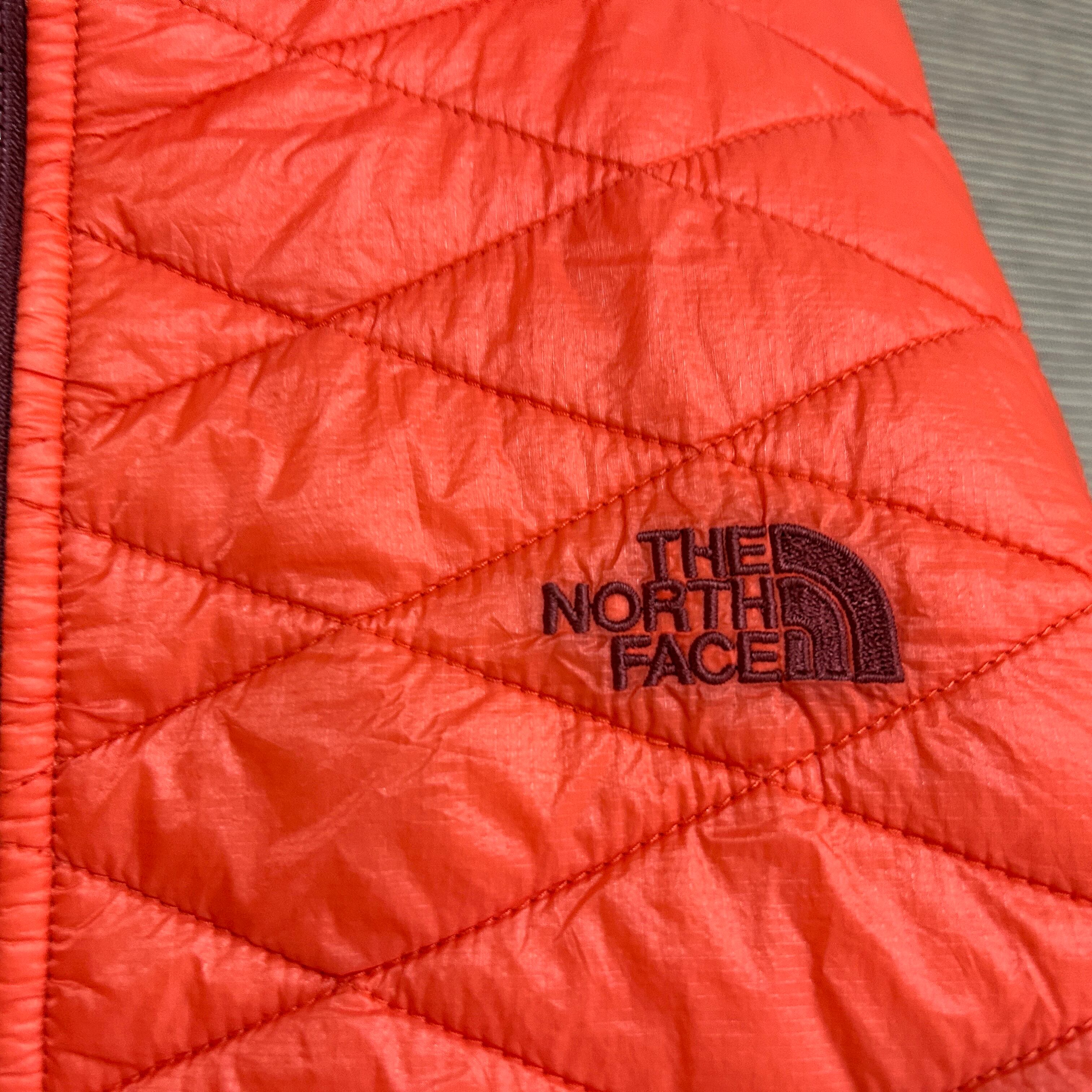 ノースフェイス 中綿ジャケット 朱色赤 VX刺繍S ワンポイントG2 古着 メンズ 赤レッド