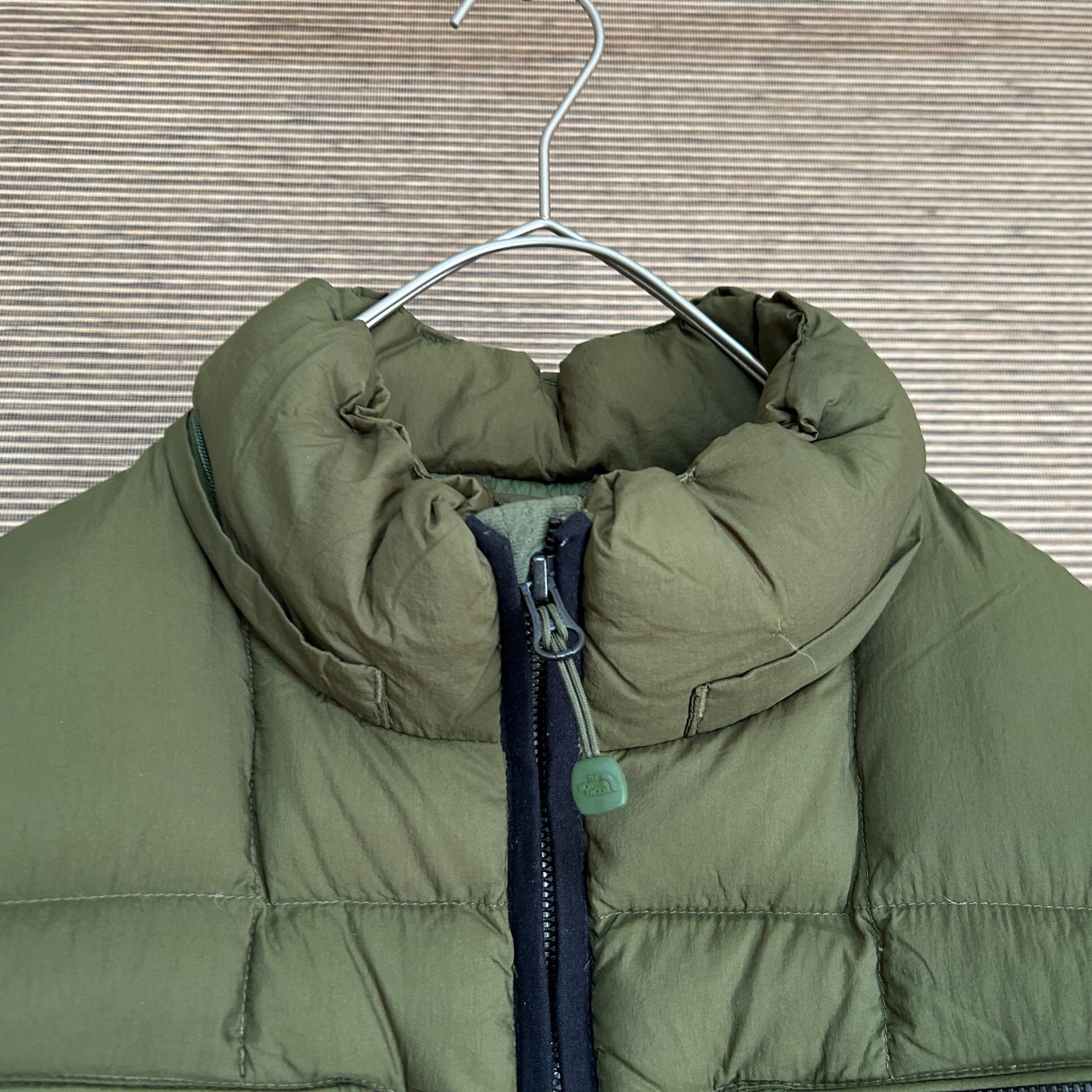 ノースフェイス ロングダウンコート カーキー 刺繍 肩ロゴ 韓国限定 F3 古着 ワンポイントロゴ レディース