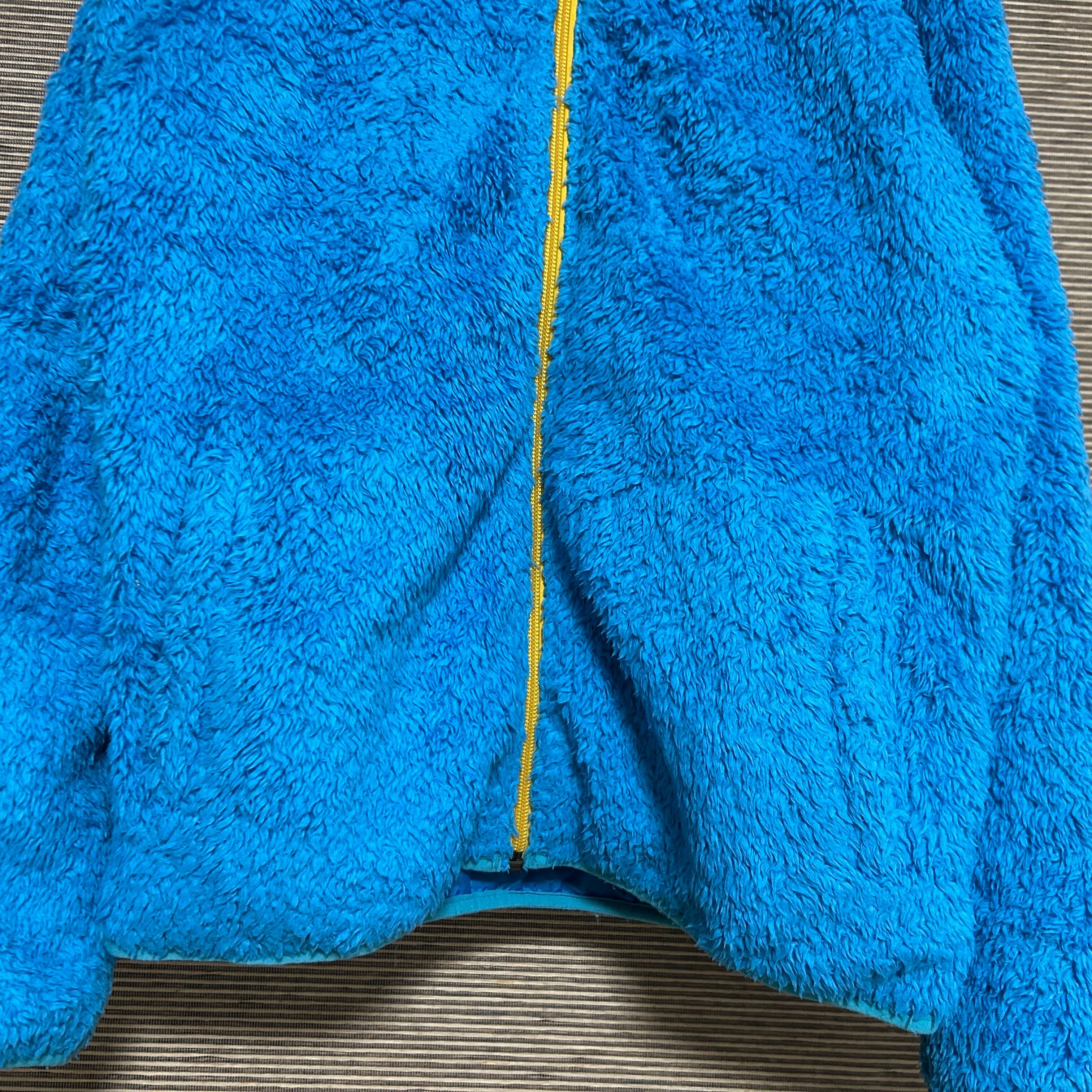 ノースフェイス もこもこフリースジャケット 子供160キッズ 水色 刺繍G 古着 スカイブルー レディースXXS相当 ワンポイントロゴ
