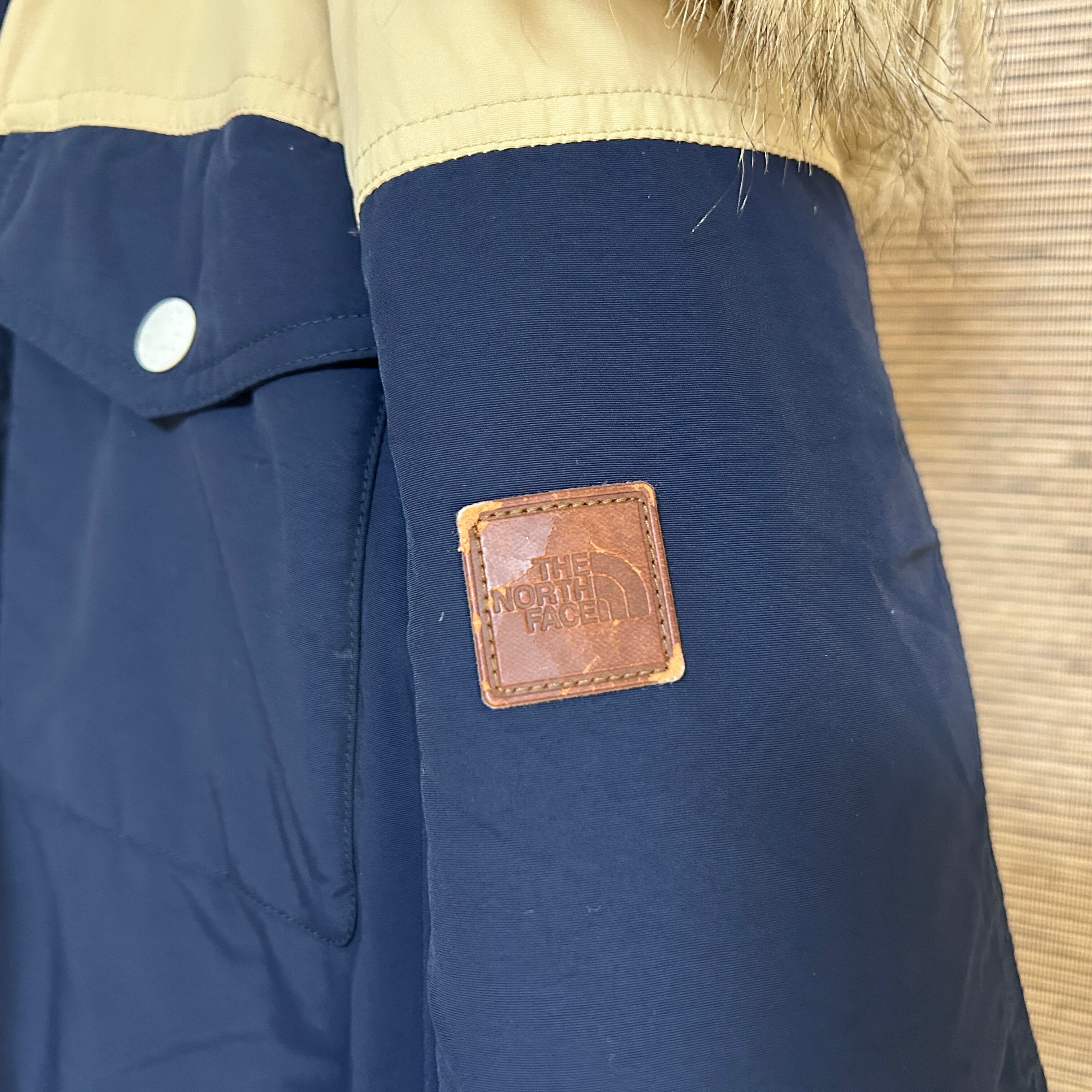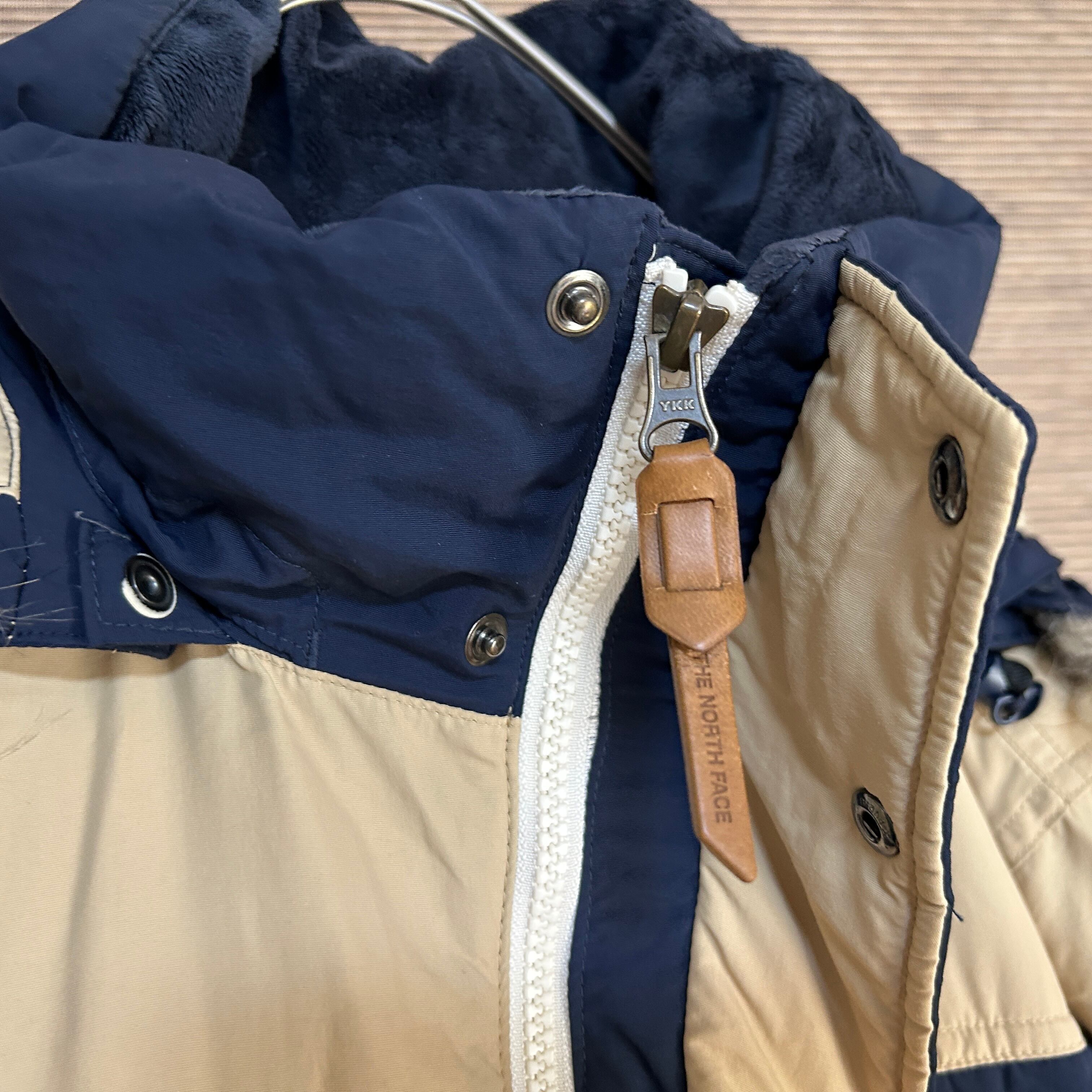 ノースフェイス ダウンジャケット ネイビーベージュモッズ 刺繍 肩ロゴC5 古着 韓国限定ホワイトレーベル