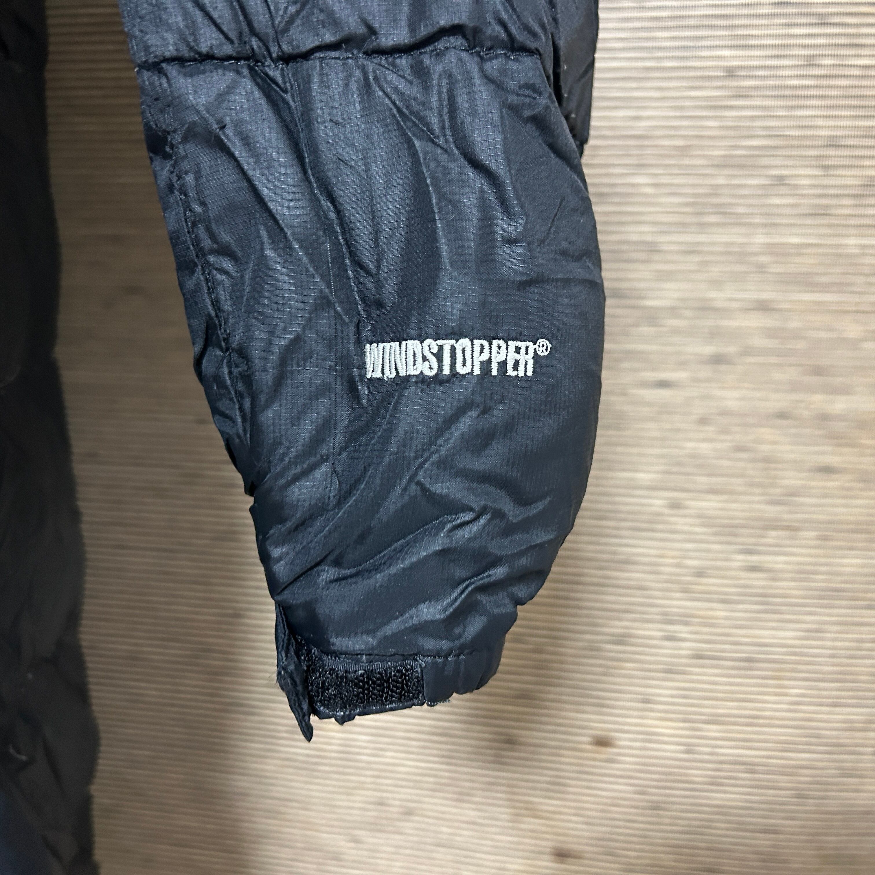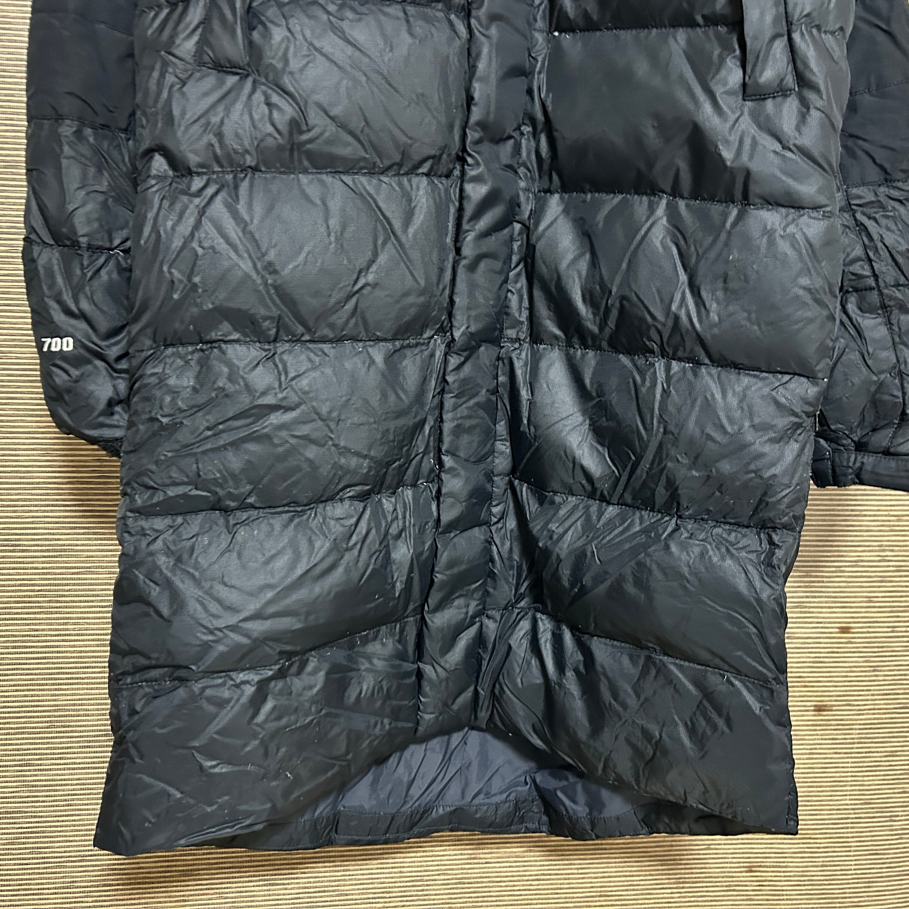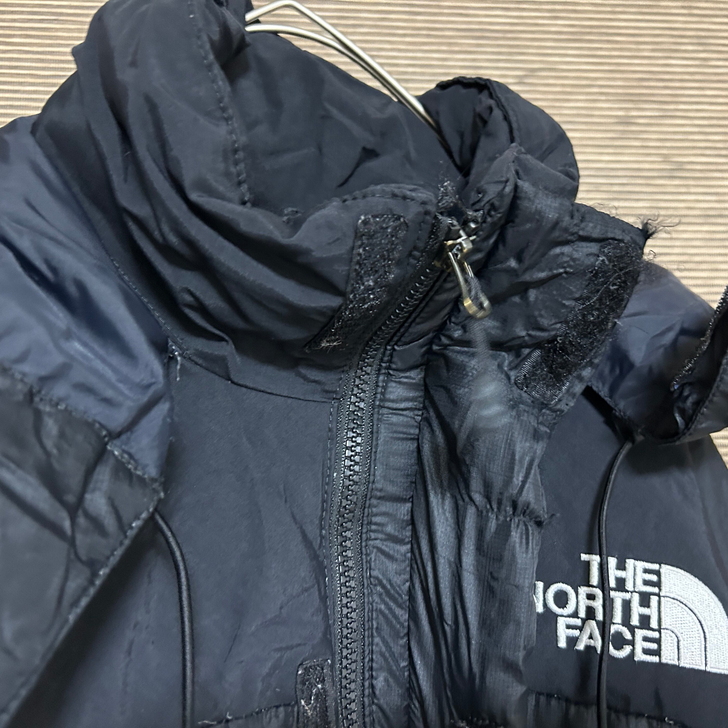 ノースフェイス ロングダウンコート ブラック黒 ウィンドストッパー 刺繍E4 古着 ワンポイントロゴ 700fil 韓国限定ホワイトレーベル