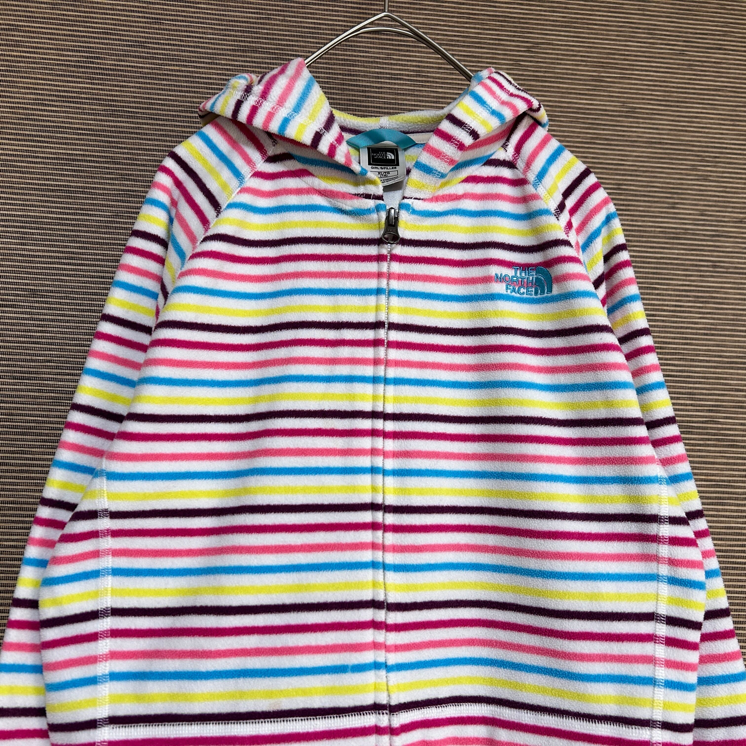 ノースフェイス フリースジャケット レインボー 子供160 刺繍 白G1 古着 ワンポイントロゴ キッズ カラフル