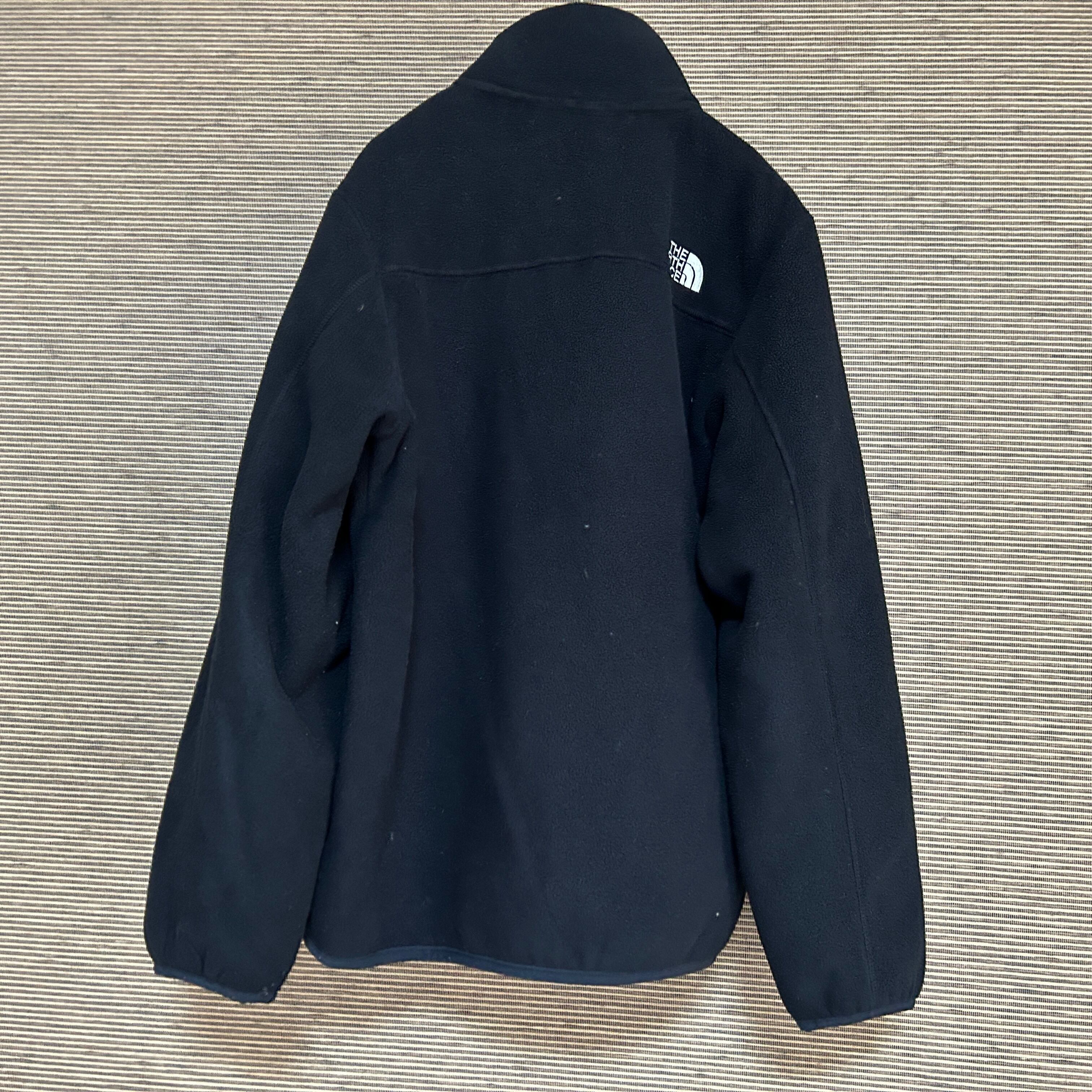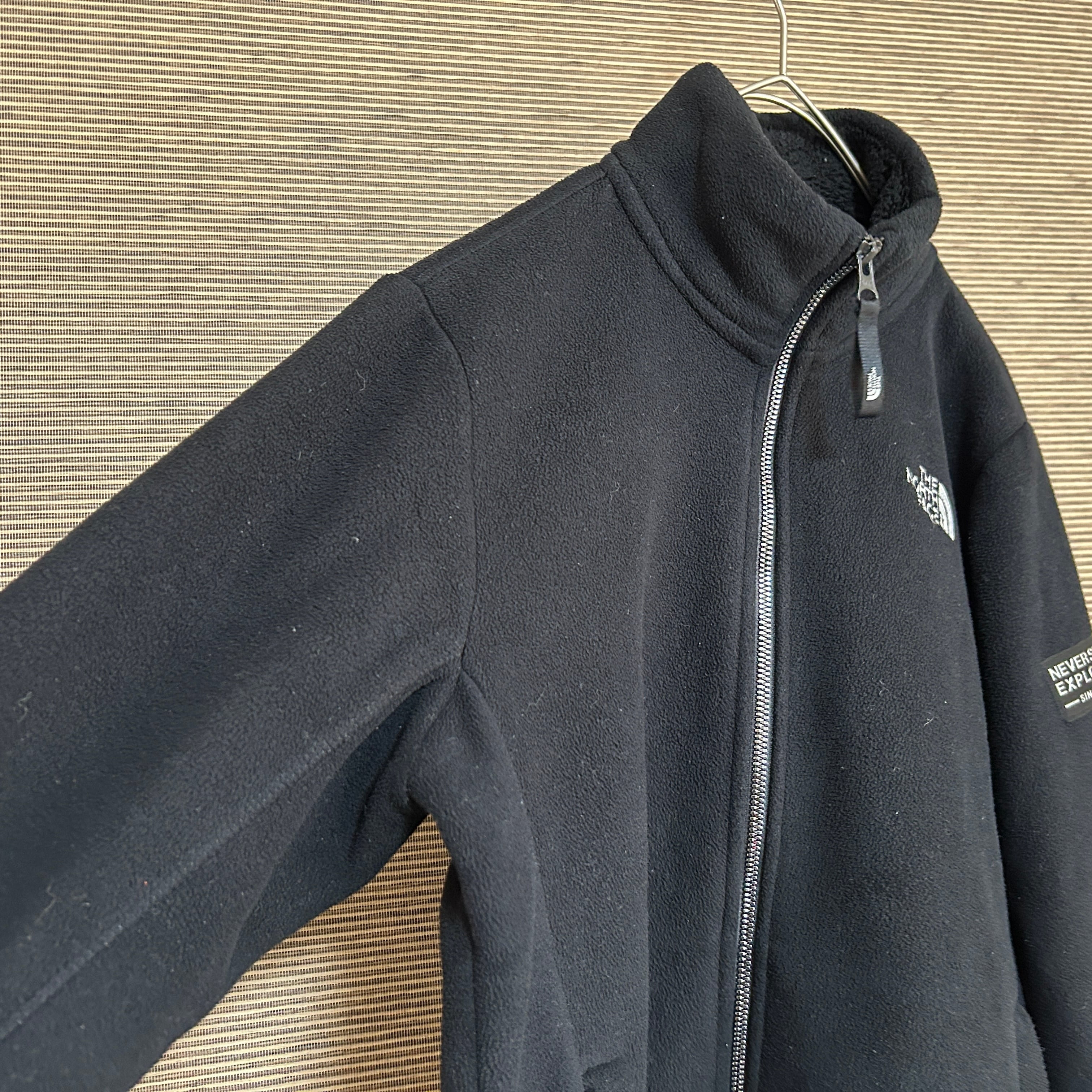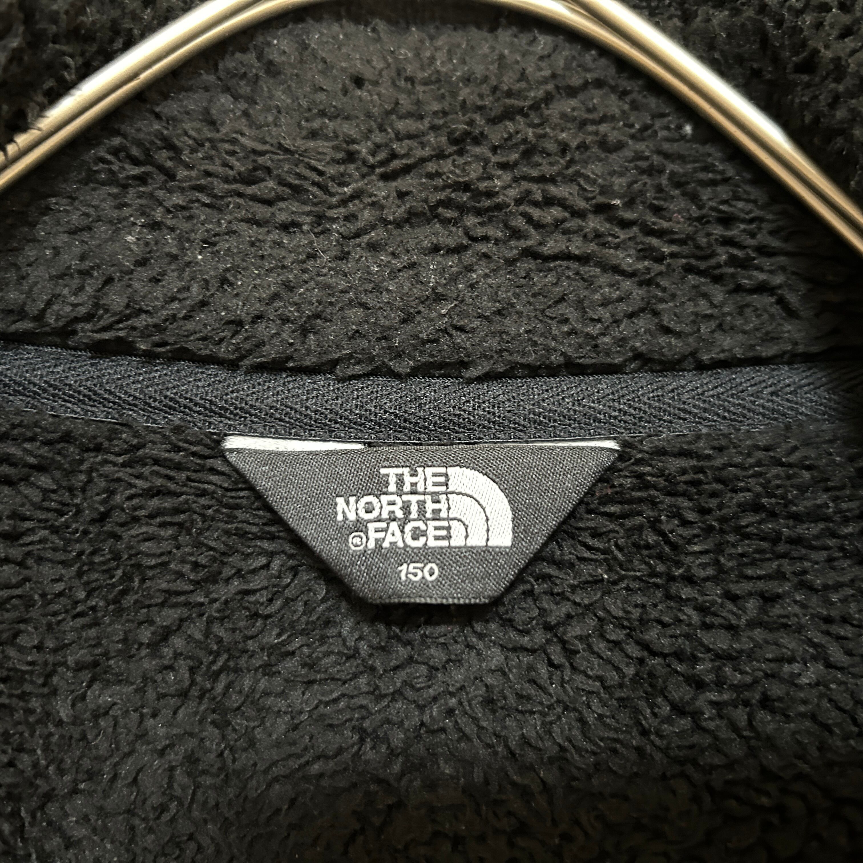 ノースフェイス フリースジャケット 子供150 刺繍 肩ロゴブラック キッズG1 古着 黒 ワンポイントロゴ