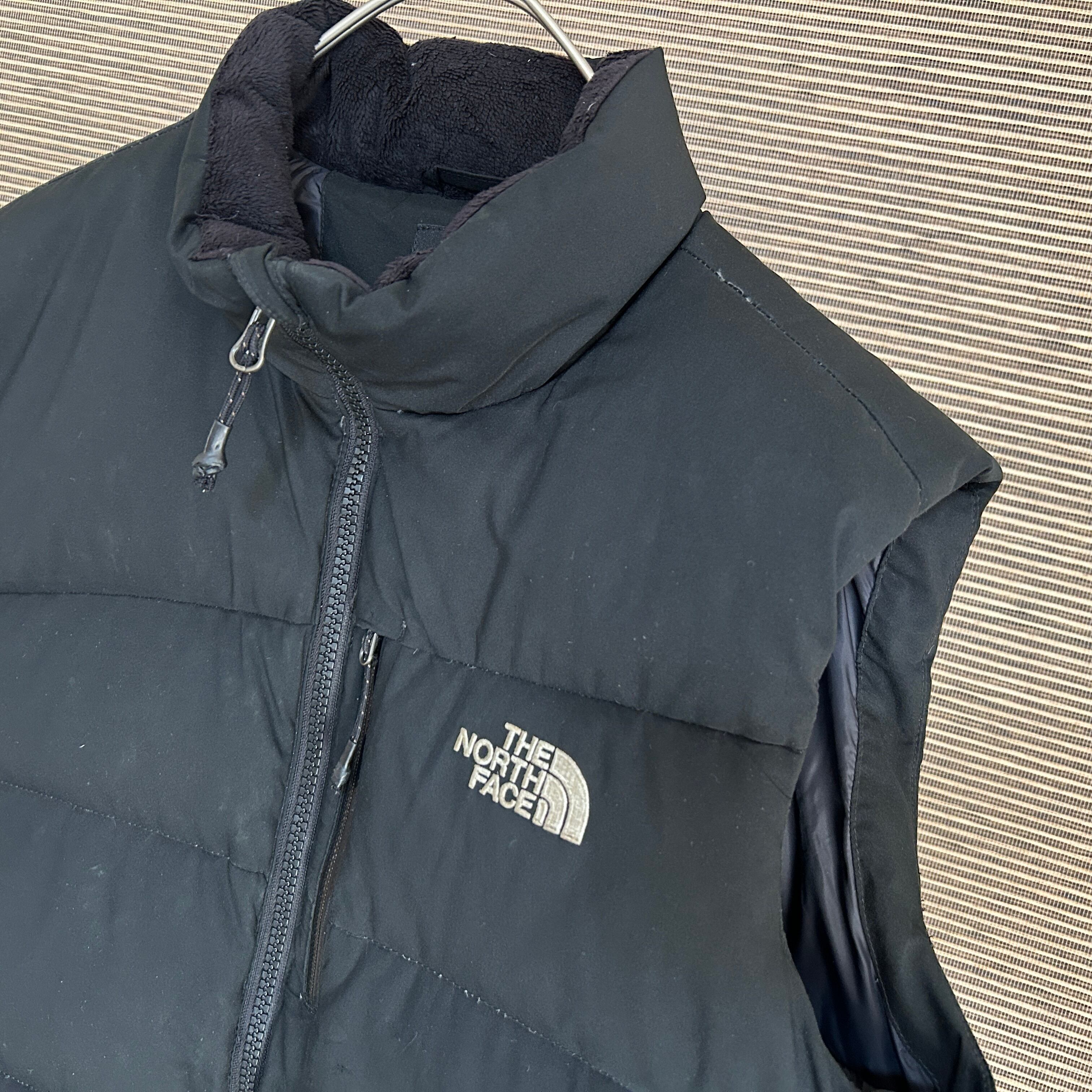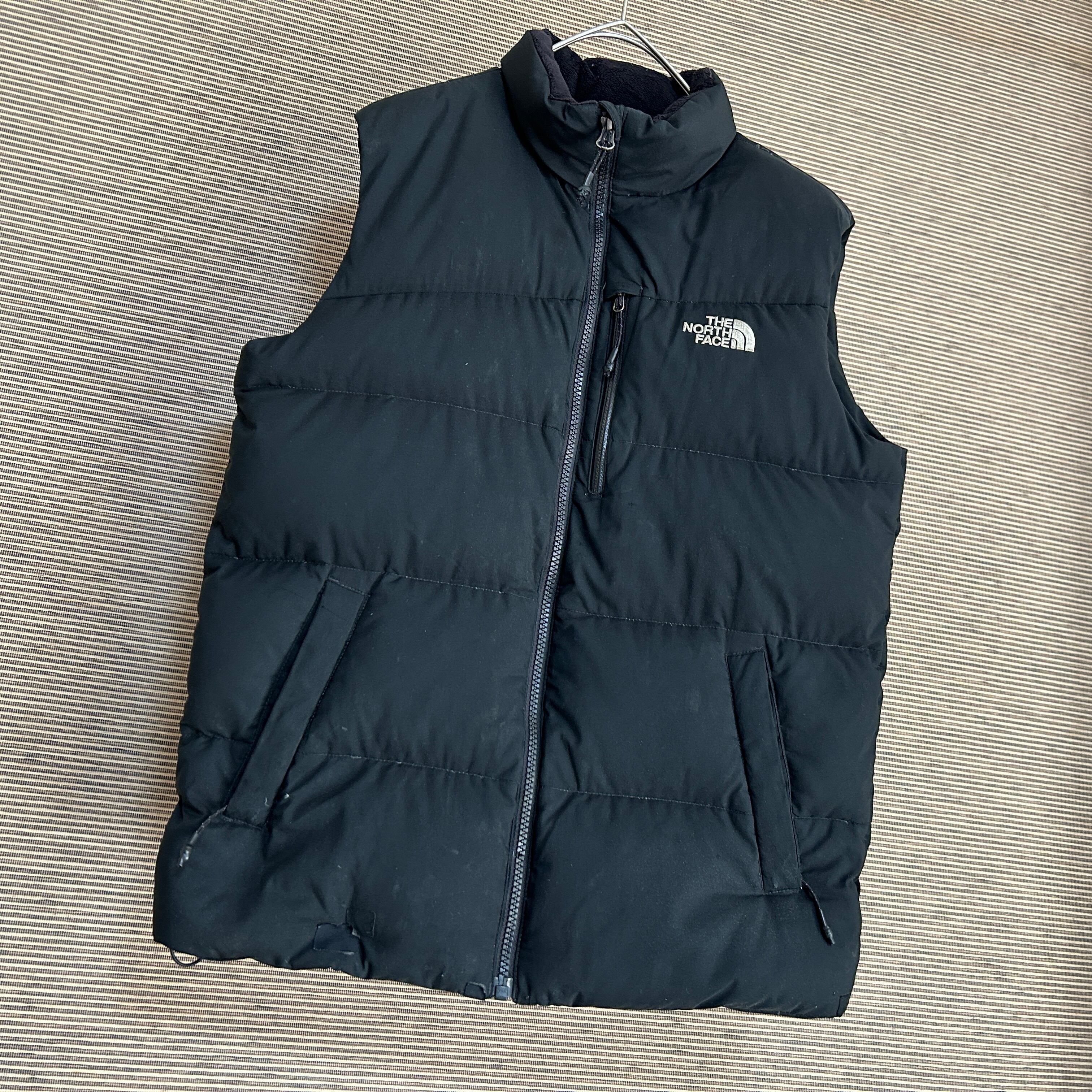 ノースフェイス ダウンベスト 子供150 黒ブラック 刺繍 キッズG1 古着 ワンポイントロゴ 人気 訳あり激安