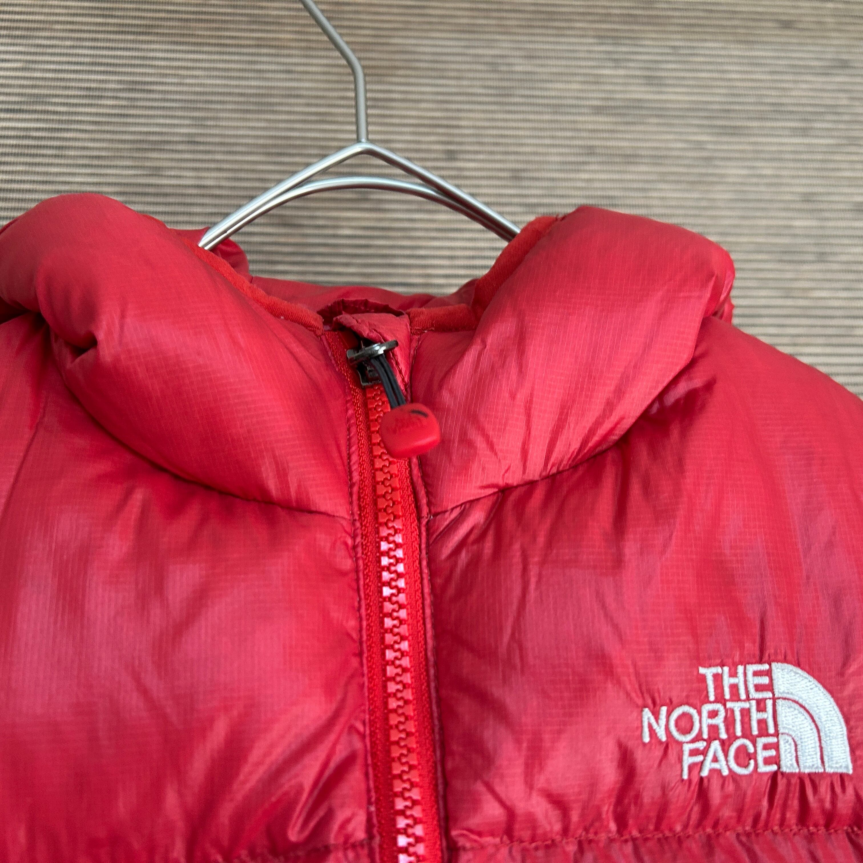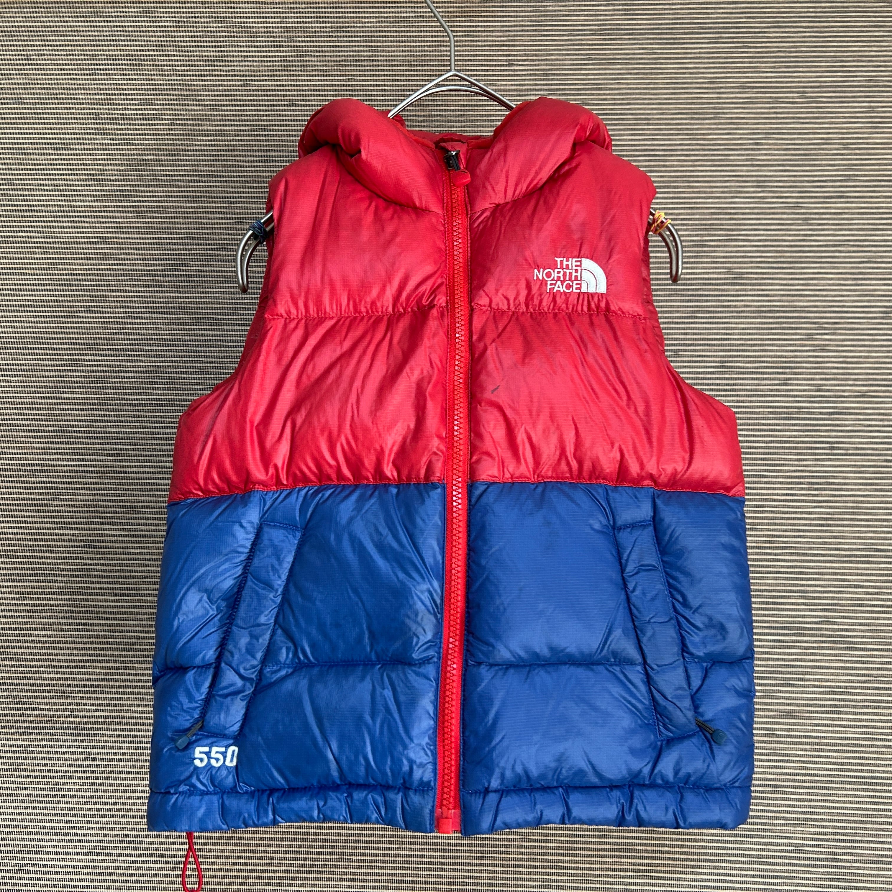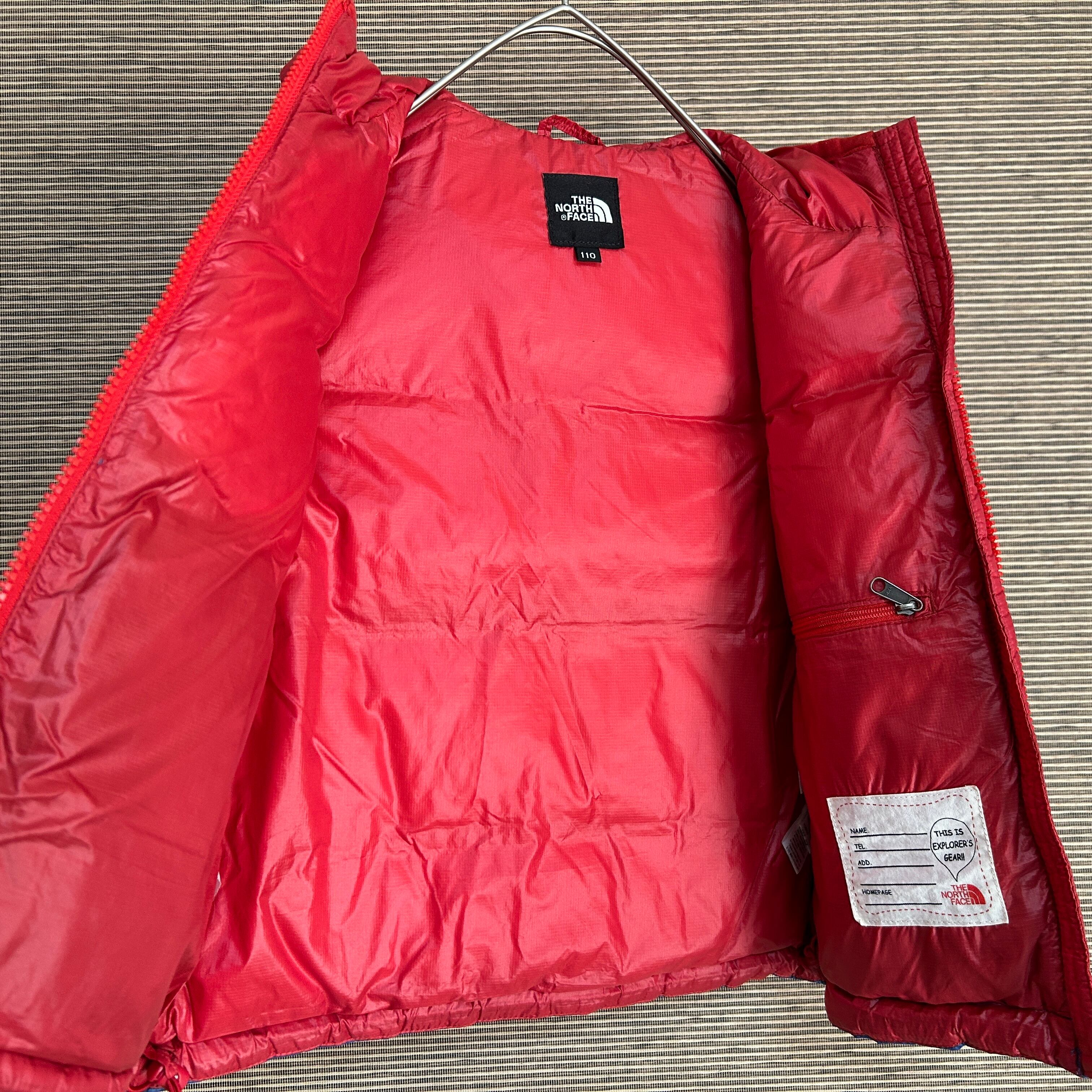 ノースフェイス ダウンベスト 子供110キッズ 550赤ネイビー 刺繍G 古着 ワンポイントロゴ