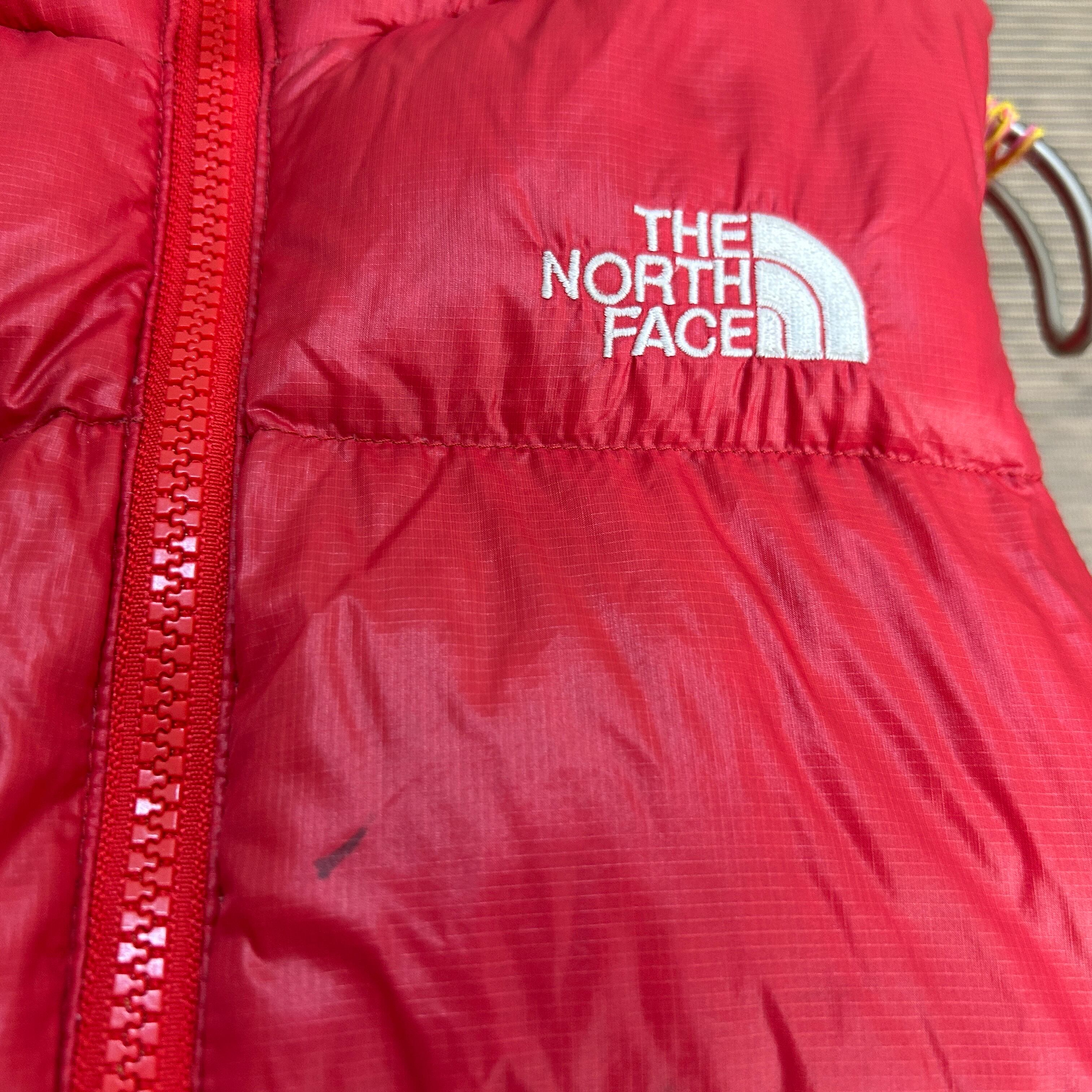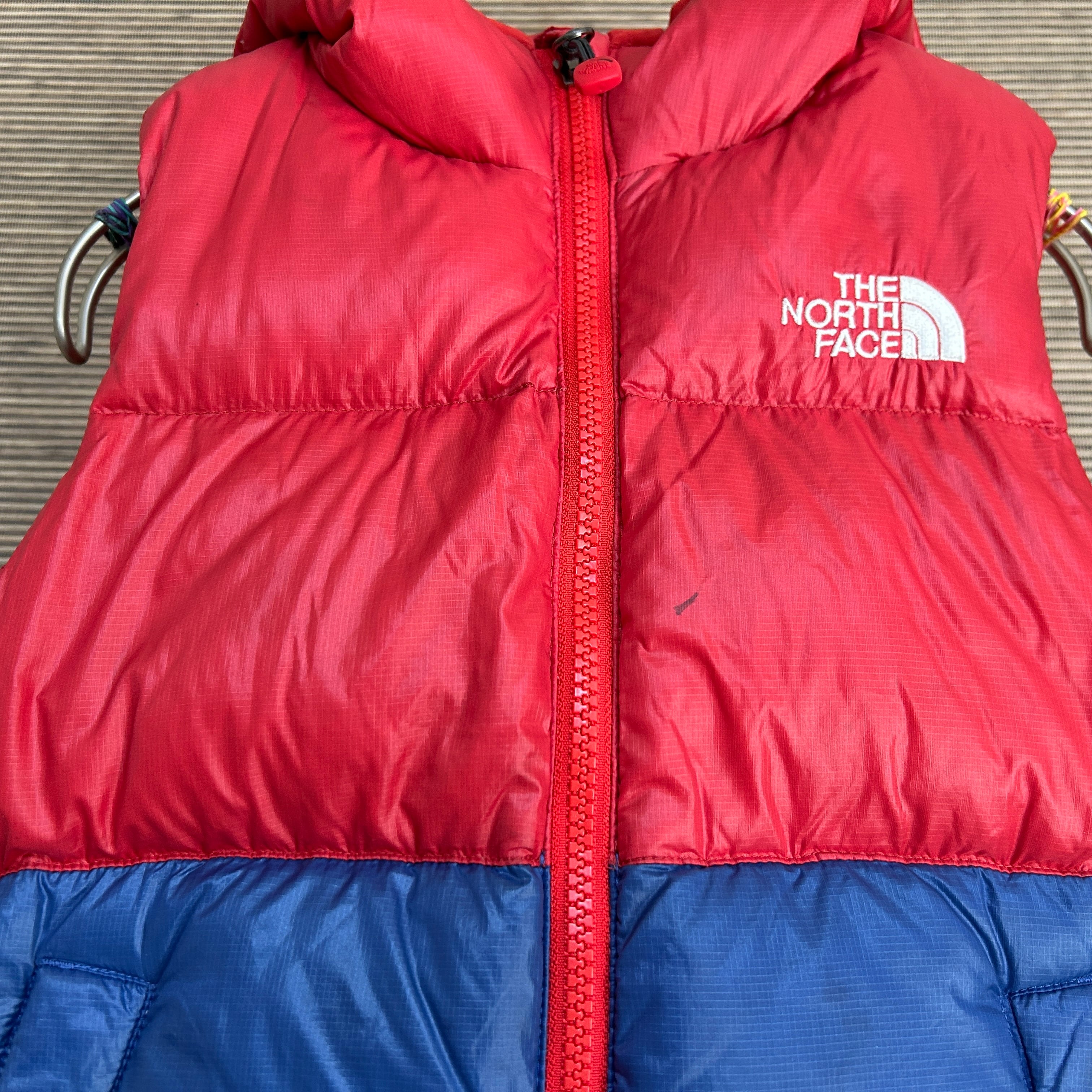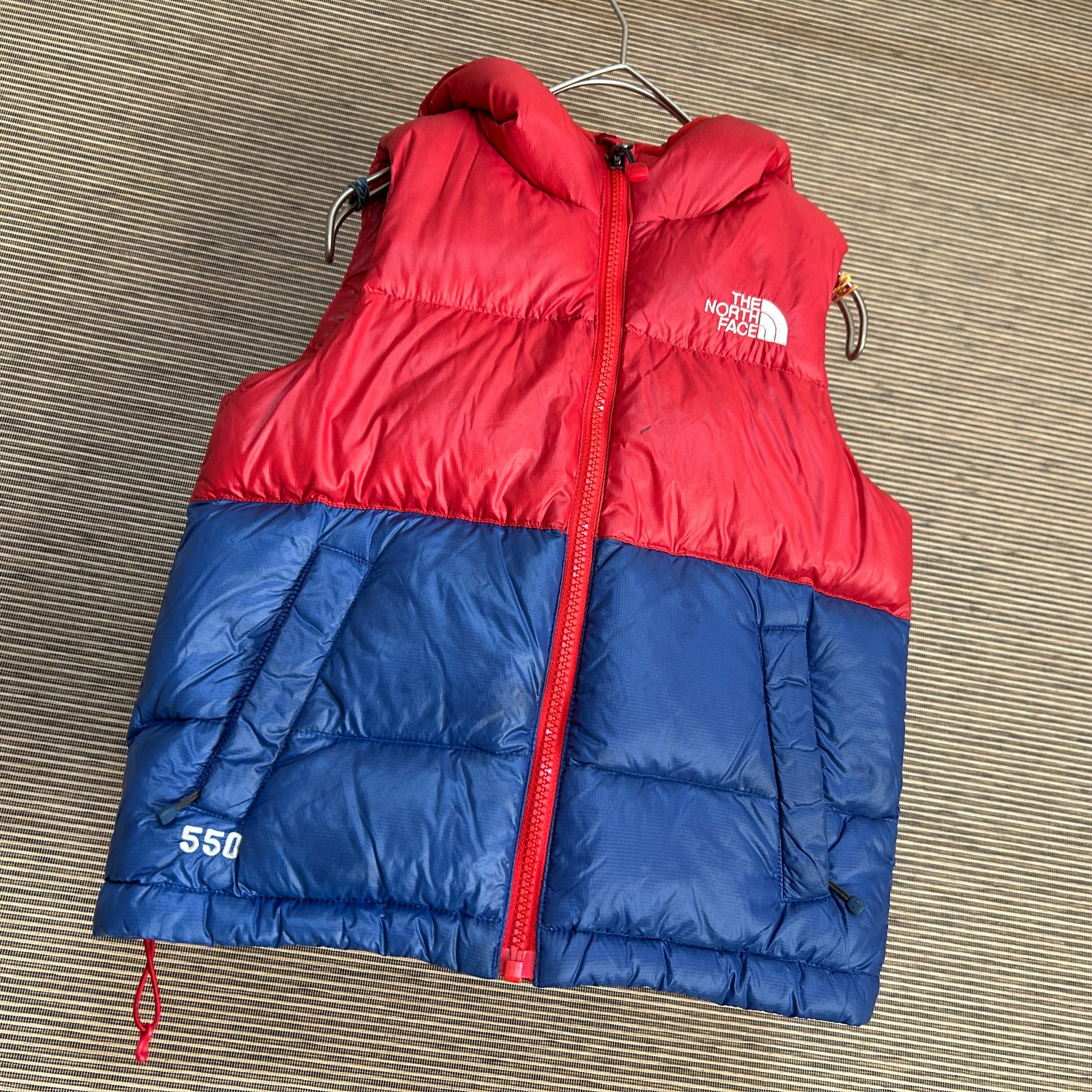 ノースフェイス ダウンベスト 子供110キッズ 550赤ネイビー 刺繍G 古着 ワンポイントロゴ