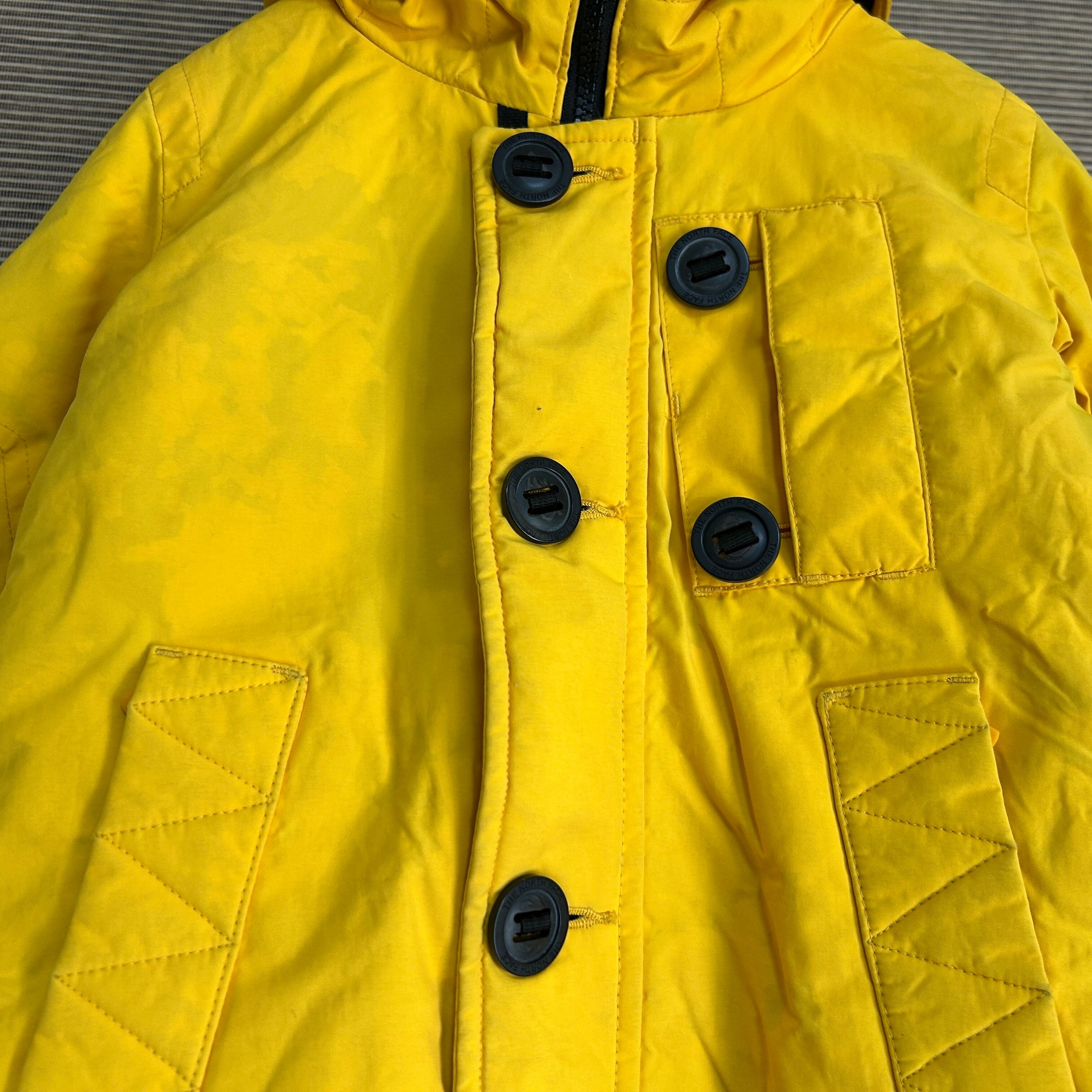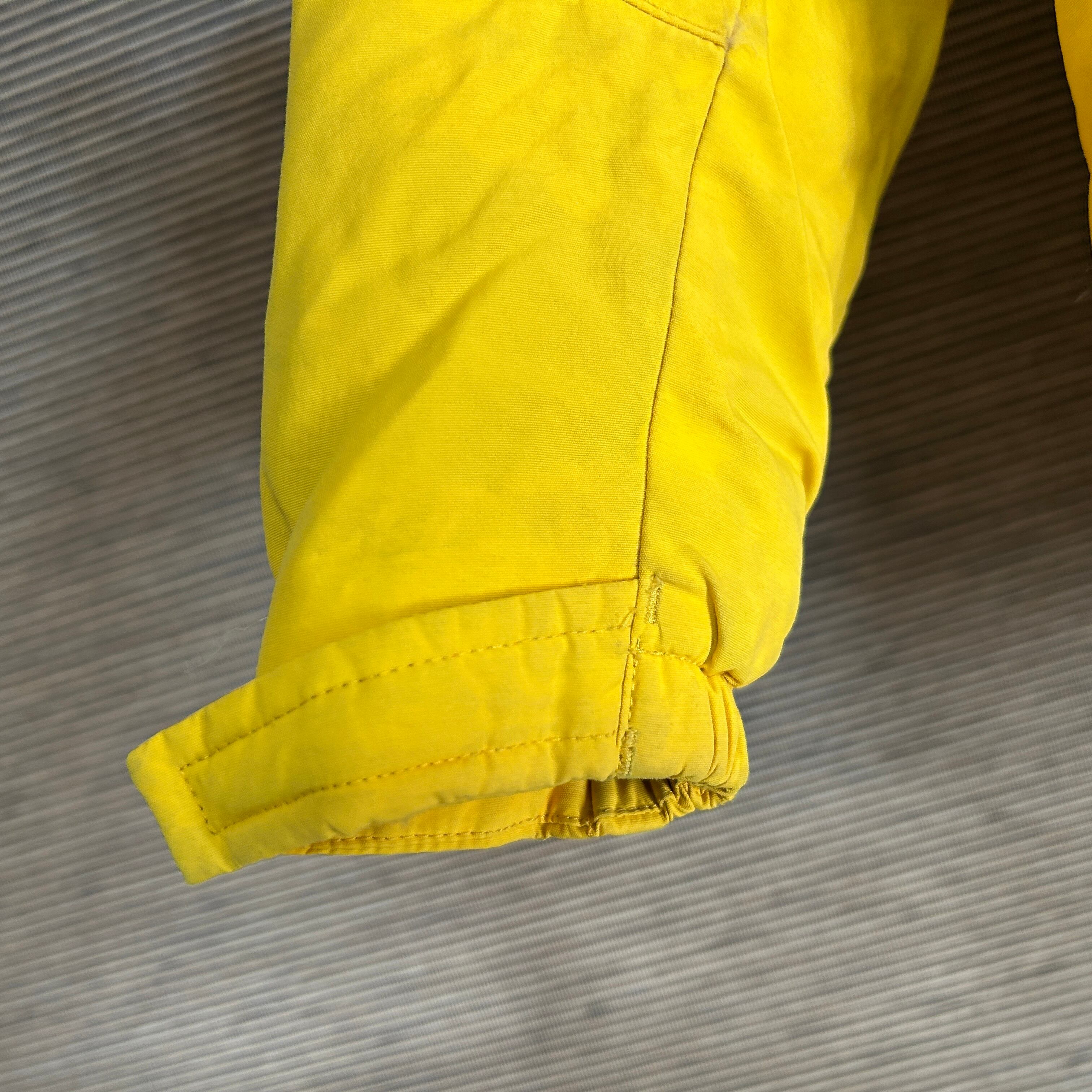 ノースフェイス ダウンジャケット 黄色 子供100キッズ ハイベント 刺繍 G 古着 ワンポイントロゴ 肩ロゴ 訳あり激安