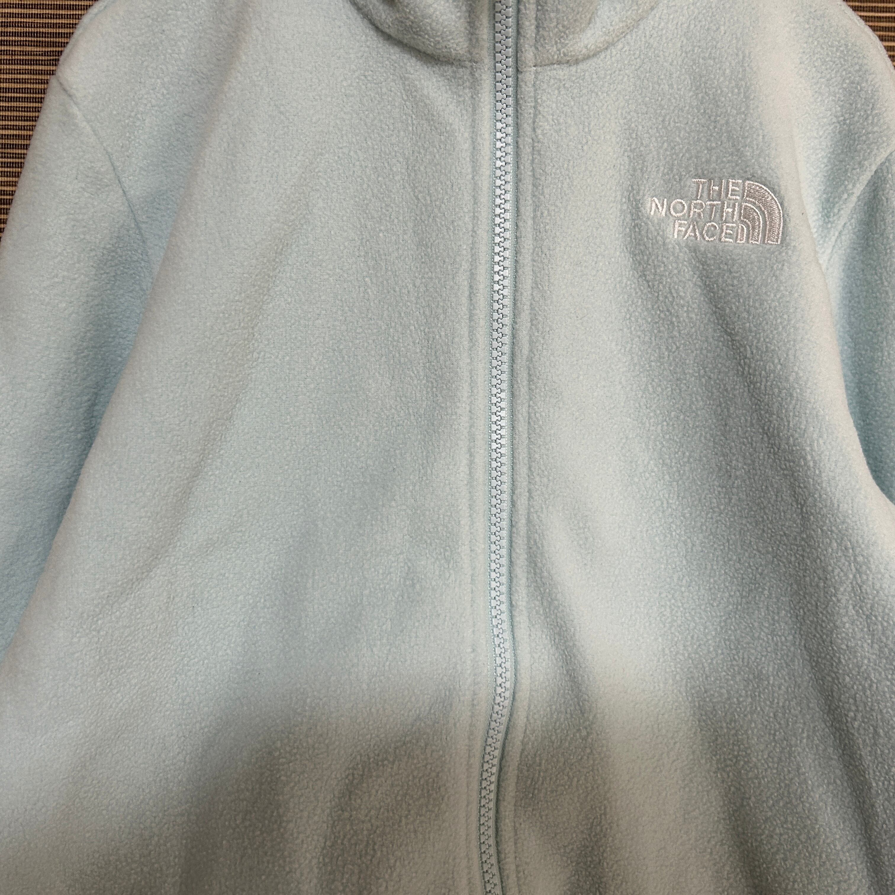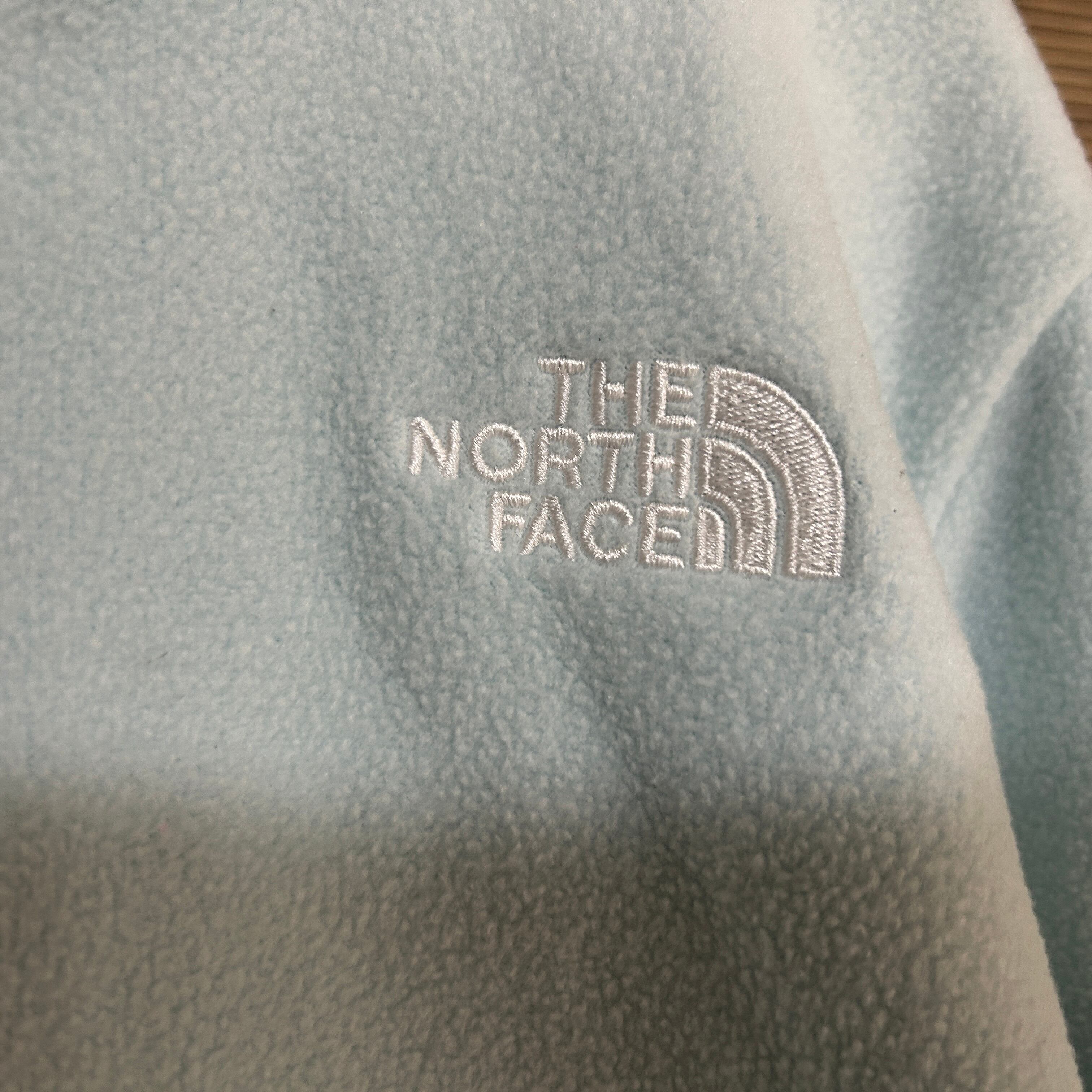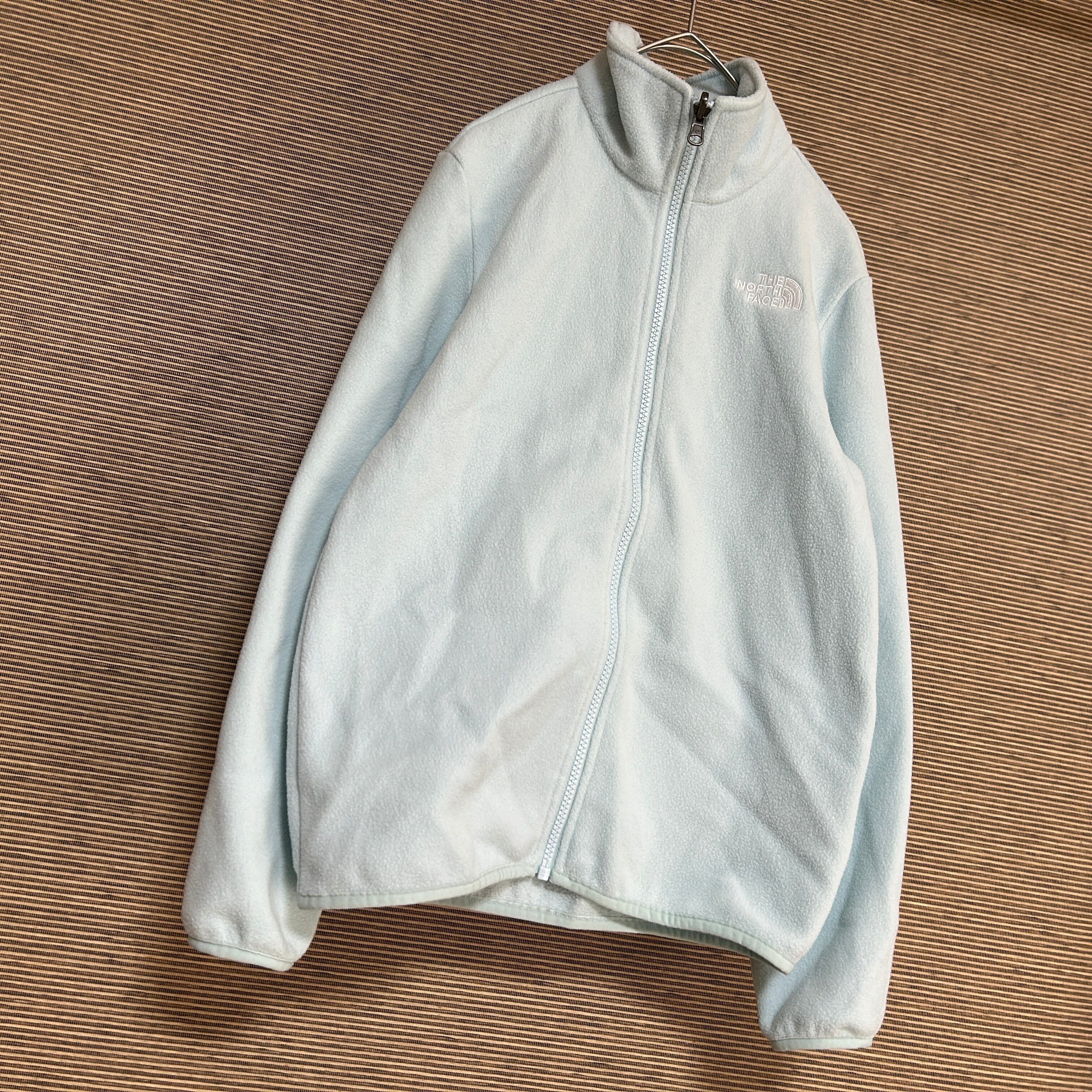 ノースフェイス US規格フリースジャケット 子供140キッズ 水色刺繍F1 古着 ワンポイントロゴ
