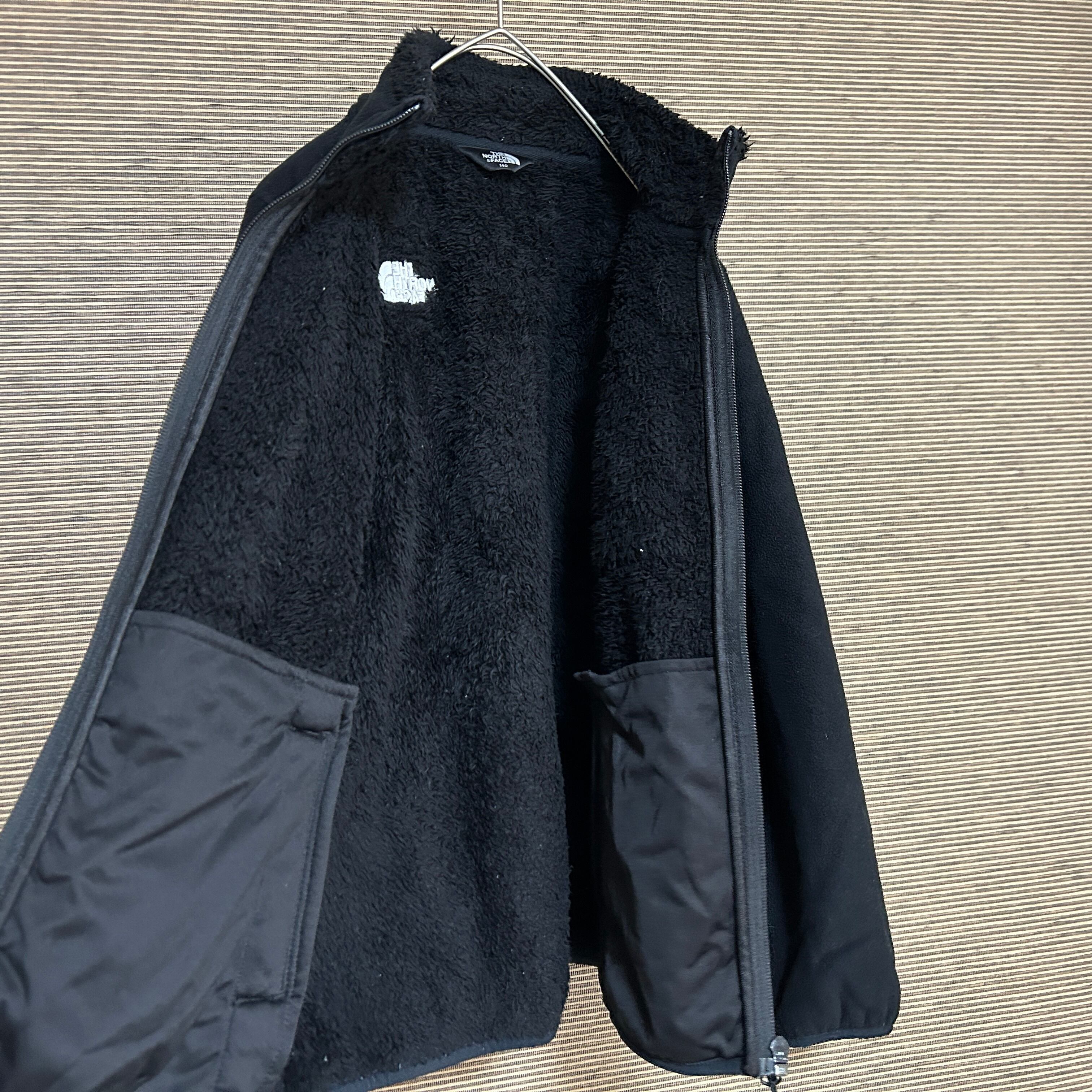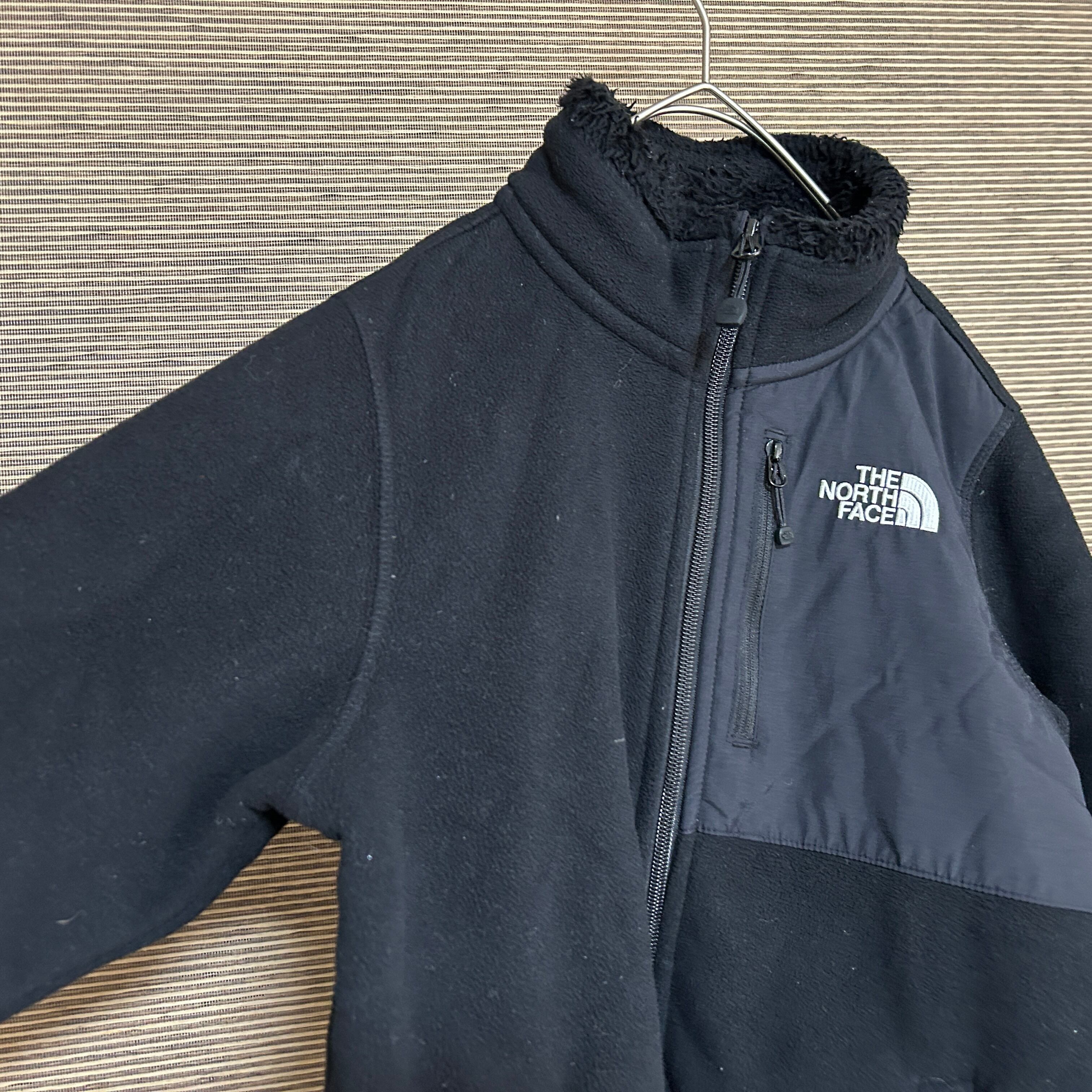 ノースフェイス フリースジャケット 黒 子供140デナリ刺繍キッズブラックF1 古着 ワンポイントロゴ 人気