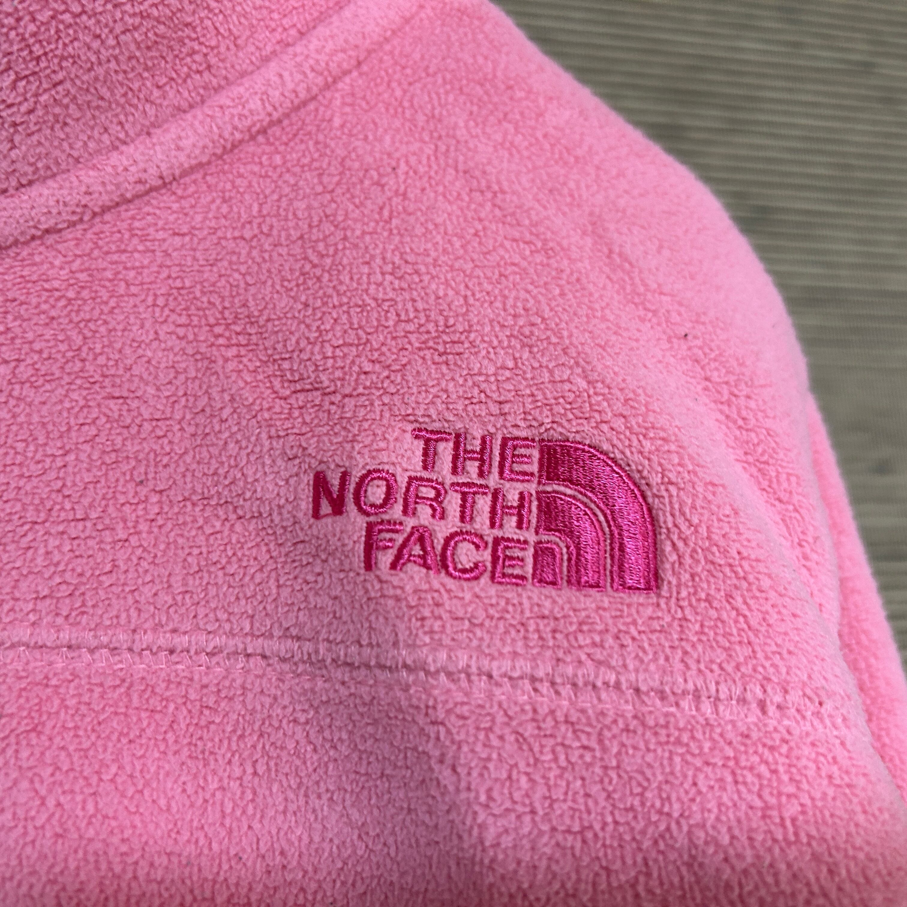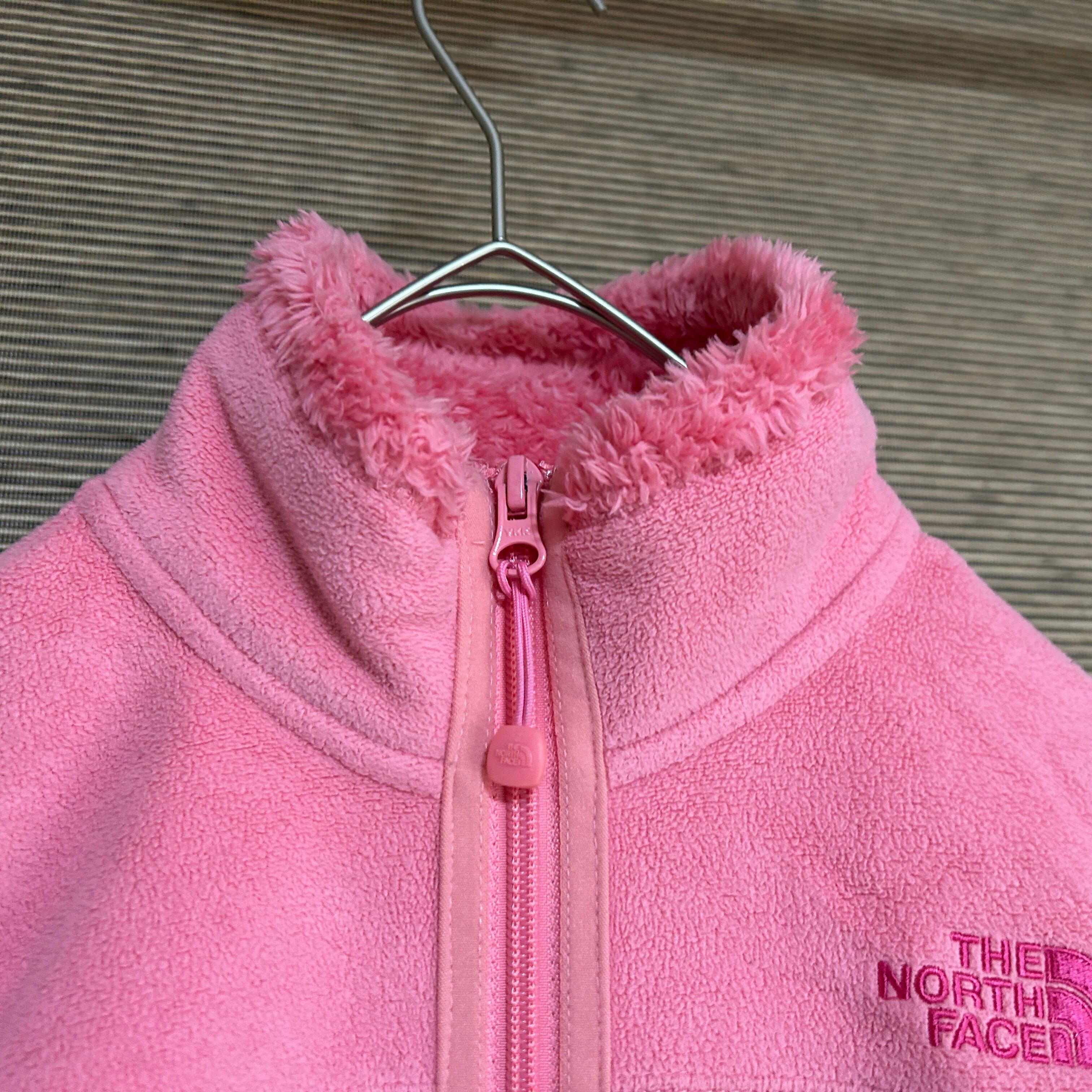ノースフェイス フリースジャケット ピンク 子供140 刺繍 キッズ F1 古着 ワンポイントロゴ