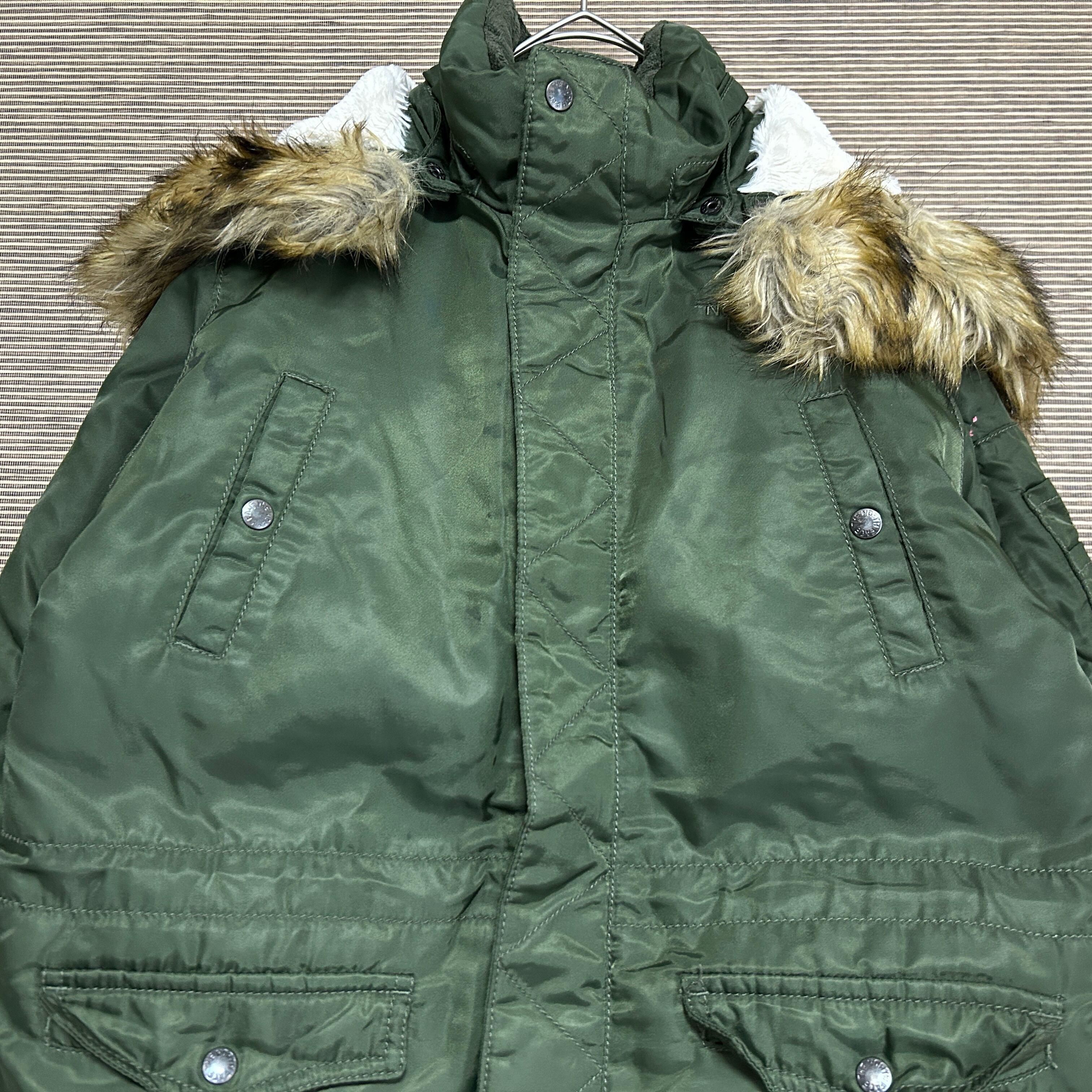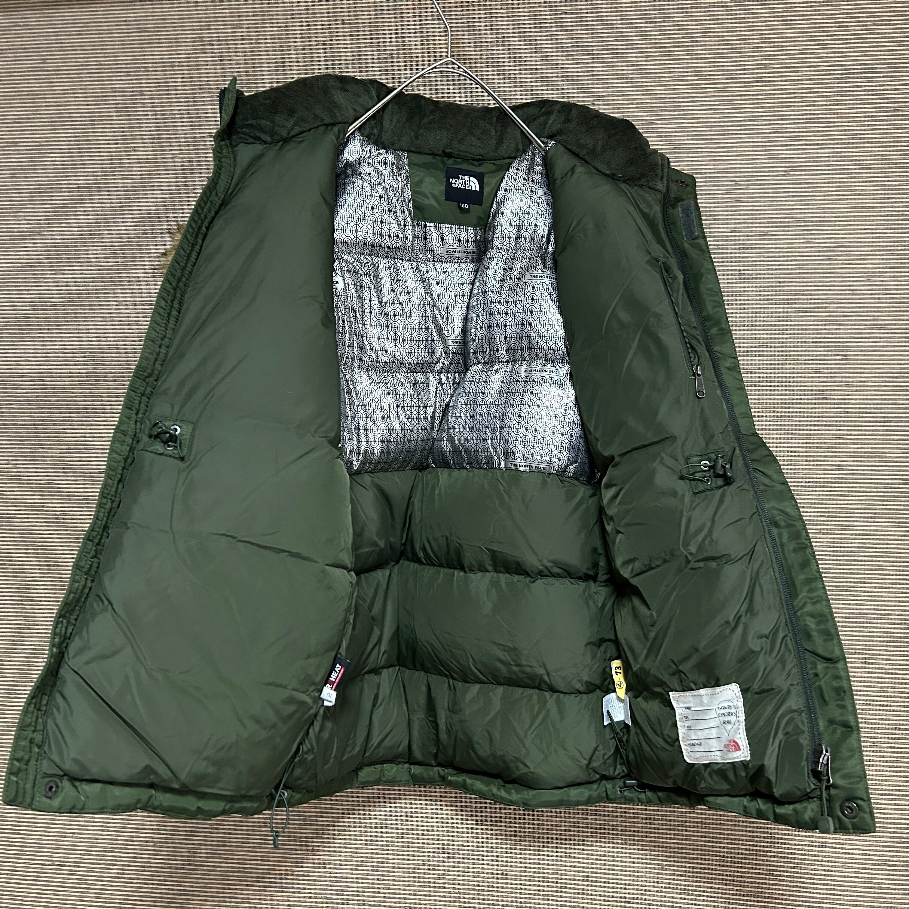 ノースフェイス ダウンジャケット フライトジャケット カーキー子供140刺繍F2 古着 キッズ ワンポイントロゴ 激レア 人気