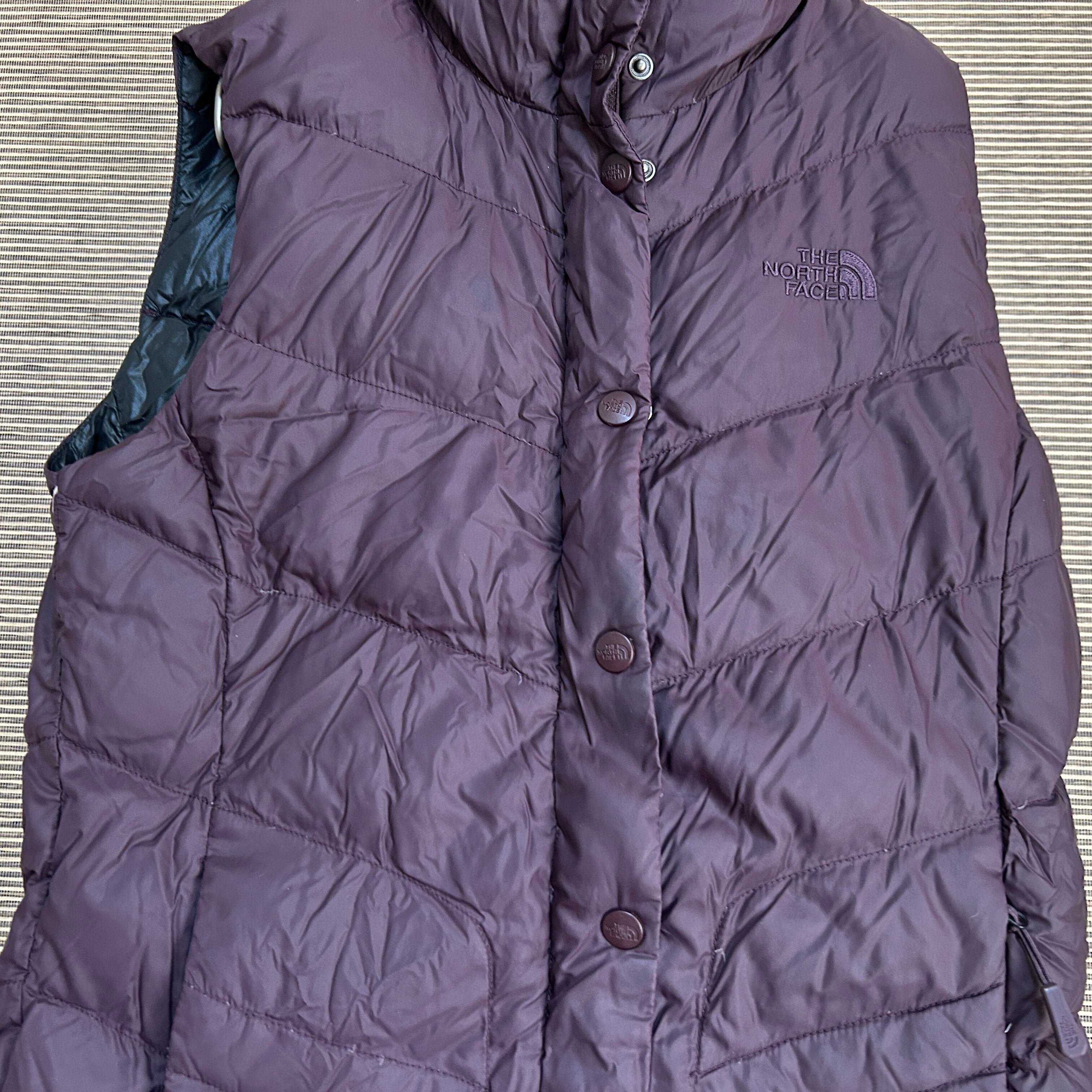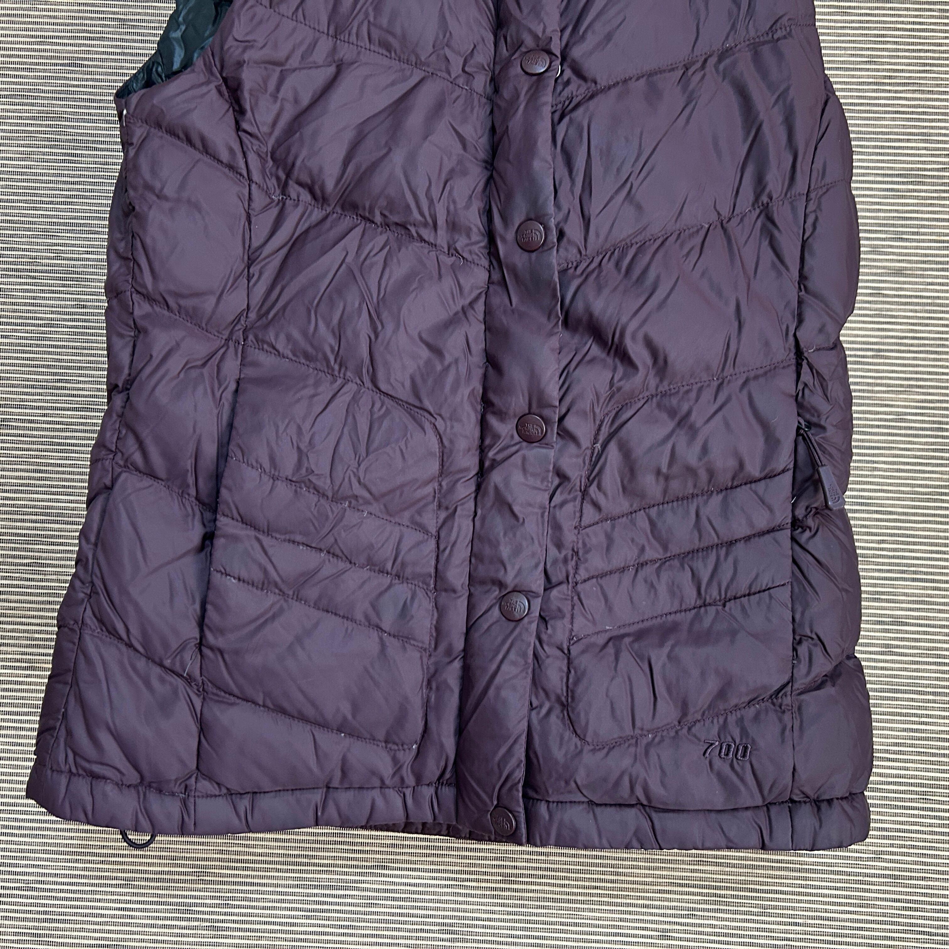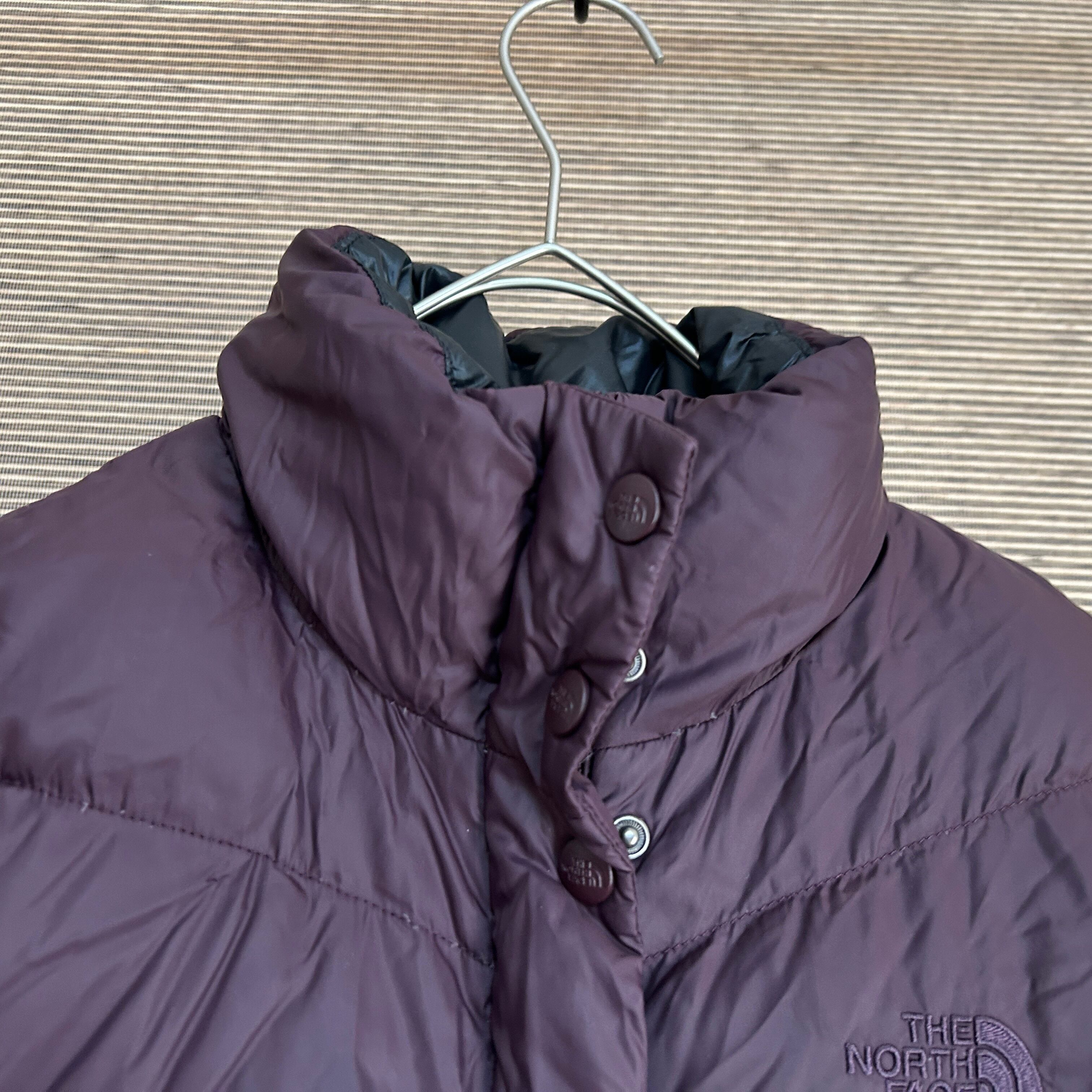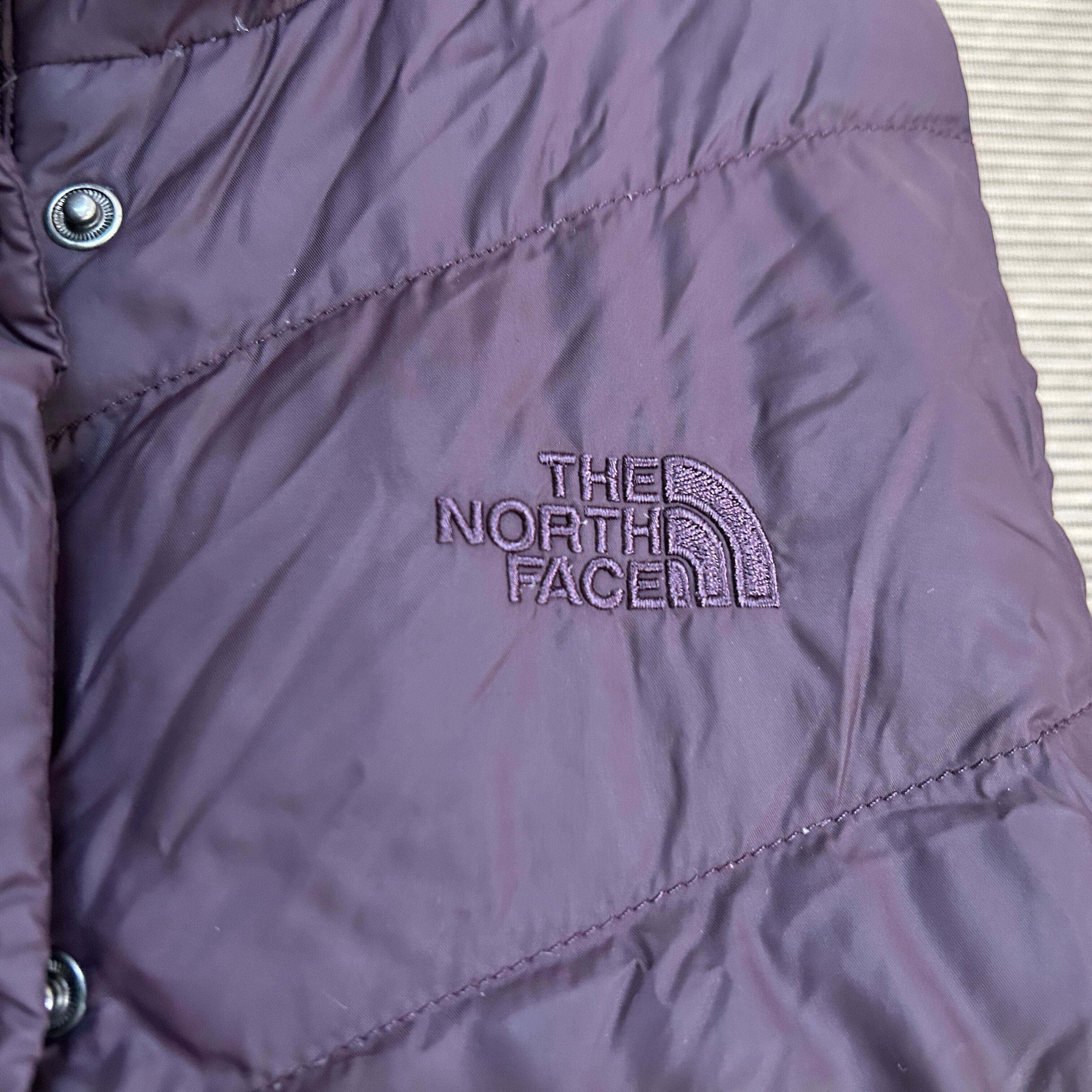 ノースフェイス ダウンベスト 紫紫蘇色 刺繍 US規格 ワンポイントE2 古着 レディース 訳あり激安 人気 700fil