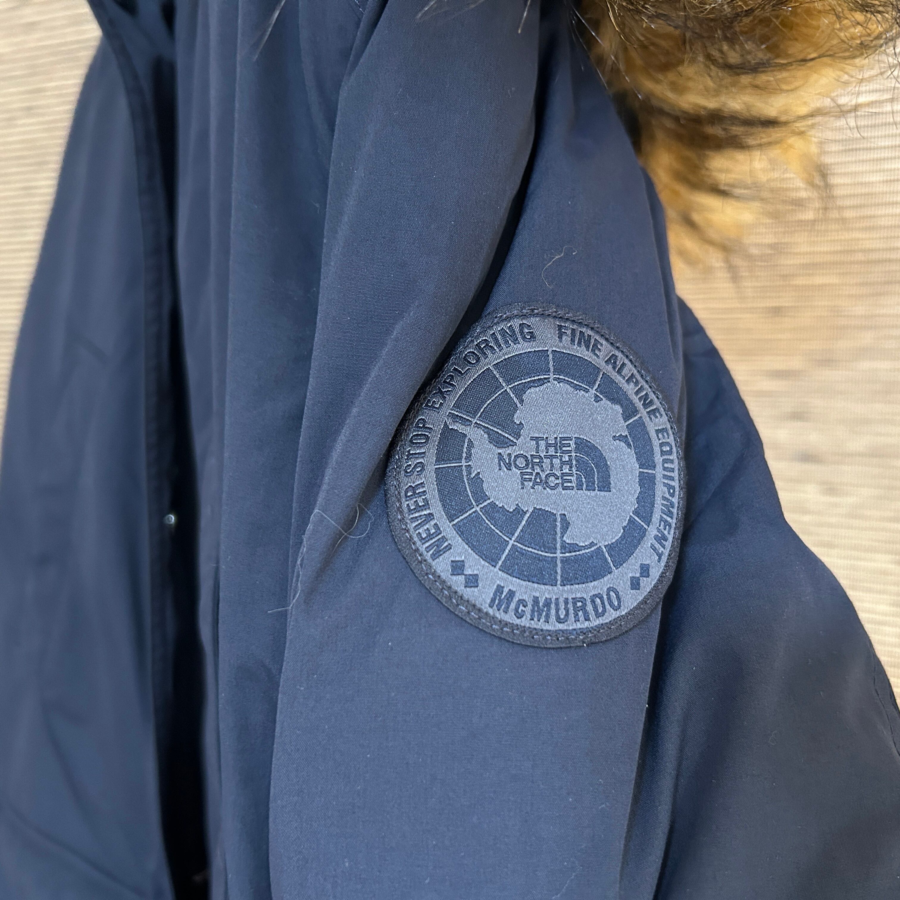 ノースフェイス ダウンジャケット ネイビー マクマード モッズ 肩ロゴ F4 古着 ワンポイントロゴレディース 人気