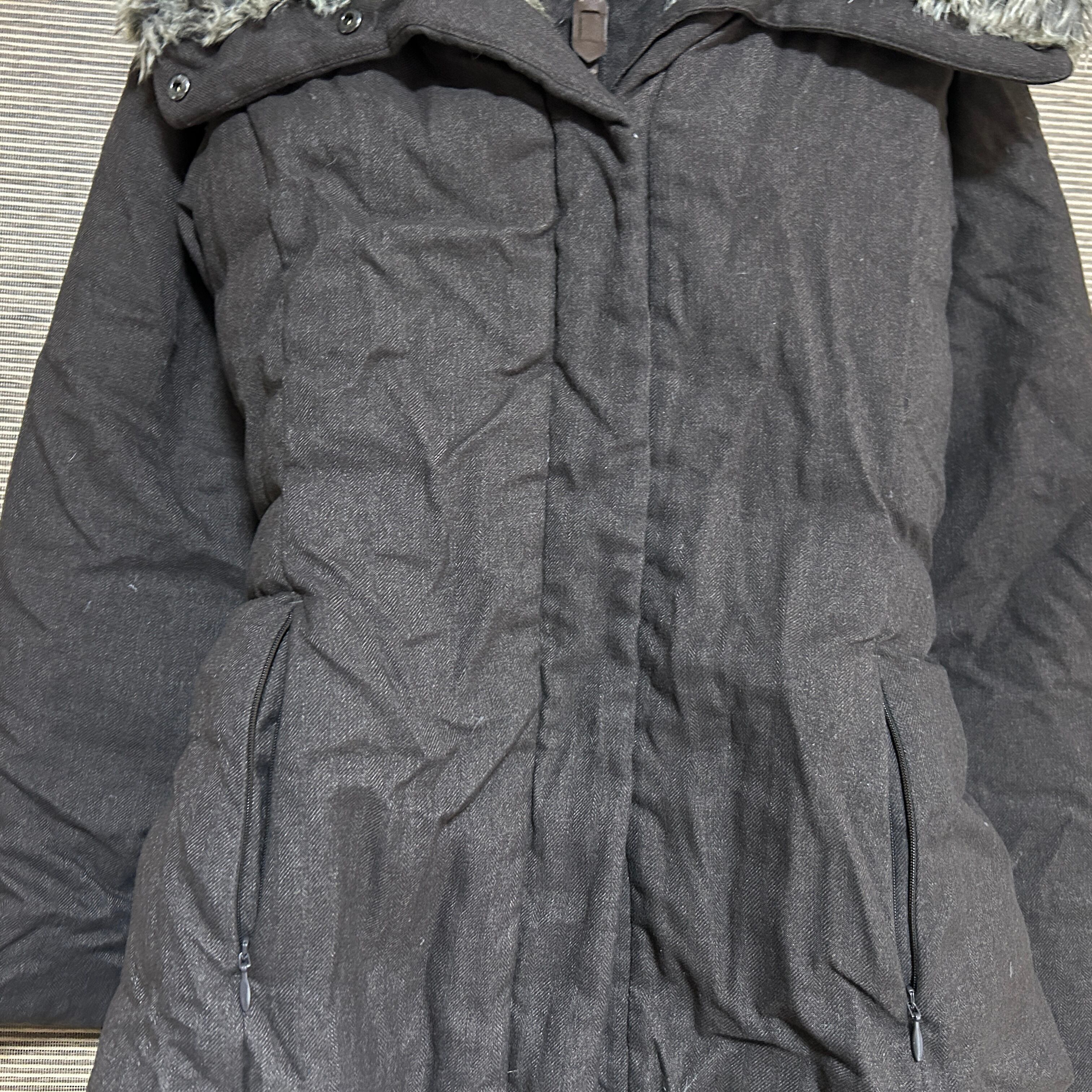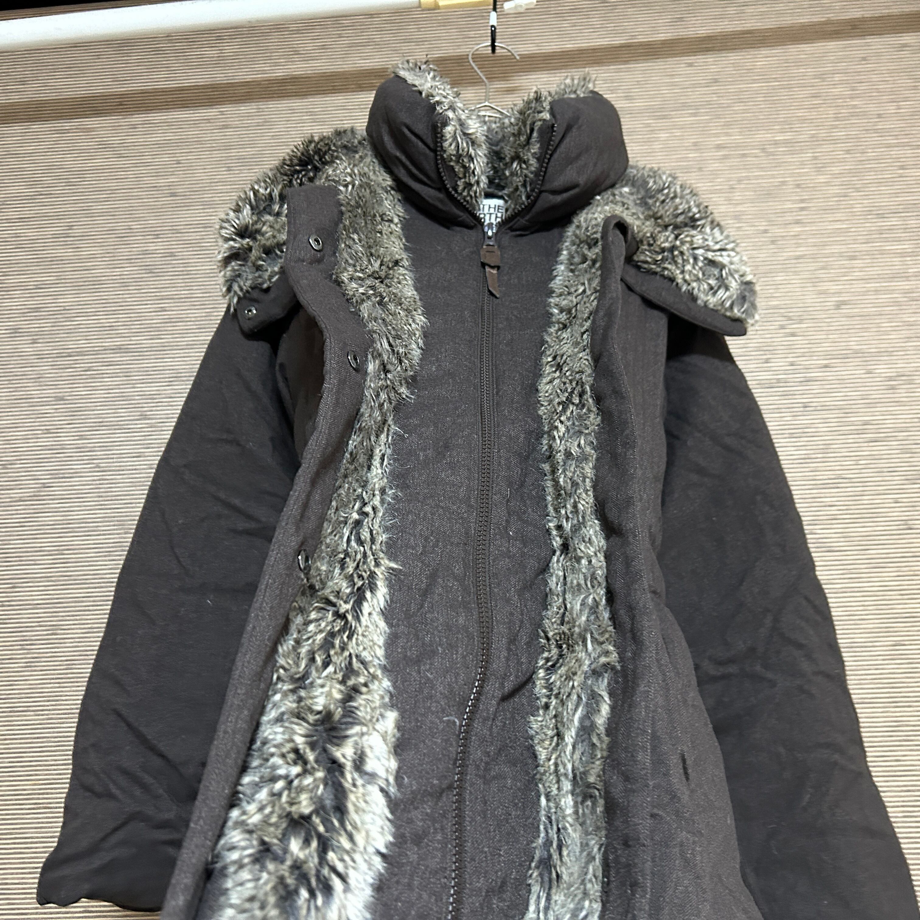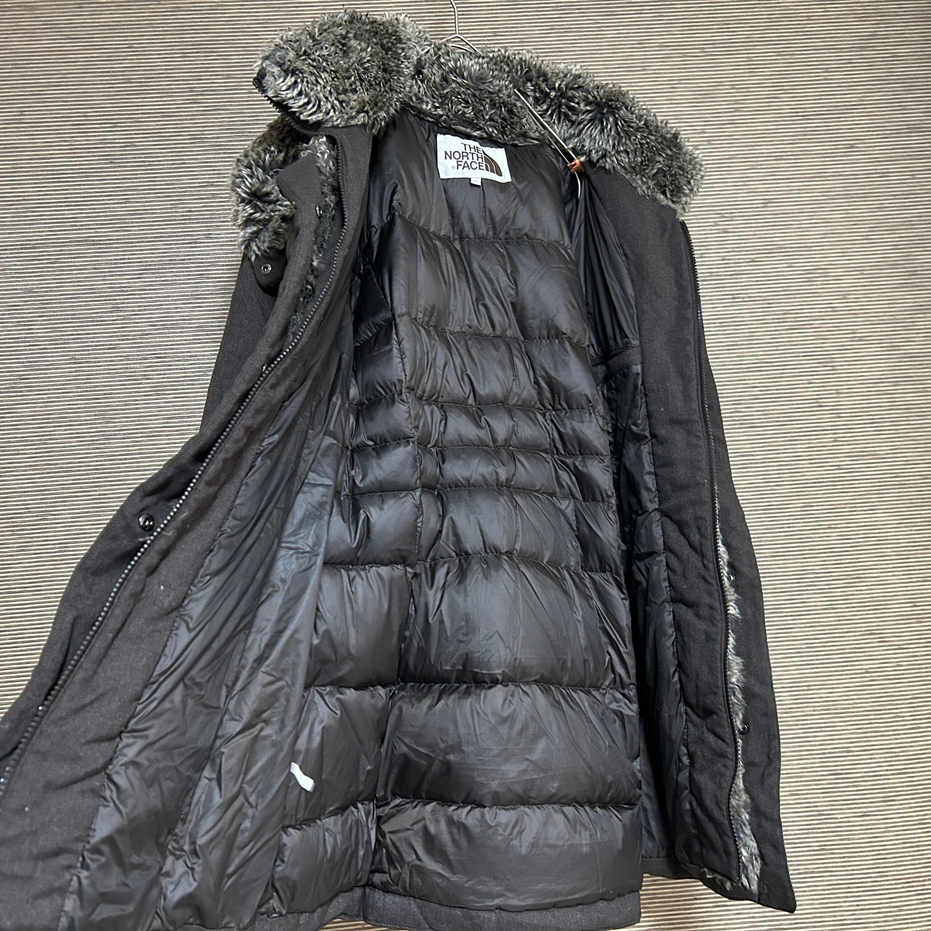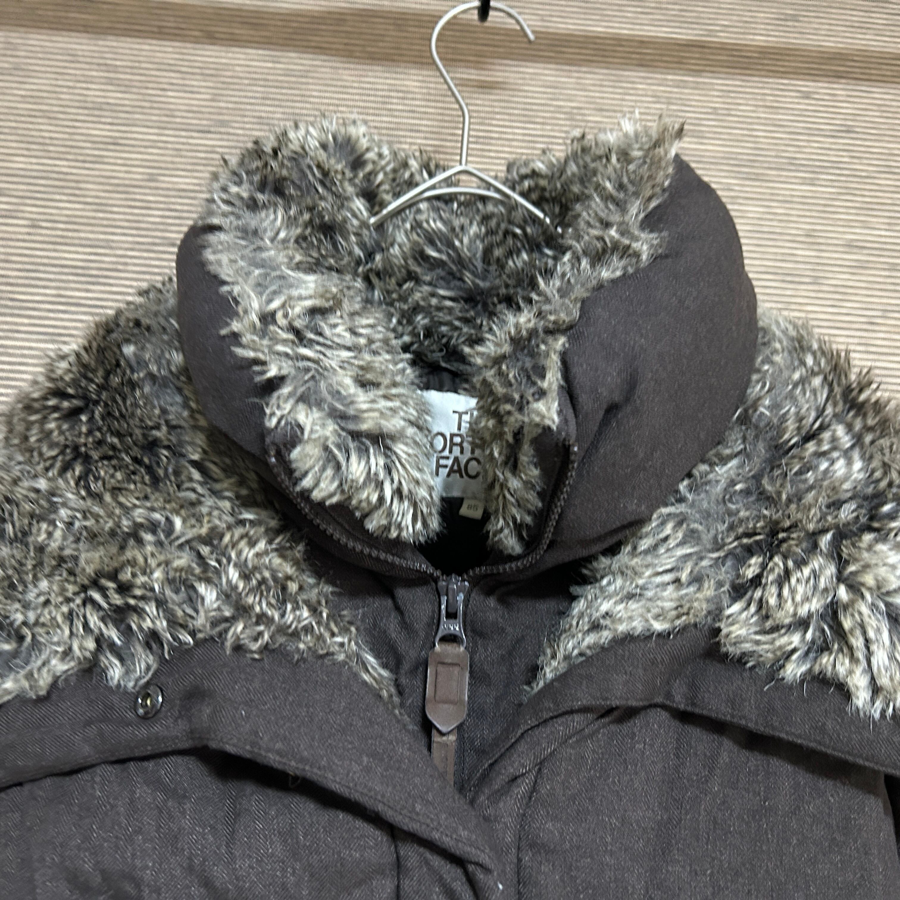 ノースフェイス ダウンジャケット コート ファー ダークブラウン ベルト付きE4 古着 ワンポイントロゴ レディース 韓国限定ホワイトレーベル