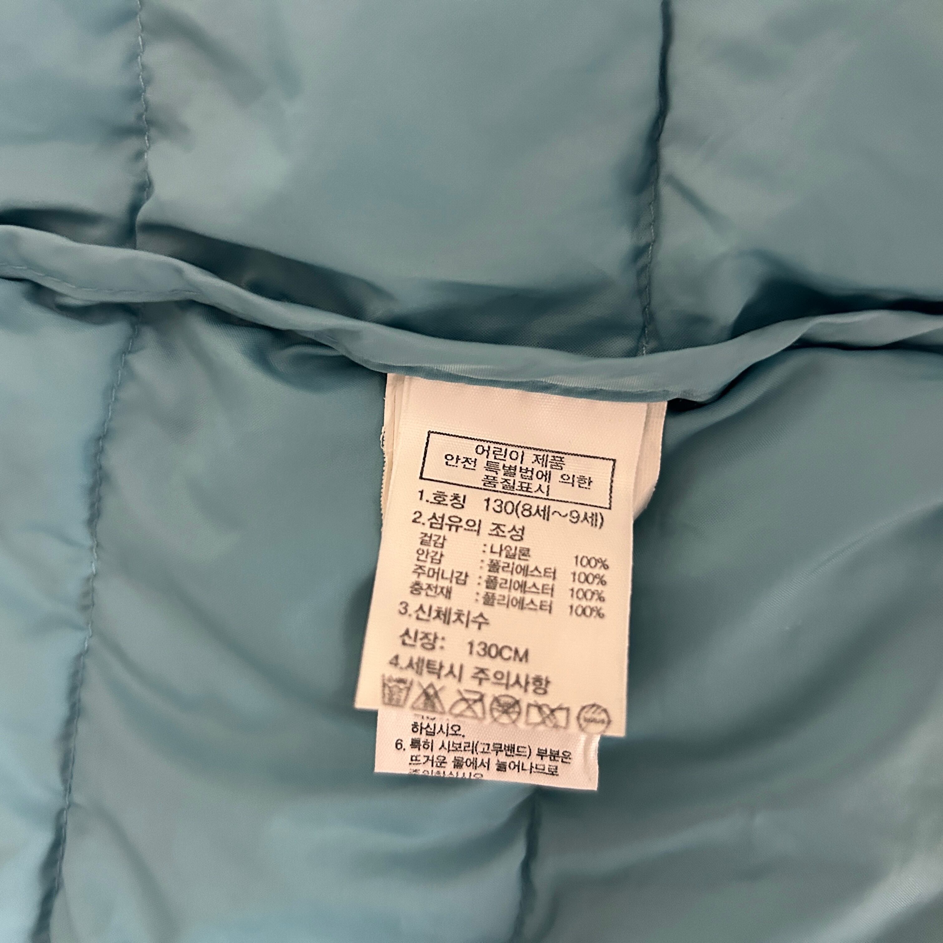 ノースフェイス TBALLロングダウンコート 水色 子供130キッズ E1 古着 スカイブルー 軽量