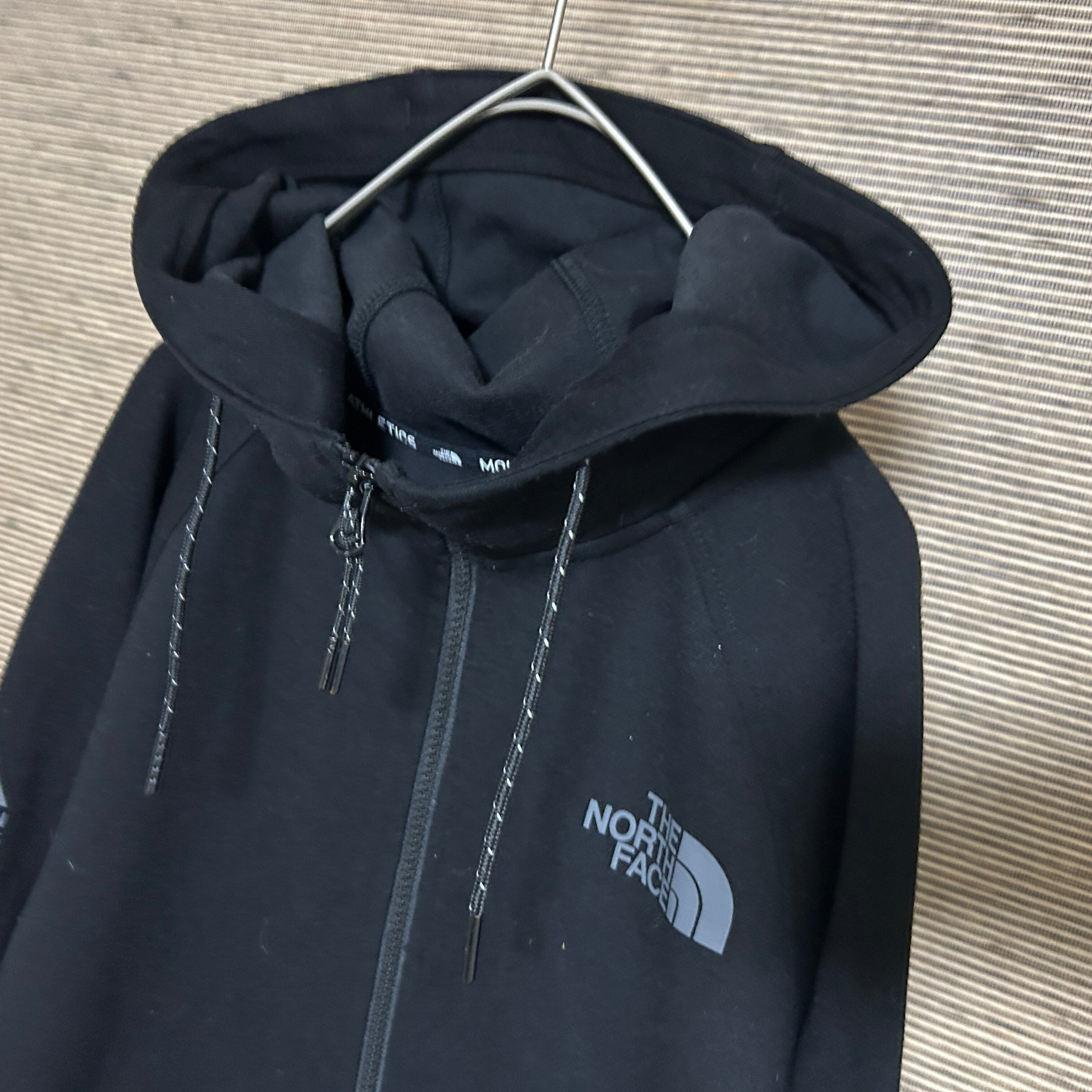ノースフェイス パーカー 黒ブラック ワンポイント肩ロゴ ジャージC2 古着 袖ロゴスリーブロ トラックジャケット
