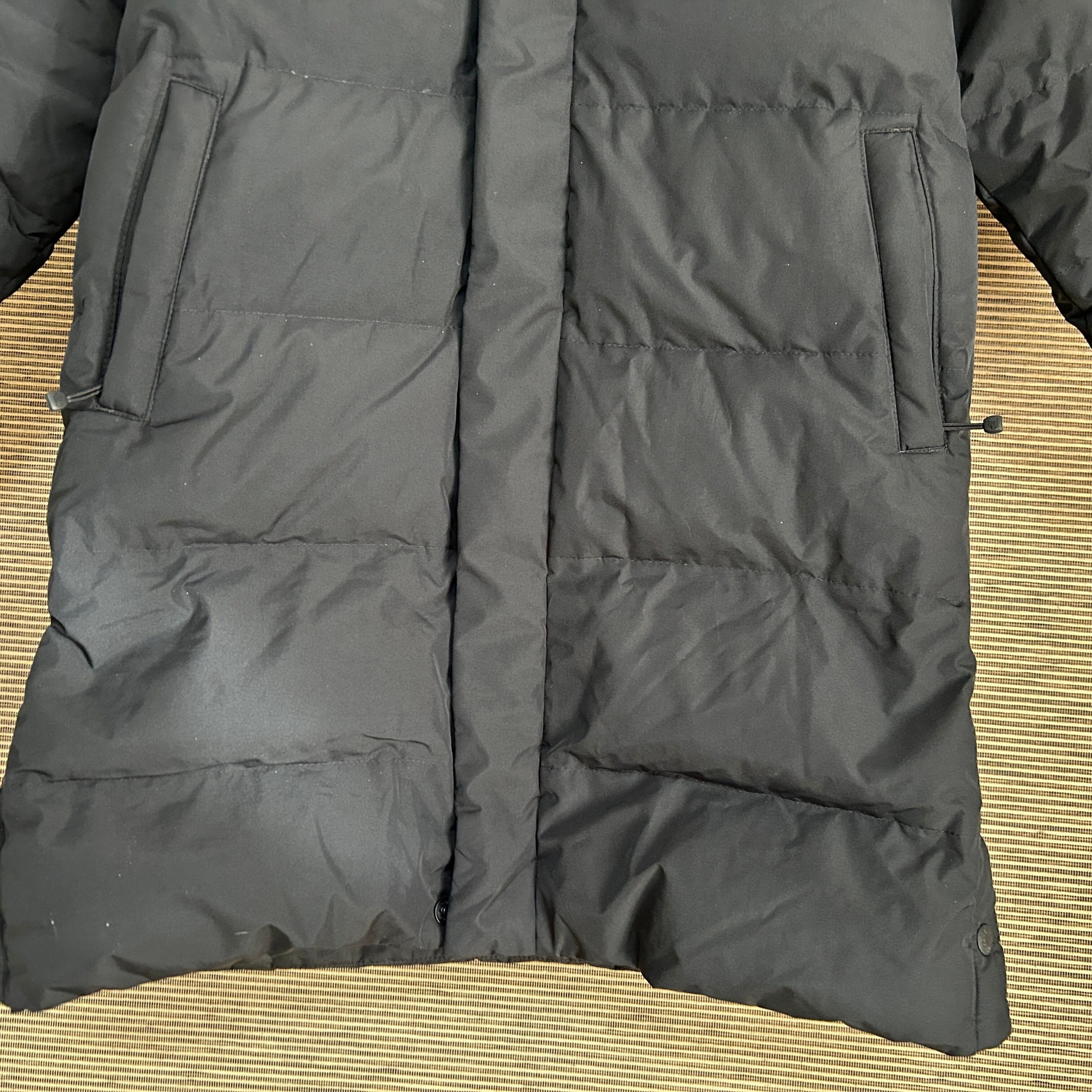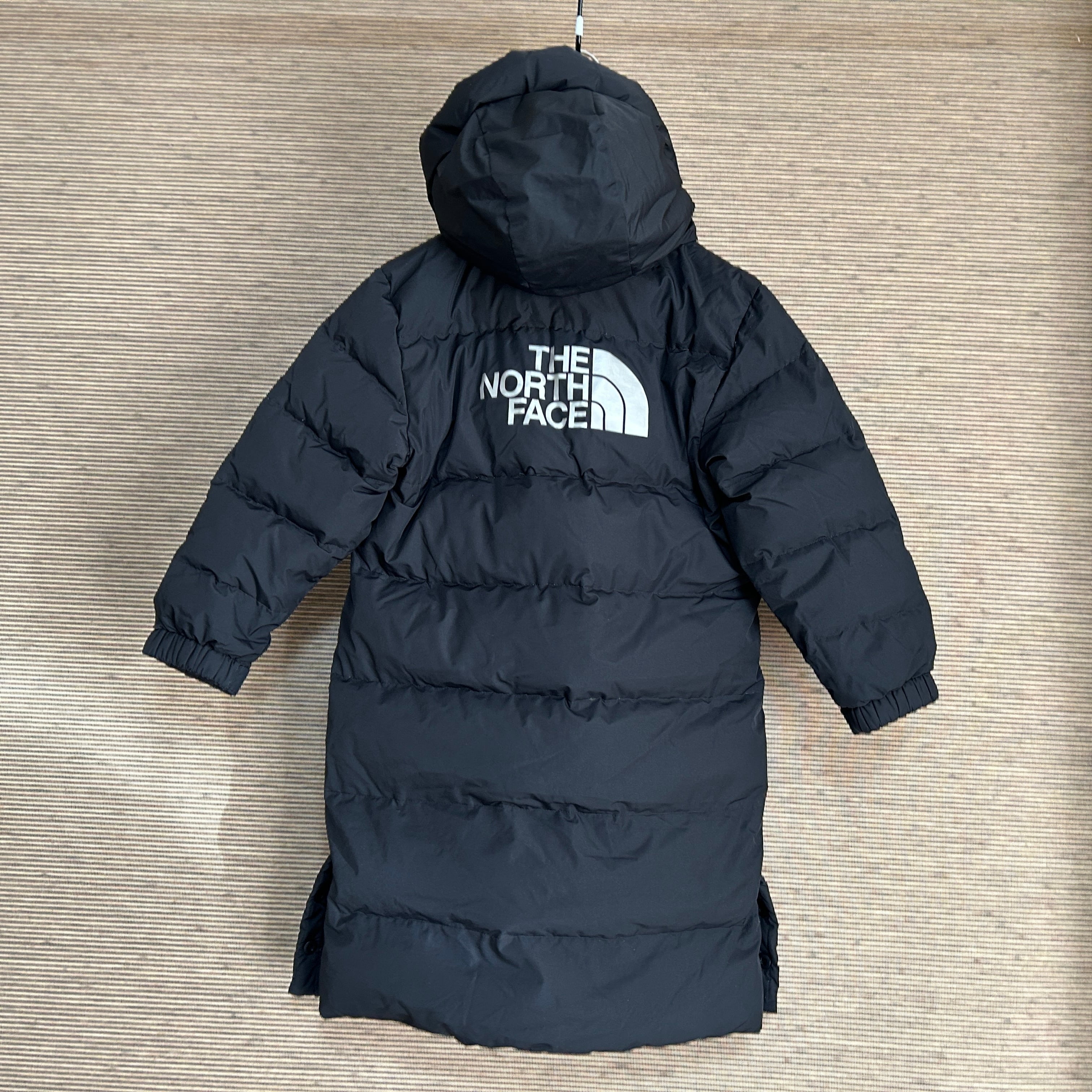 ノースフェイス ロングダウン ベンチコート 黒 子供110キッズ デカロゴE2 古着 ワンポイントロゴ ビッグロゴ ブラック 人気
