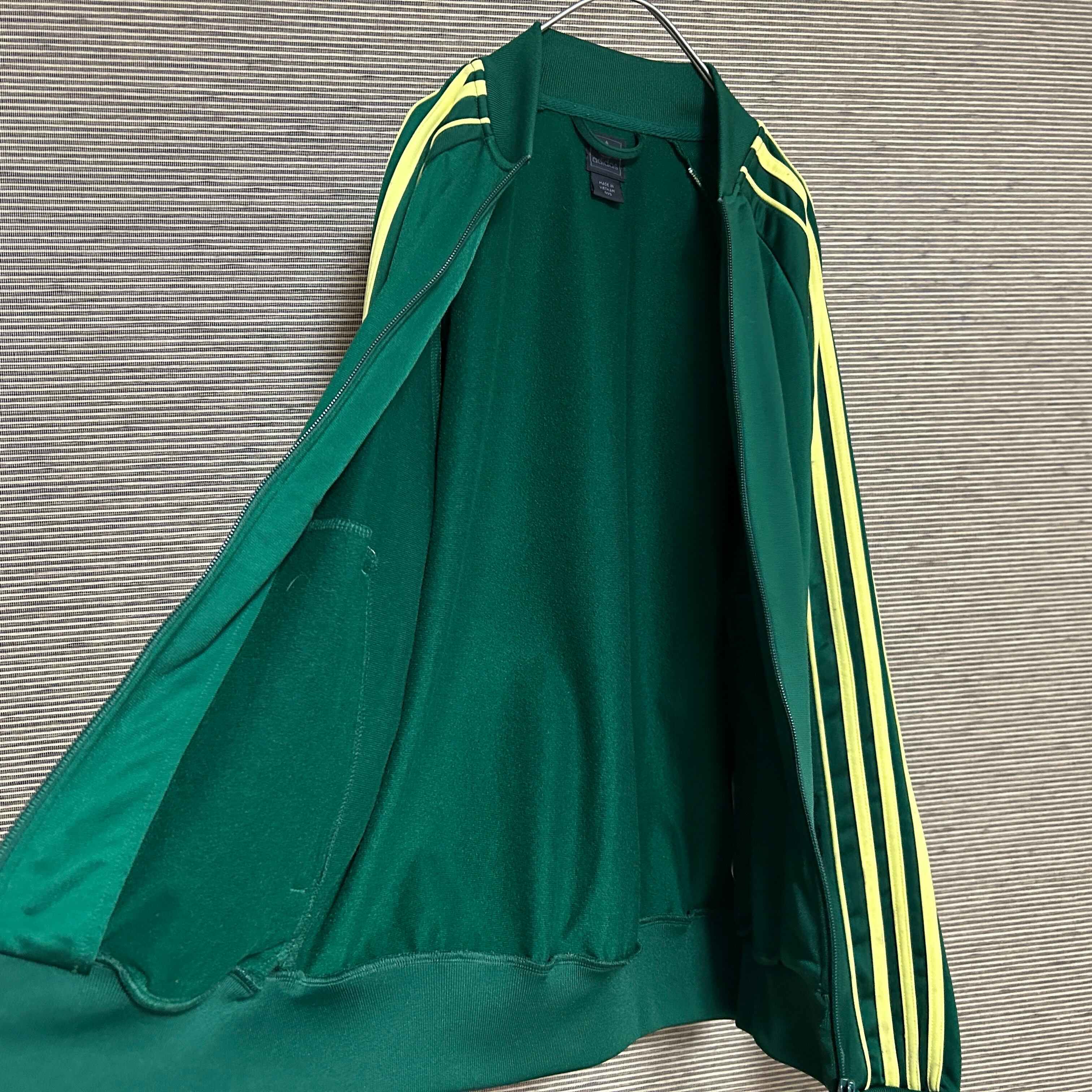 アディダス ジャージトラックジャケット モスグリーン緑 刺繍トレフォイルJ3 古着 ワンポイントロゴ ミズーリ