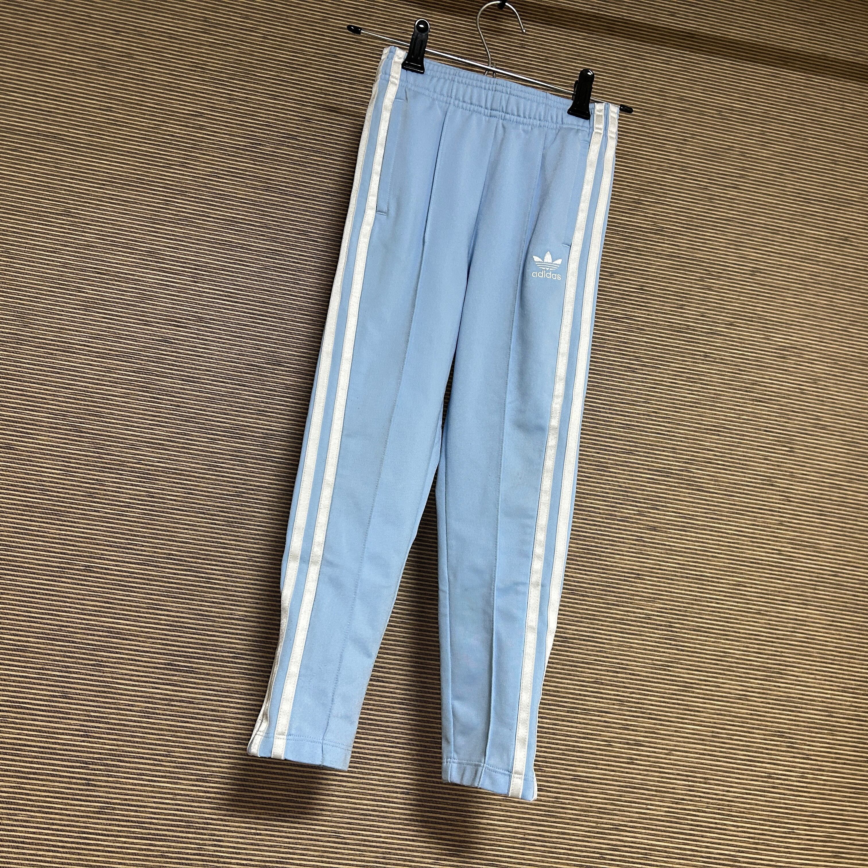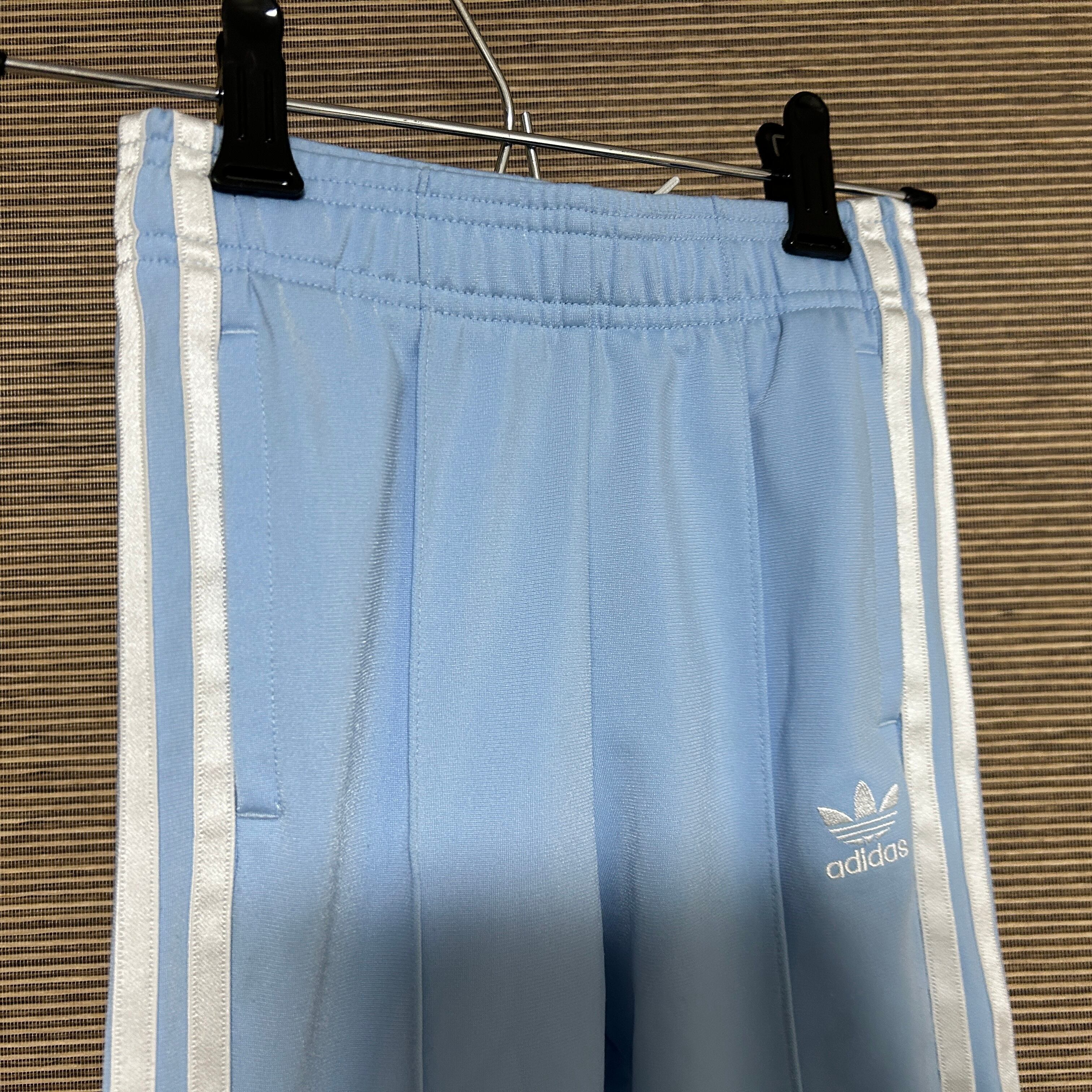 アディダス ジャージパンツトラックパンツ 子供120 SST 刺繍水色J 古着 ワンポイントロゴ トレフォイルロゴ スーパースター キッズ
