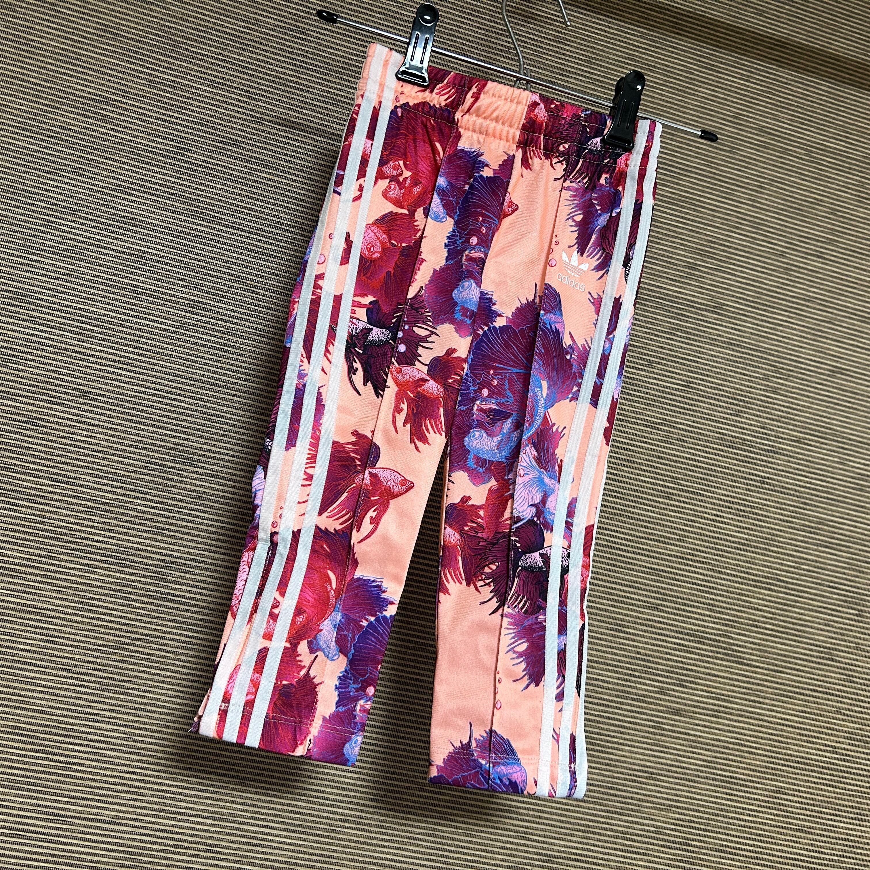 アディダス ジャージパンツトラックパンツ SST総柄 金魚ピンク子供90J 古着 キッズ ベビー 激レアデザイン