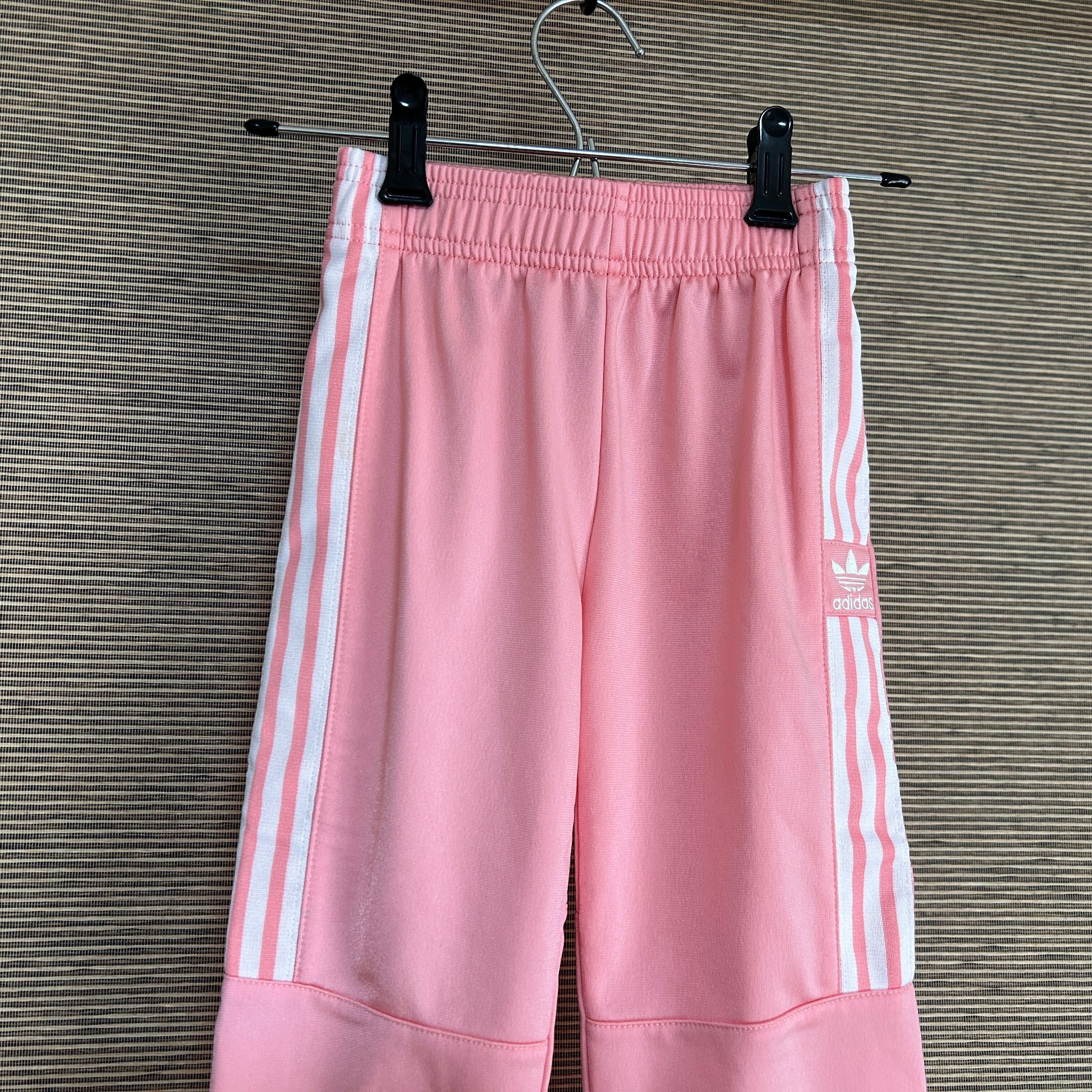 アディダス ジャージパンツトラックパンツ子供100ピンク刺繍トレフォイルJ 古着 人気カラー ワンポイントロゴ キッズ