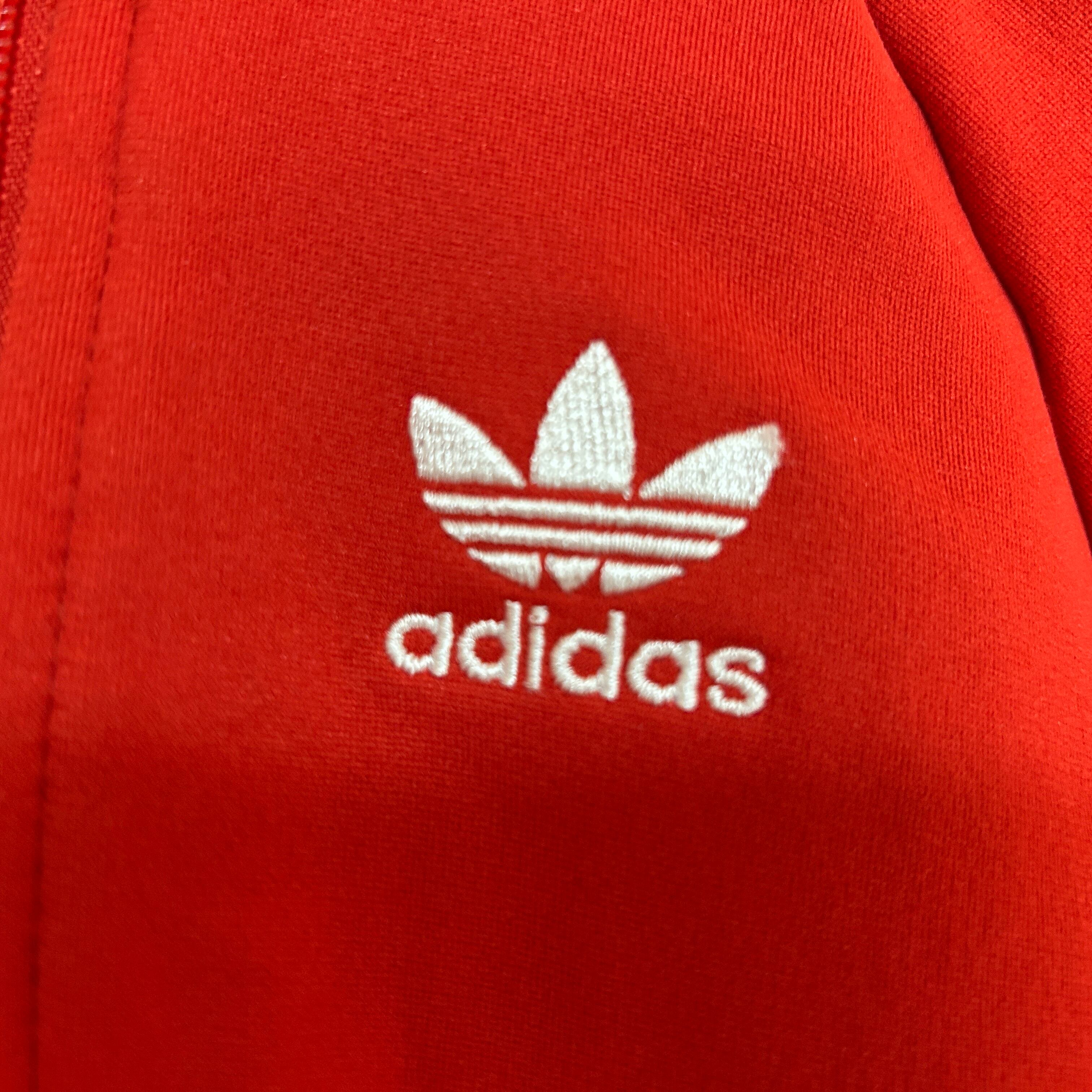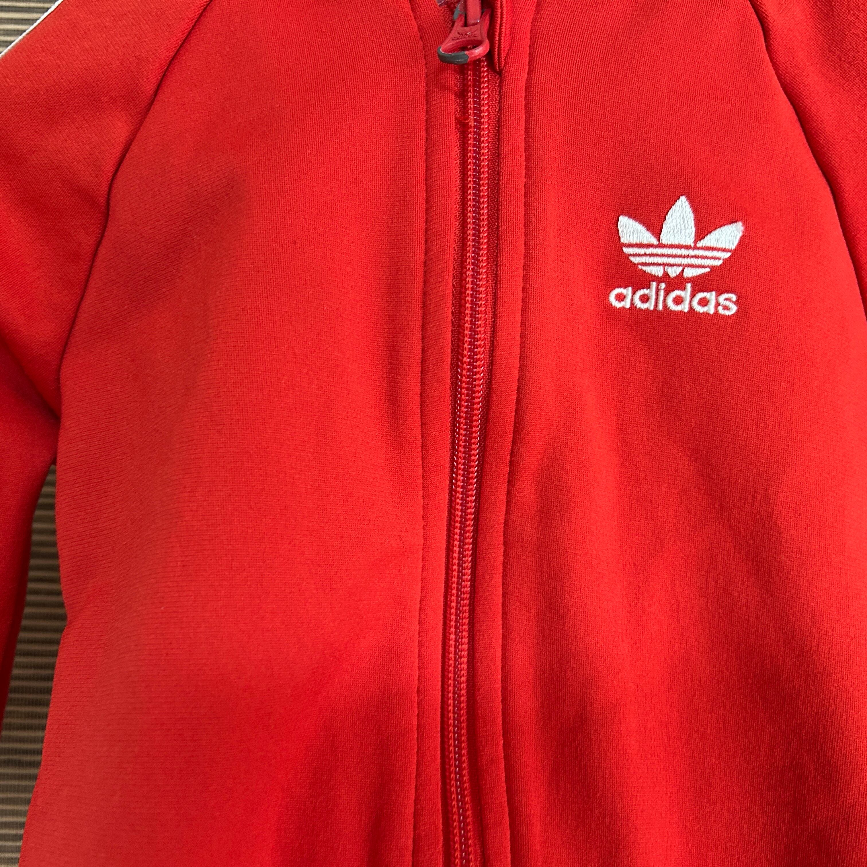 アディダス ジャージトラックジャケット SST子供100刺繍赤トレフォイルJ 古着 スーパースター キッズ ワンポイントロゴ