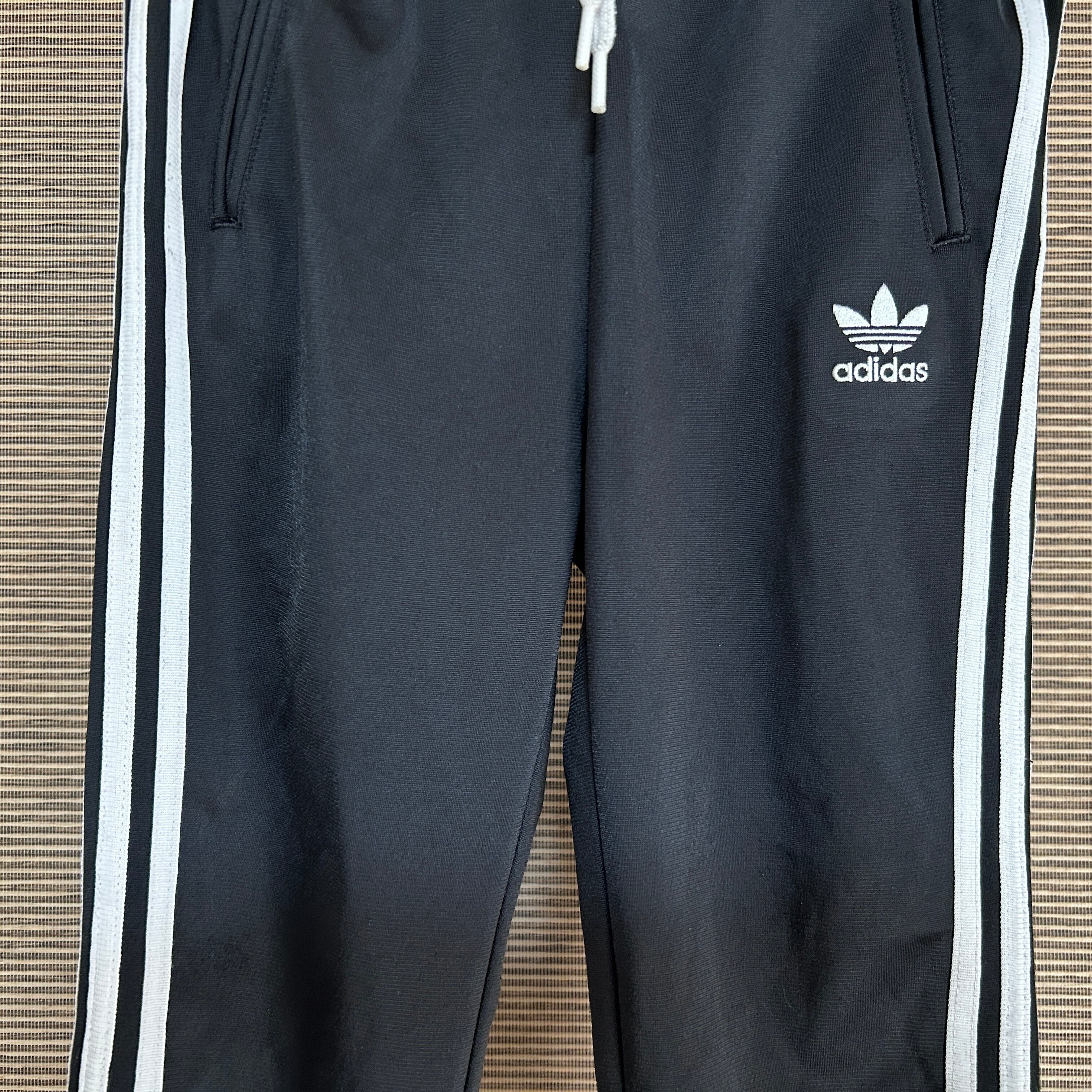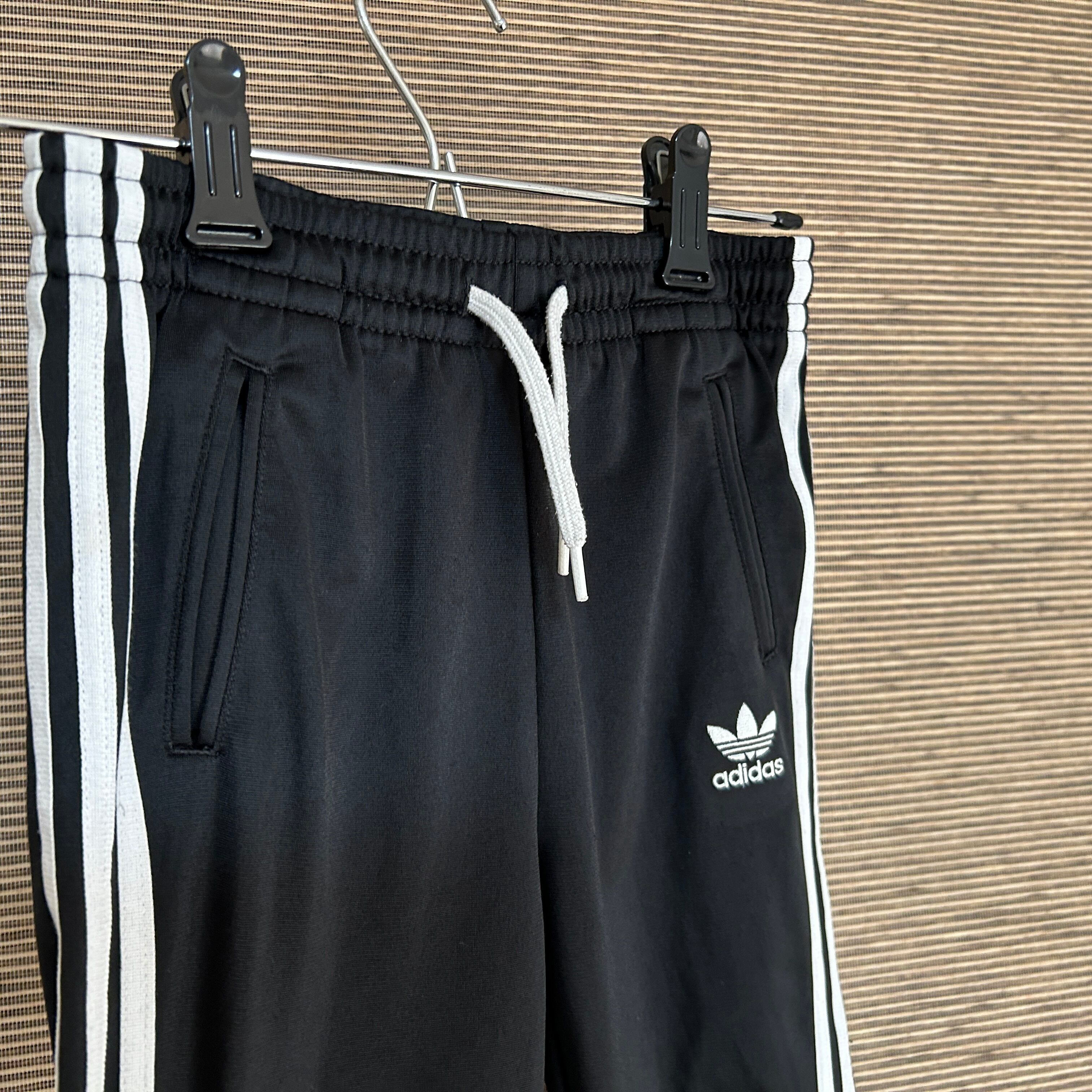 アディダス ジャージパンツトラックパンツ ファイヤーバード子供110黒白J 古着 ワンポイントロゴ キッズ 人気 ブラック