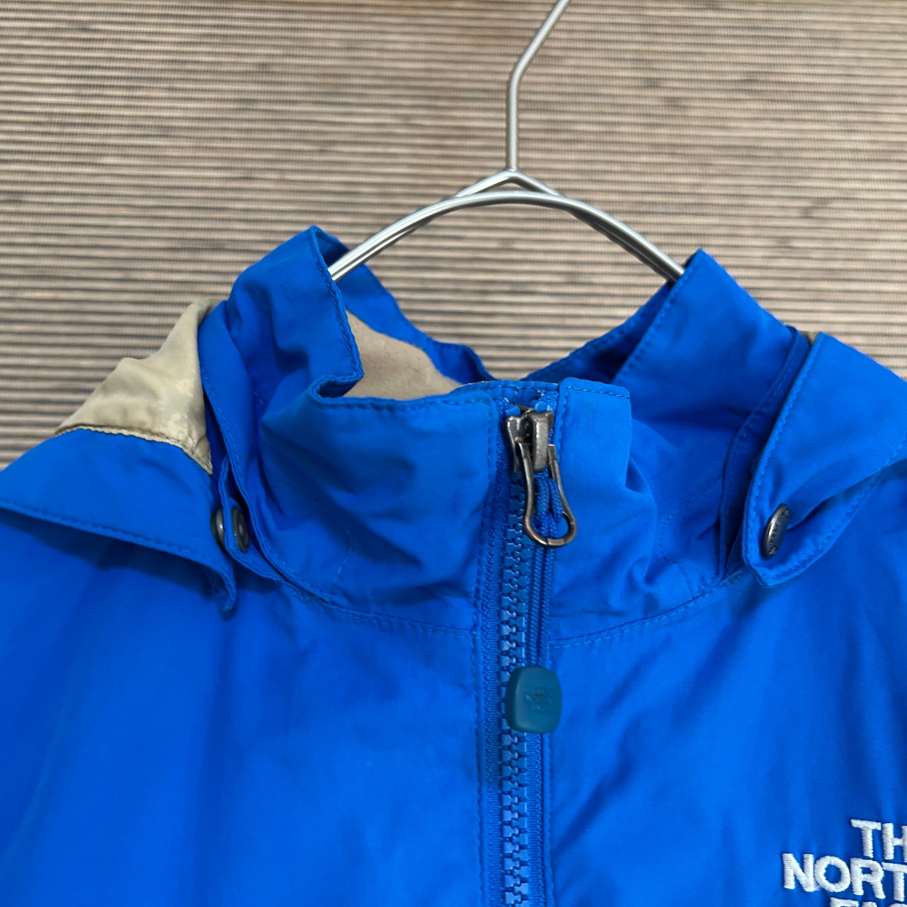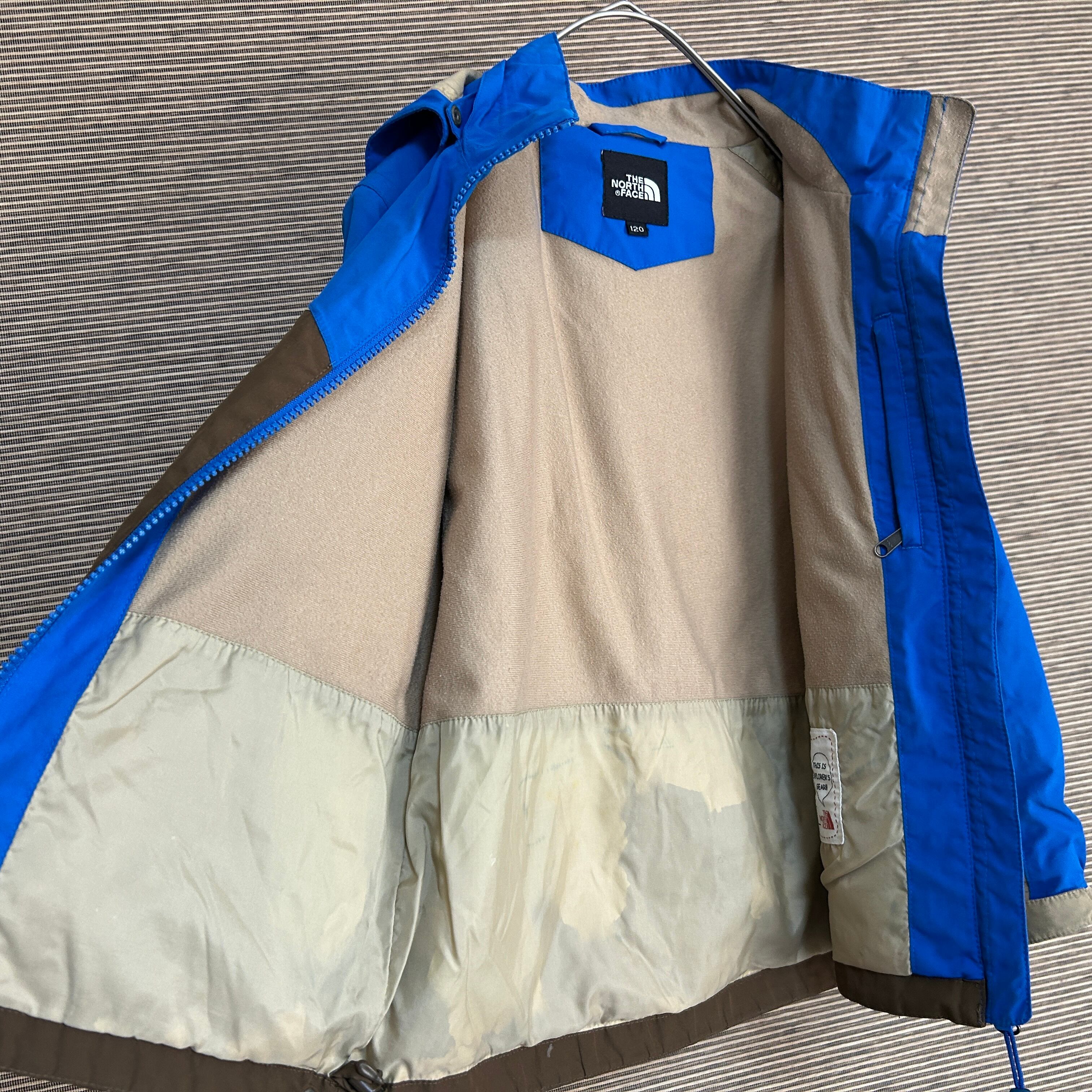 ノースフェイス マウンテンパーカー 青子供120キッズ 刺繍 ワンポイントH1 古着 ブルー系 ダークブラウン系 ハイベント 訳あり激安