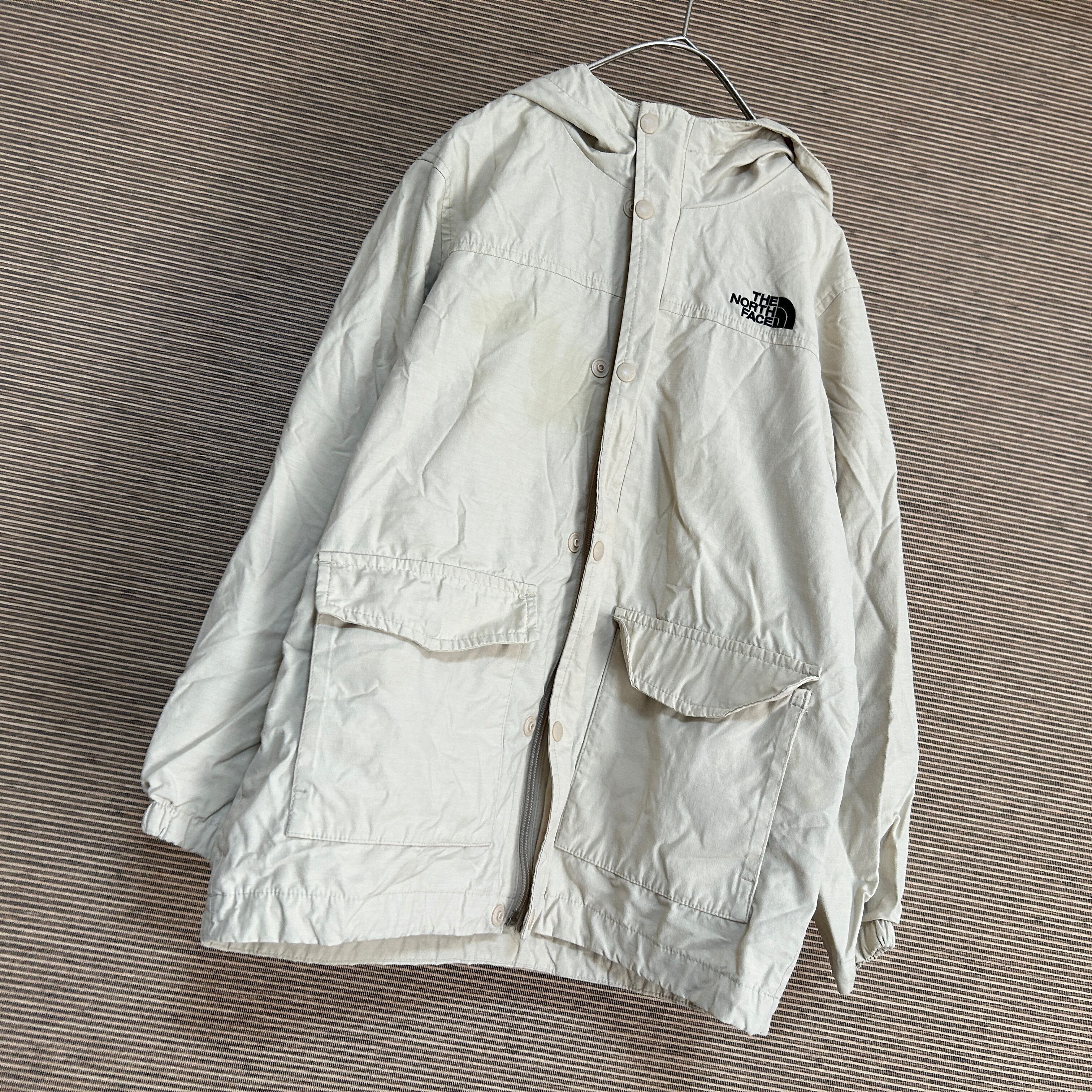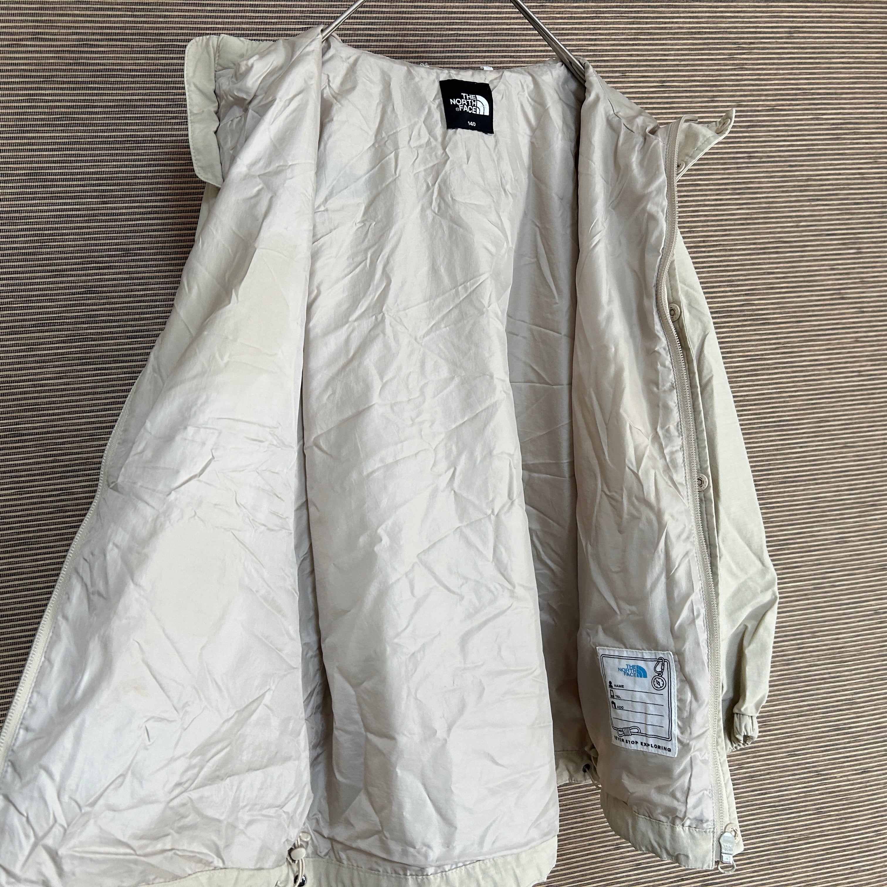 ノースフェイス マウンテンパーカー 子供140刺繍 ベージュワンポイントE0 古着 人気 キッズ 訳あり激安