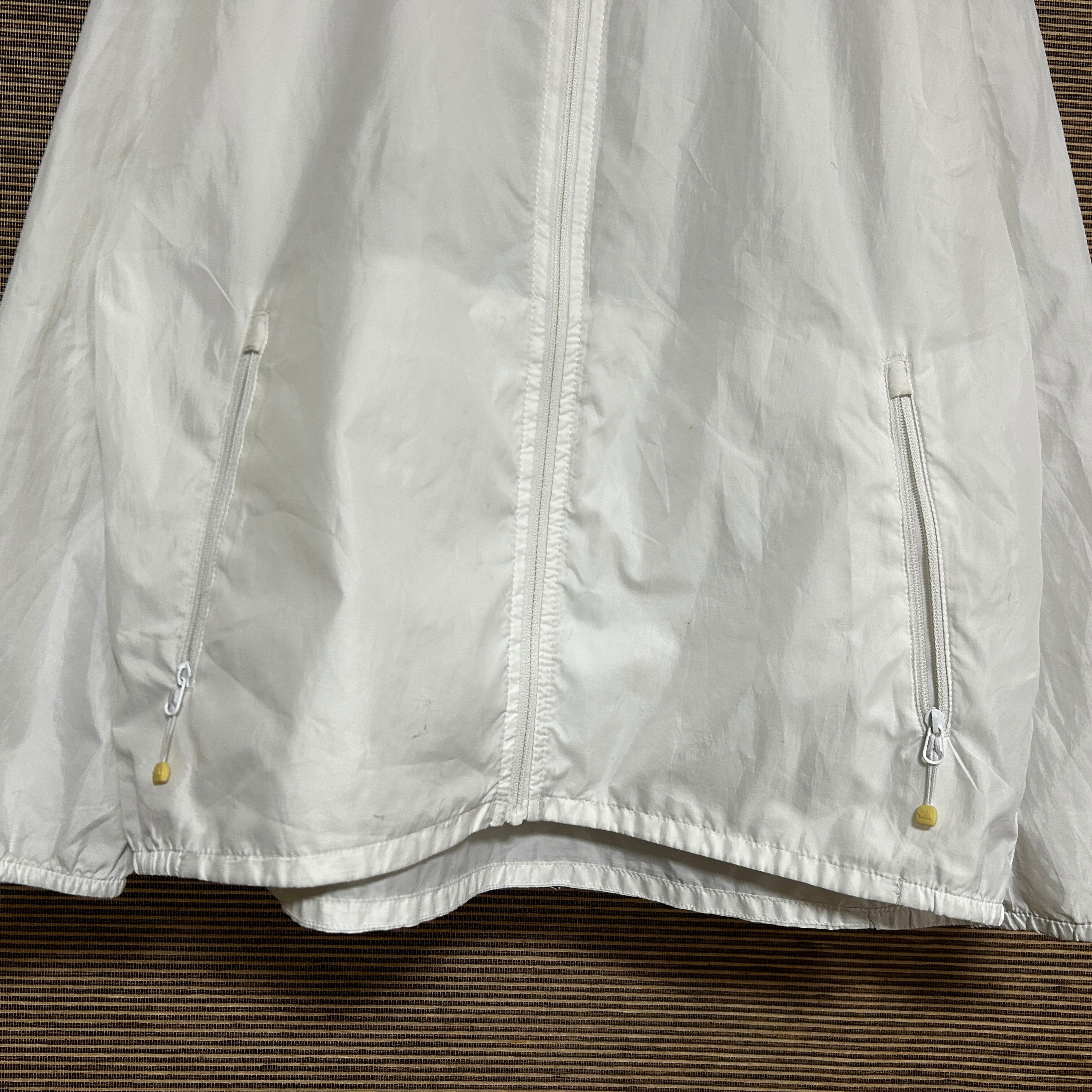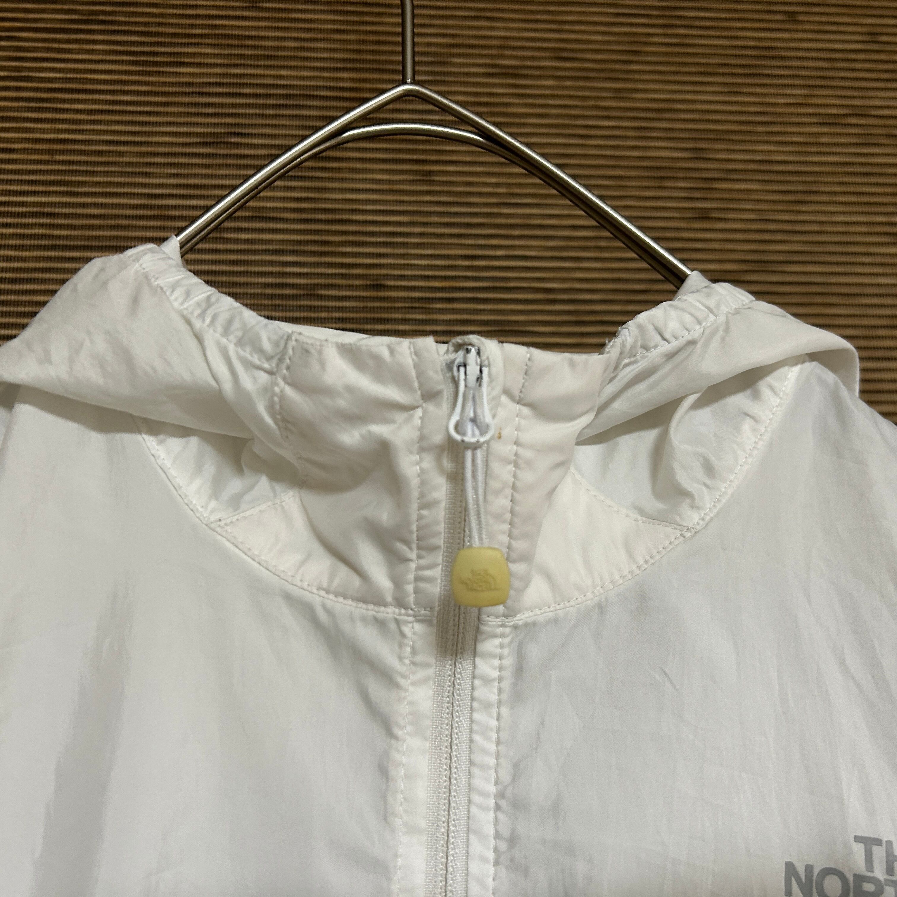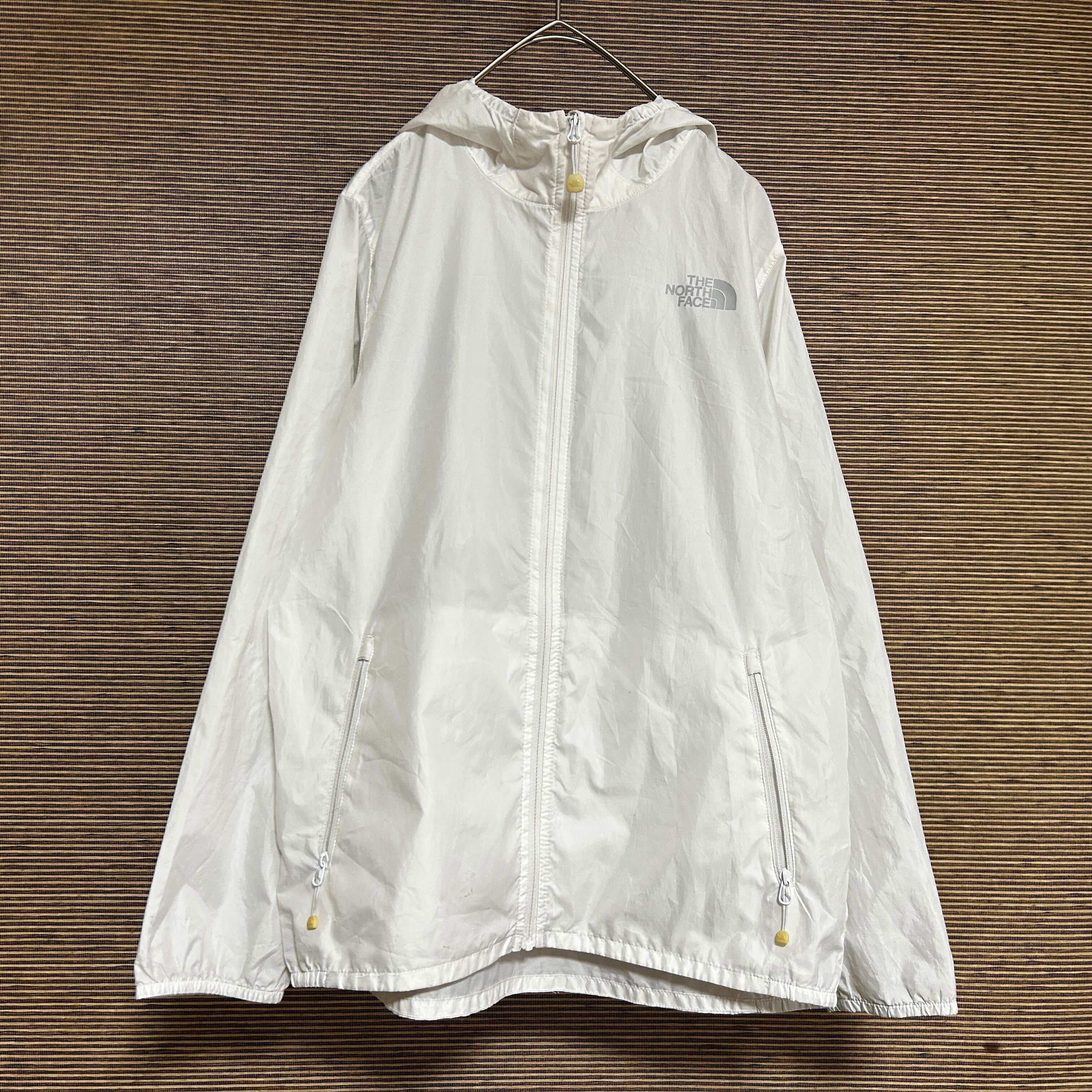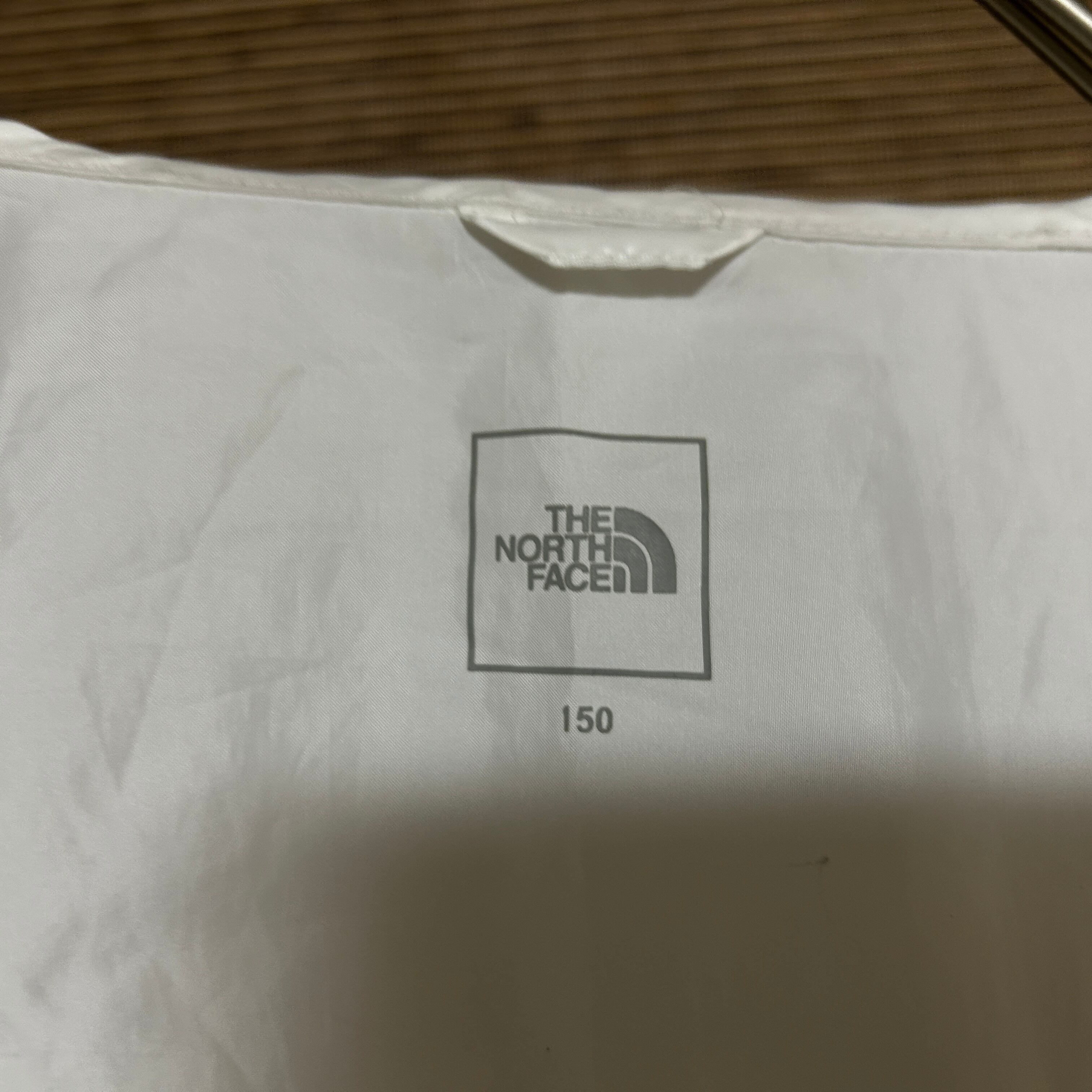 ノースフェイス ナイロンジャケット 子供150キッズ 白 デカロゴ J1 古着 薄手 軽量 ビッグロゴ