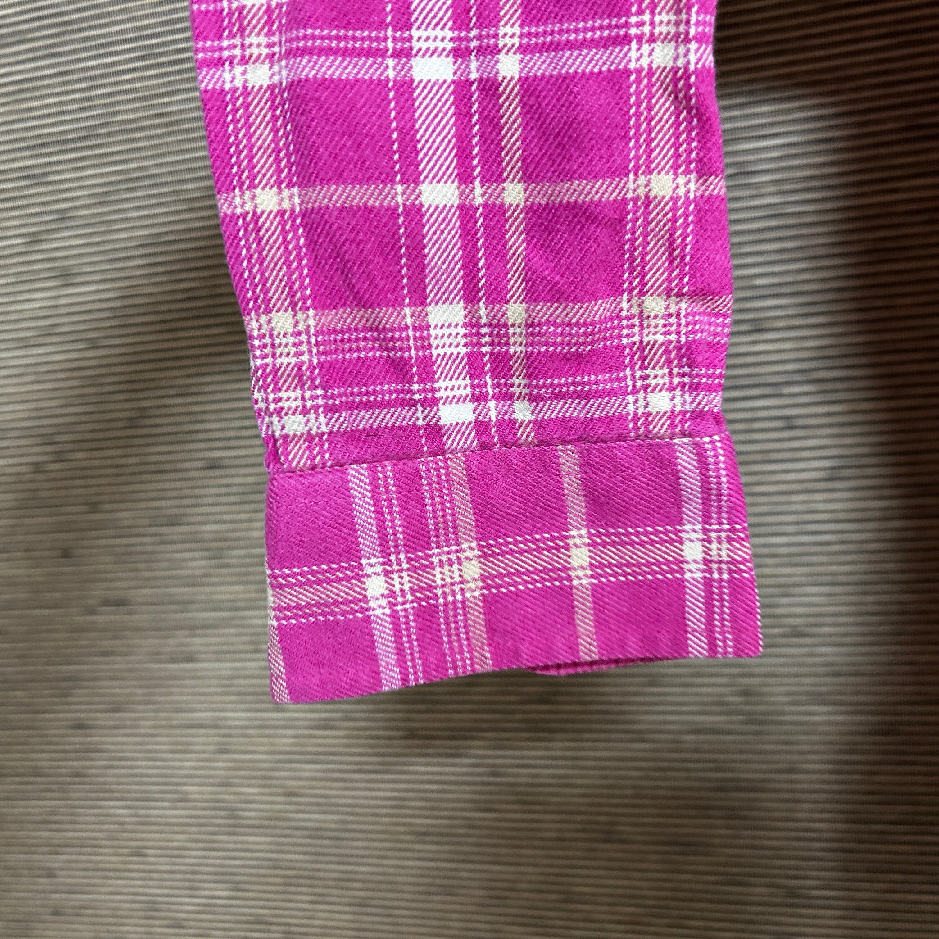 ノースフェイス 長袖シャツ チェック 刺繍 ピンク ネルシャツ J1 古着 レディース ワンポイントロゴ